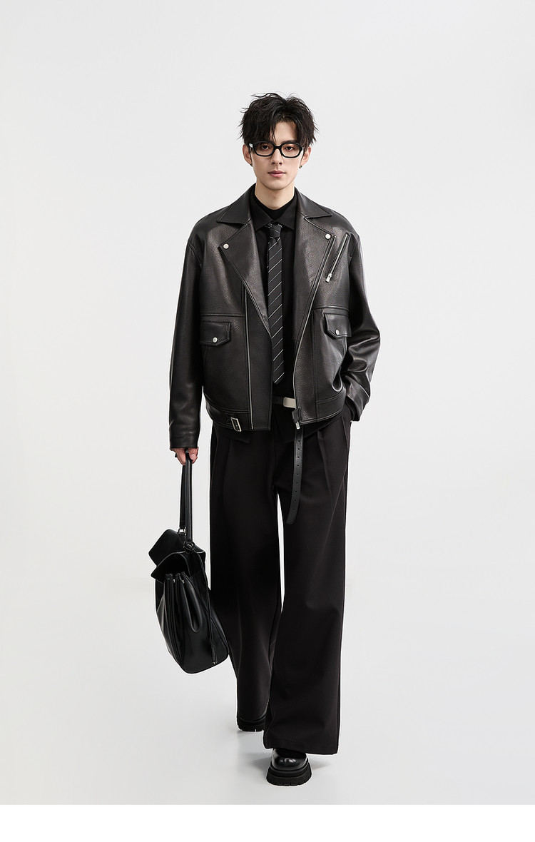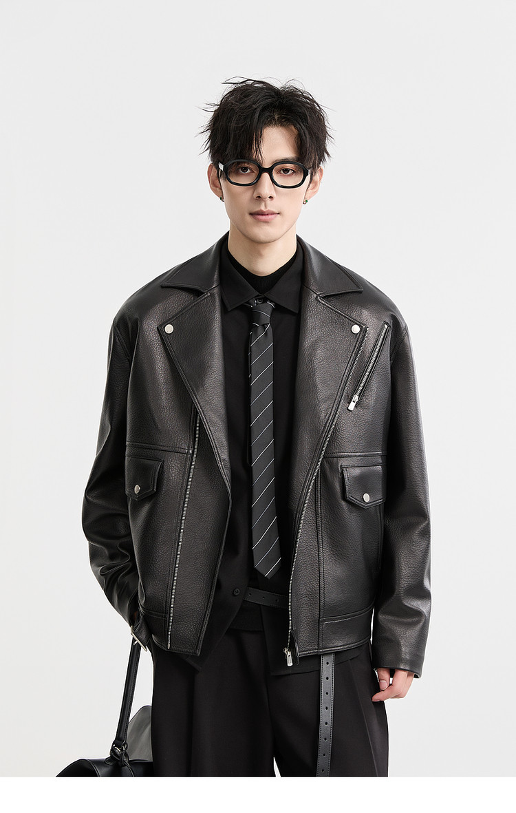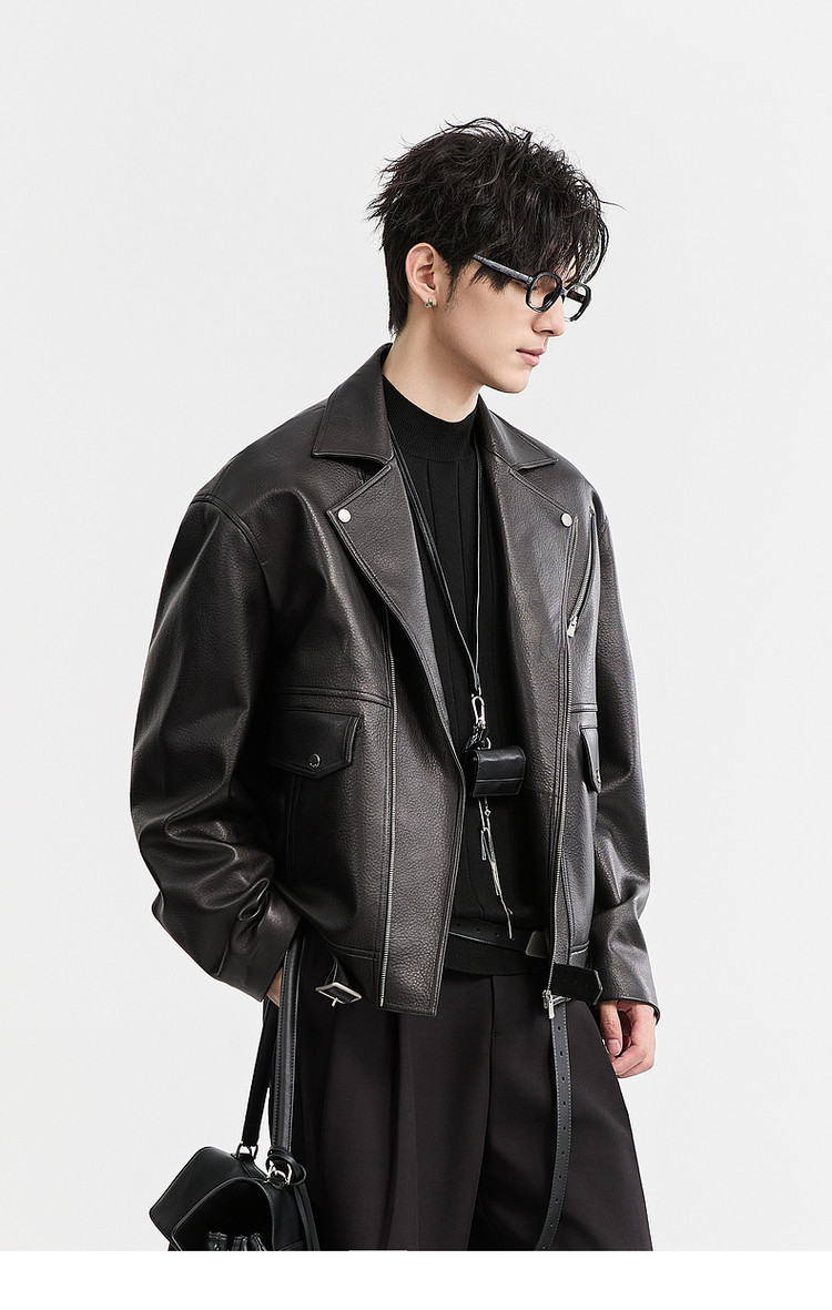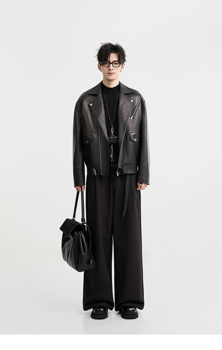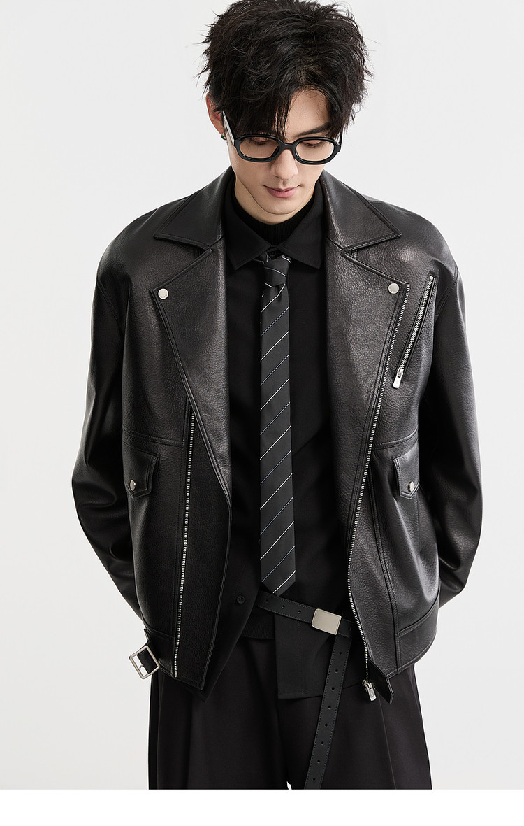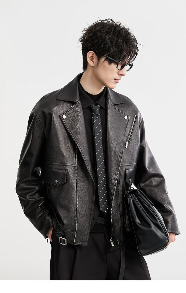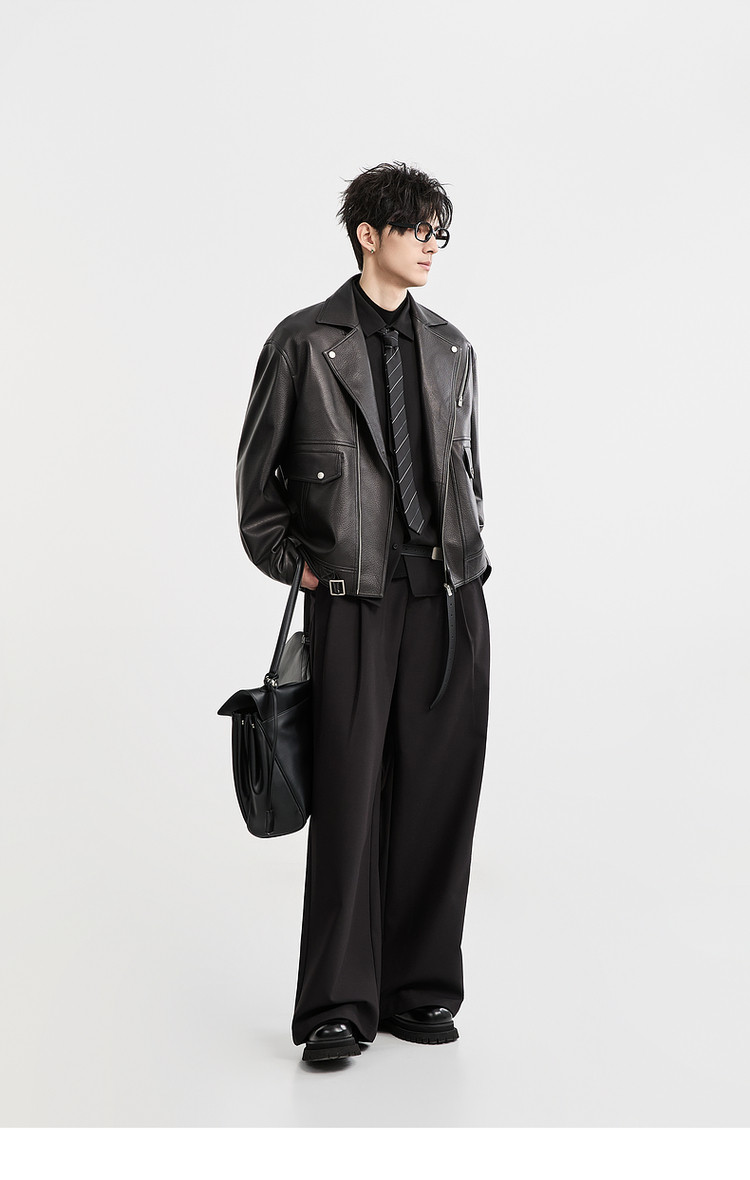 Earl Zhuoer 25 Autumn/Winter Genuine Leather Jacket Men's Cool Short Motorcycle Jacket with Turn-Down Collar Trendy Sheepskin Top