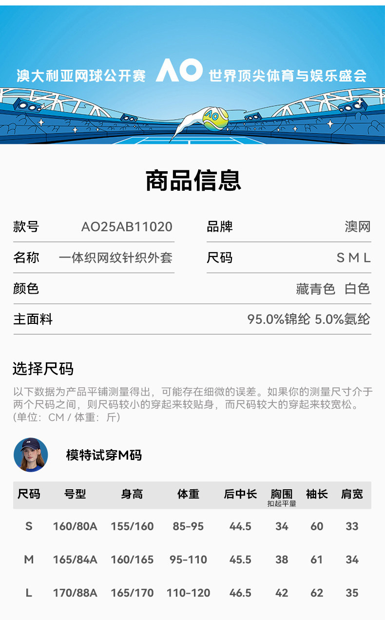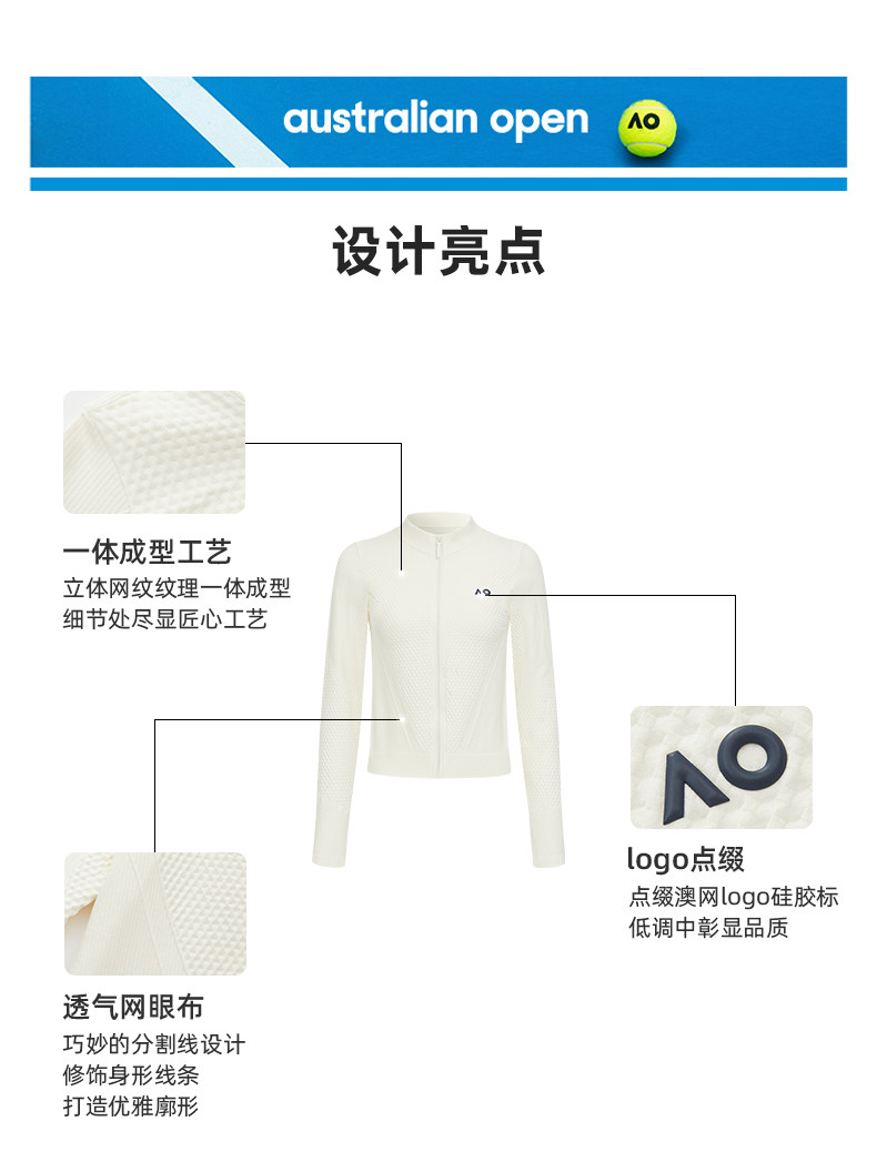 Ao Australian Open Sports Jacket Ribbed Coat Tennis Wear Women's Autumn and Winter Running Fitness Hooded Slim-Fit Tennis Training Wear