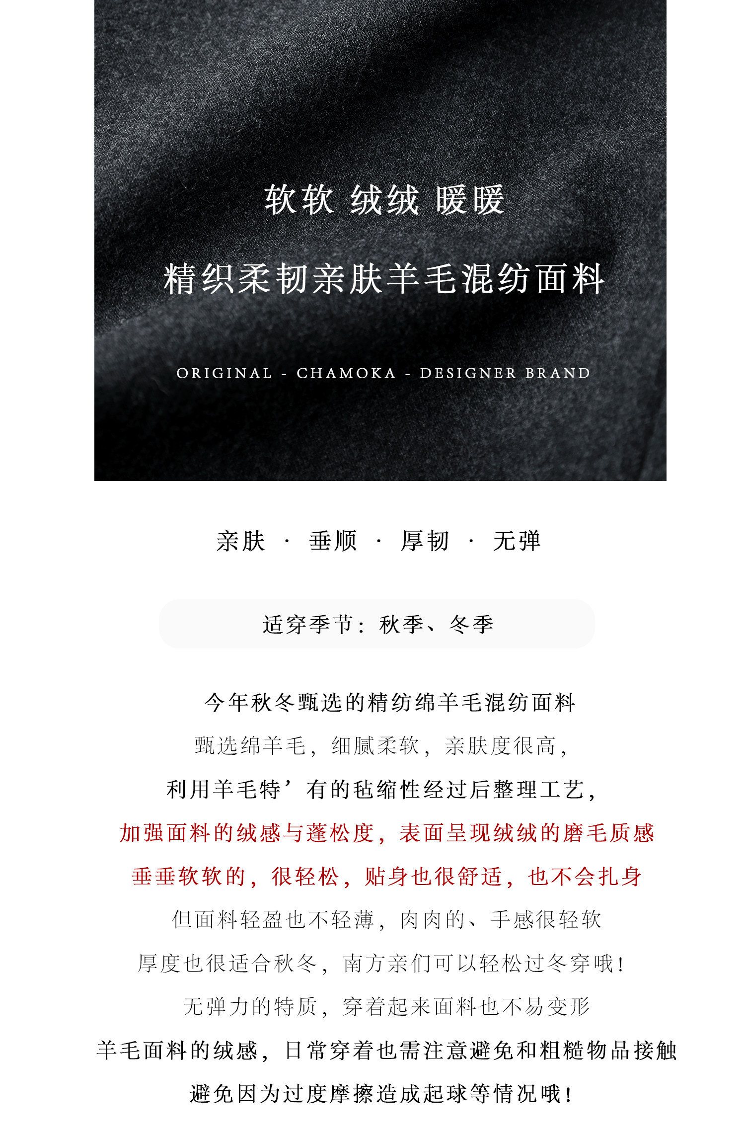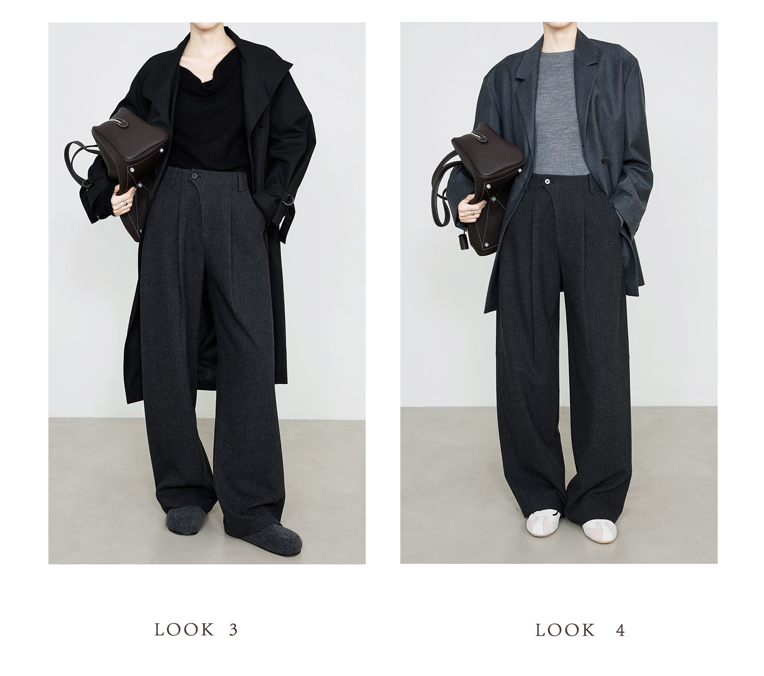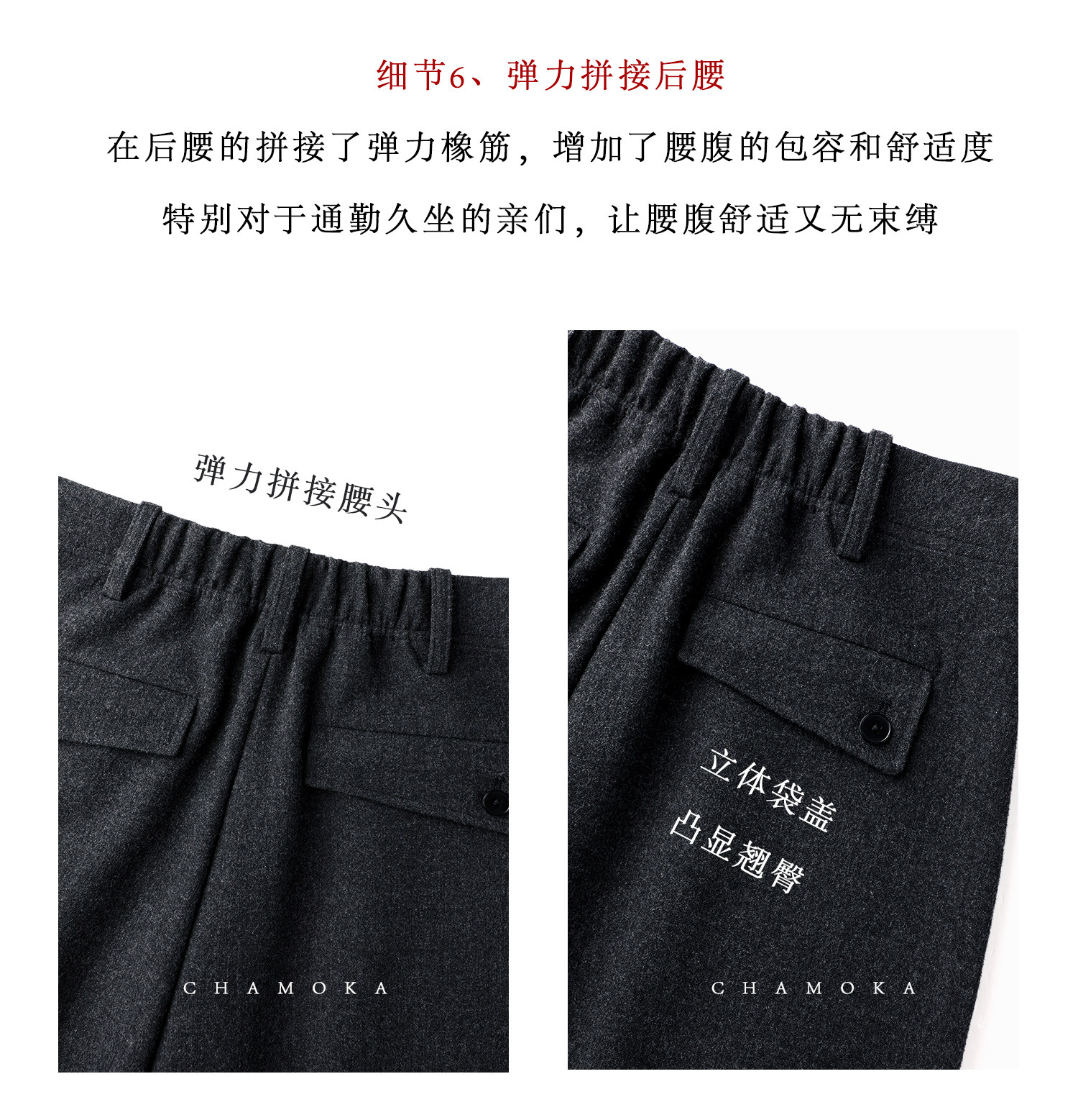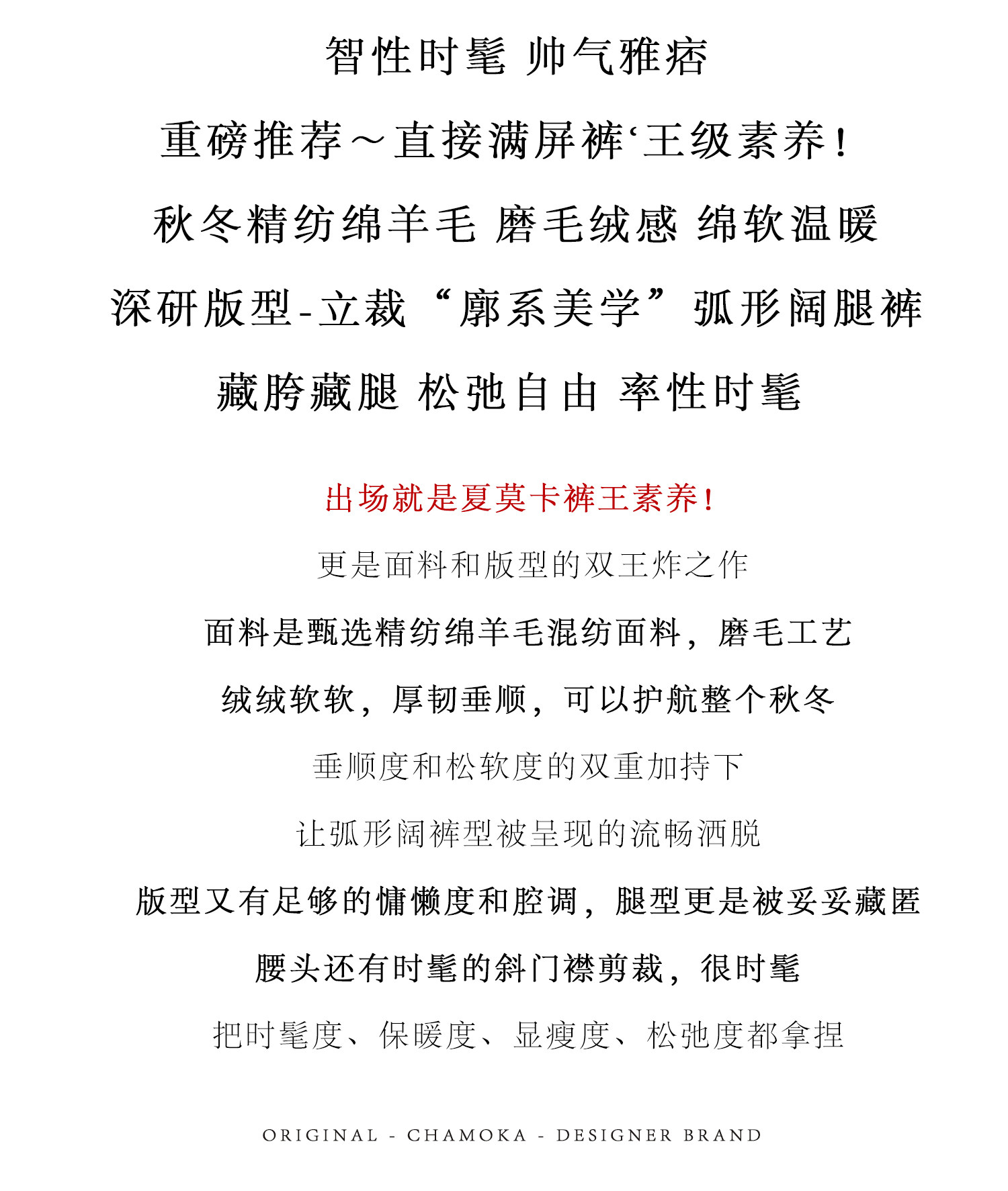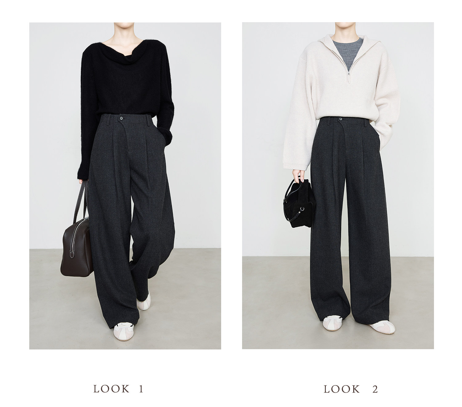 Xia Moka Diagonal Placket Gray Suit Pants for Women, Autumn and Winter, Elastic Waist, Slimming, Curved Pants, Merino Wool Wide-Leg Pants 6855