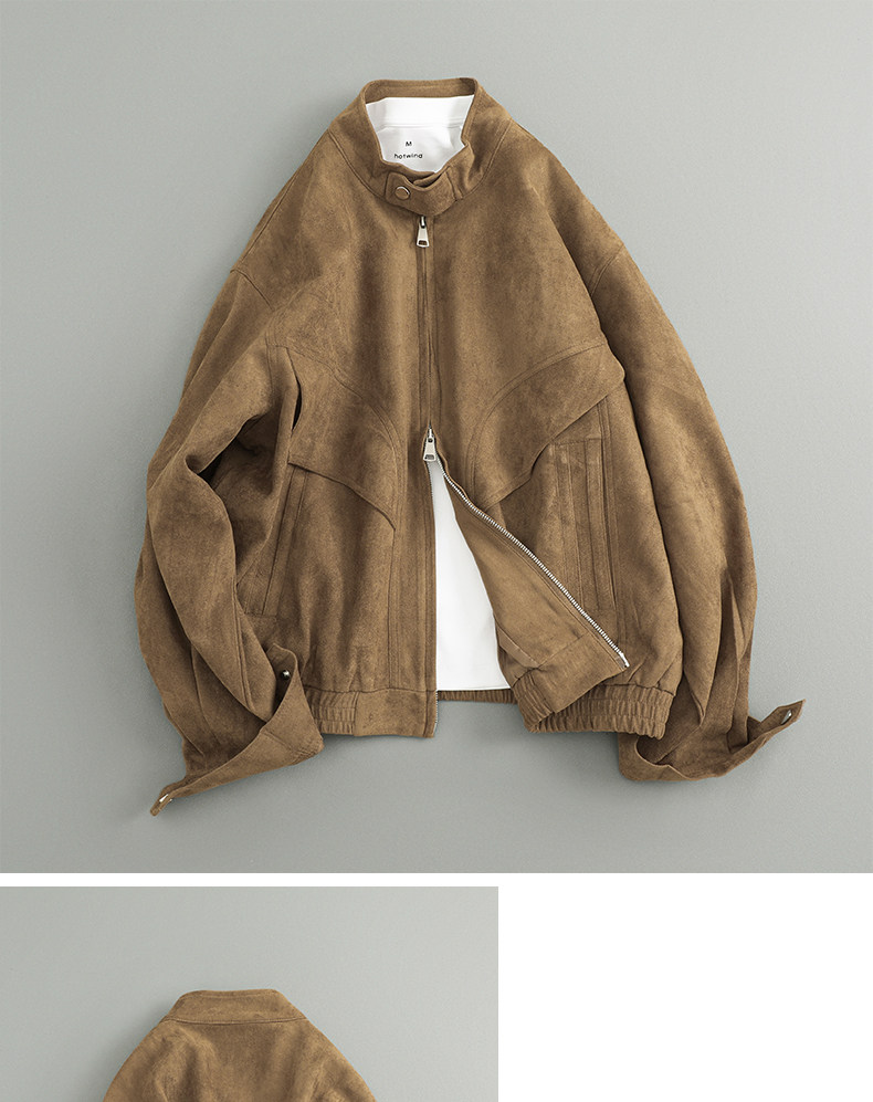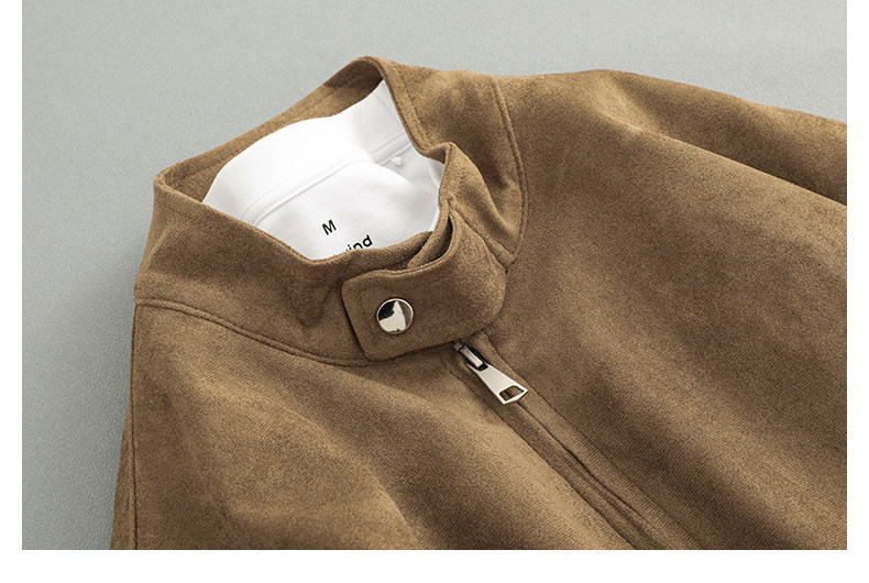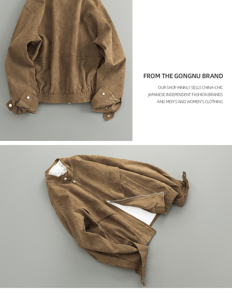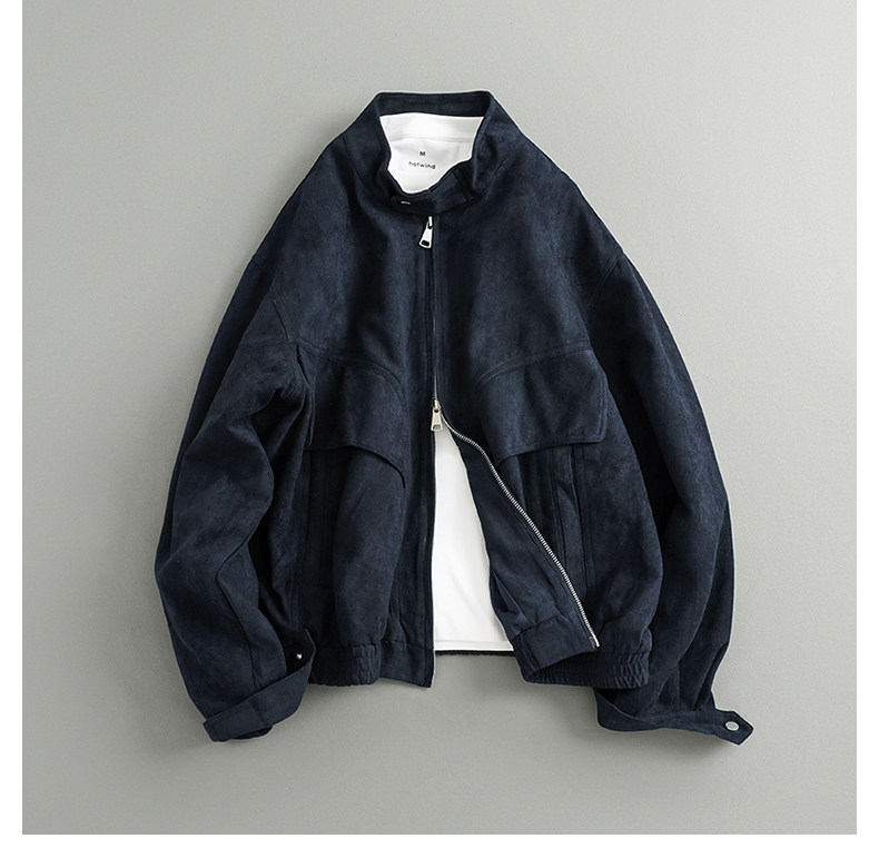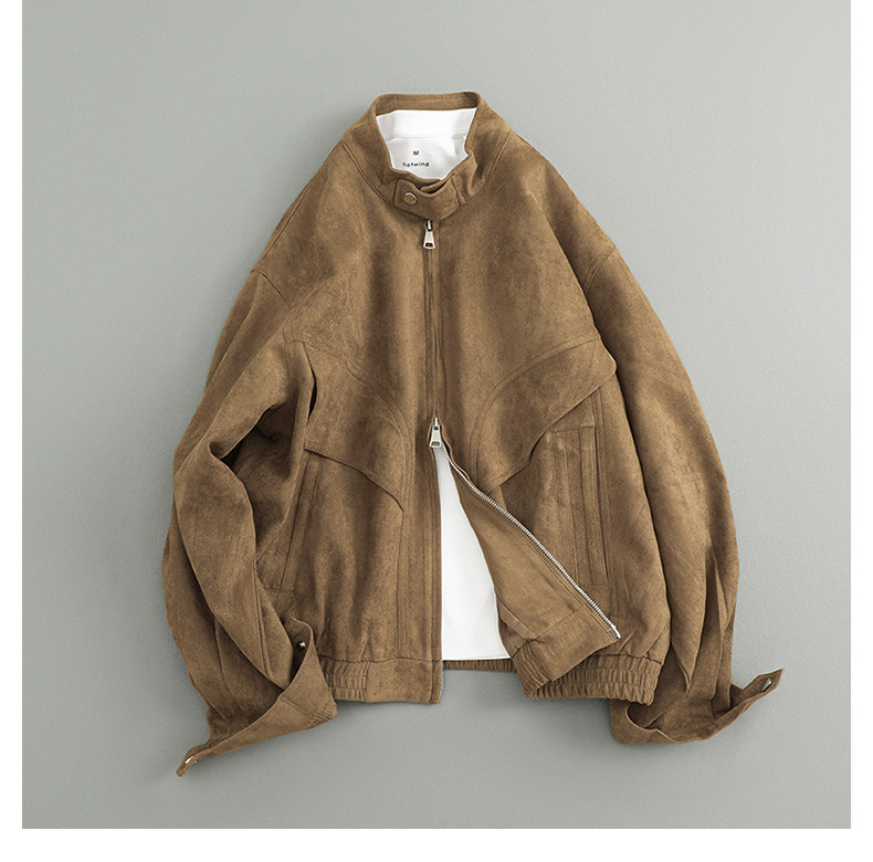 Spring Japanese Casual Trendy Retro Simple Loose Two-Way Zipper Stand Collar Suede Jacket for Men