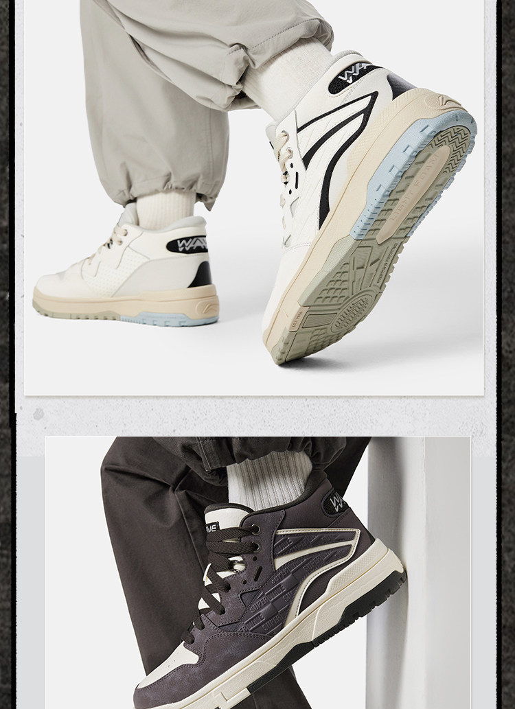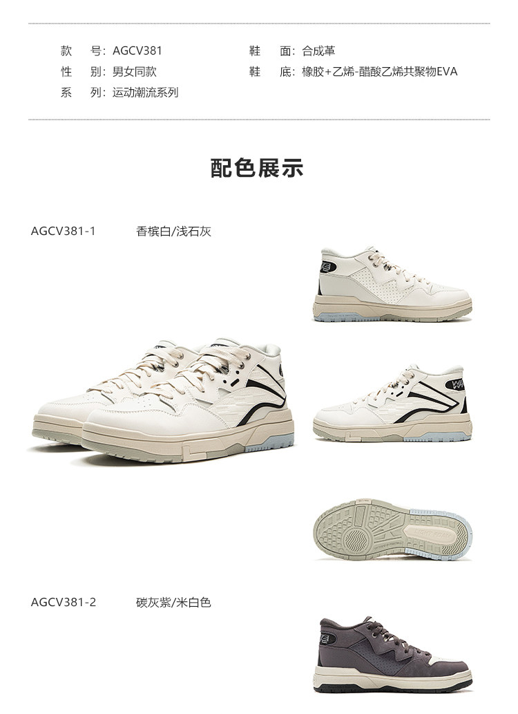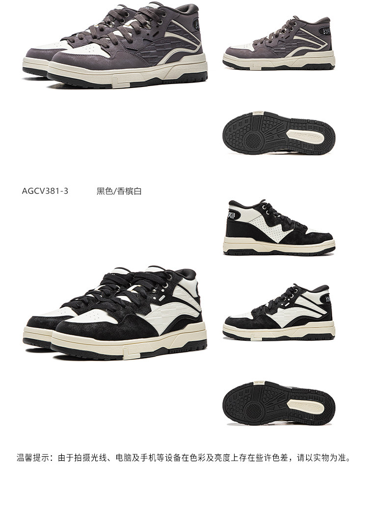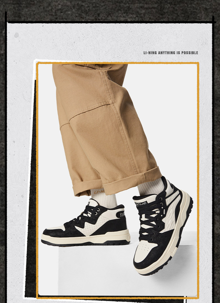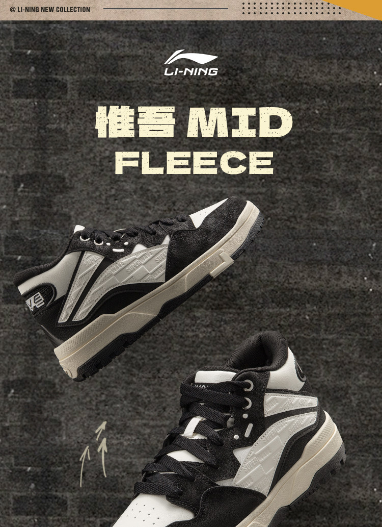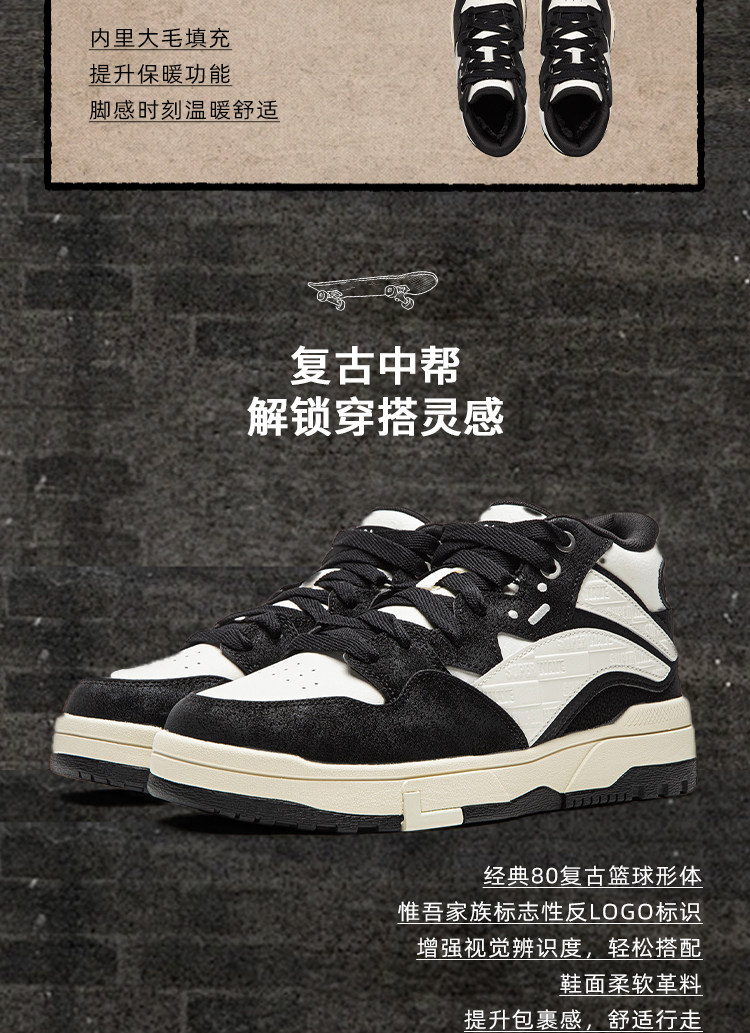 Li-Ning Wei Wu Mid Fleece Casual Shoes Men's Winter Fleece-Lined High-Top Classic Women's Skateboarding Shoes Sneakers