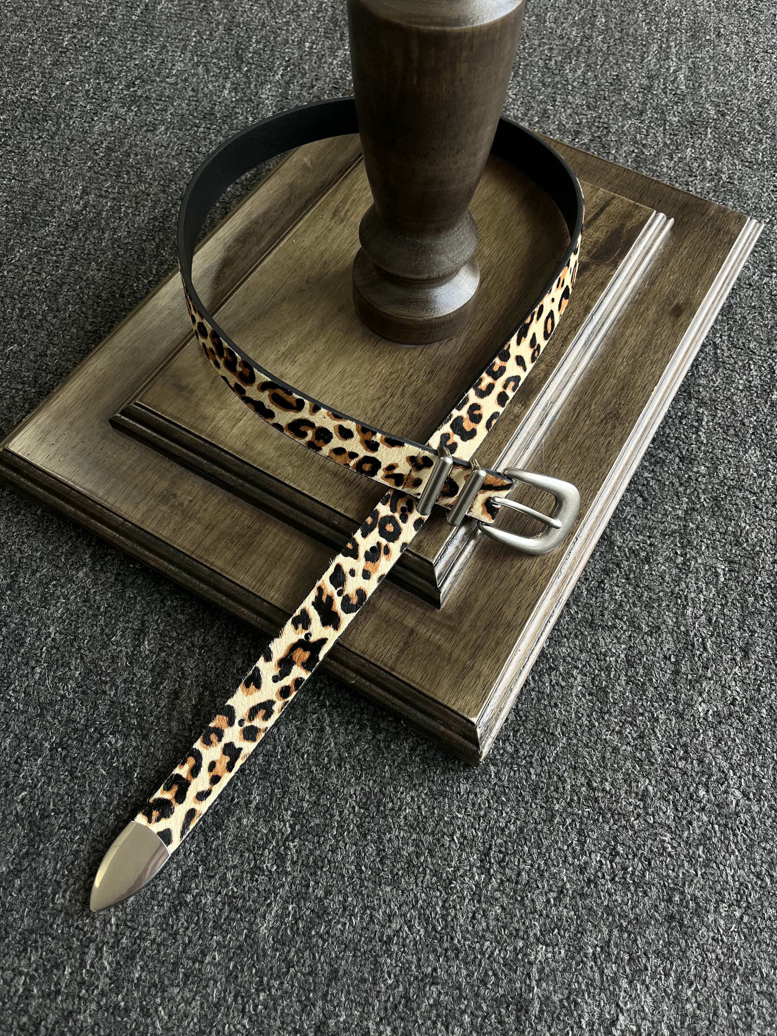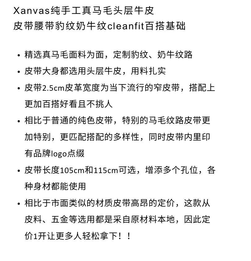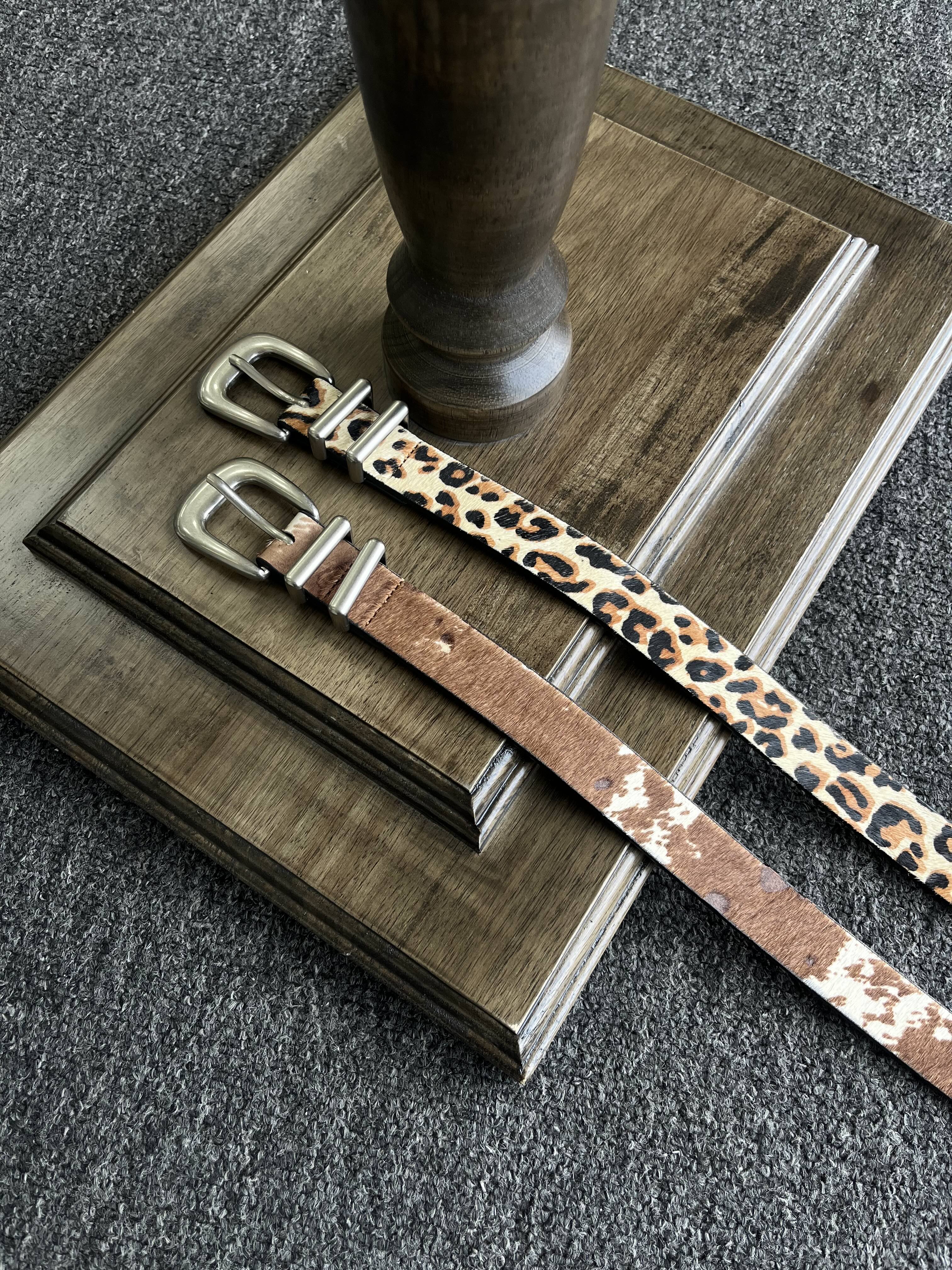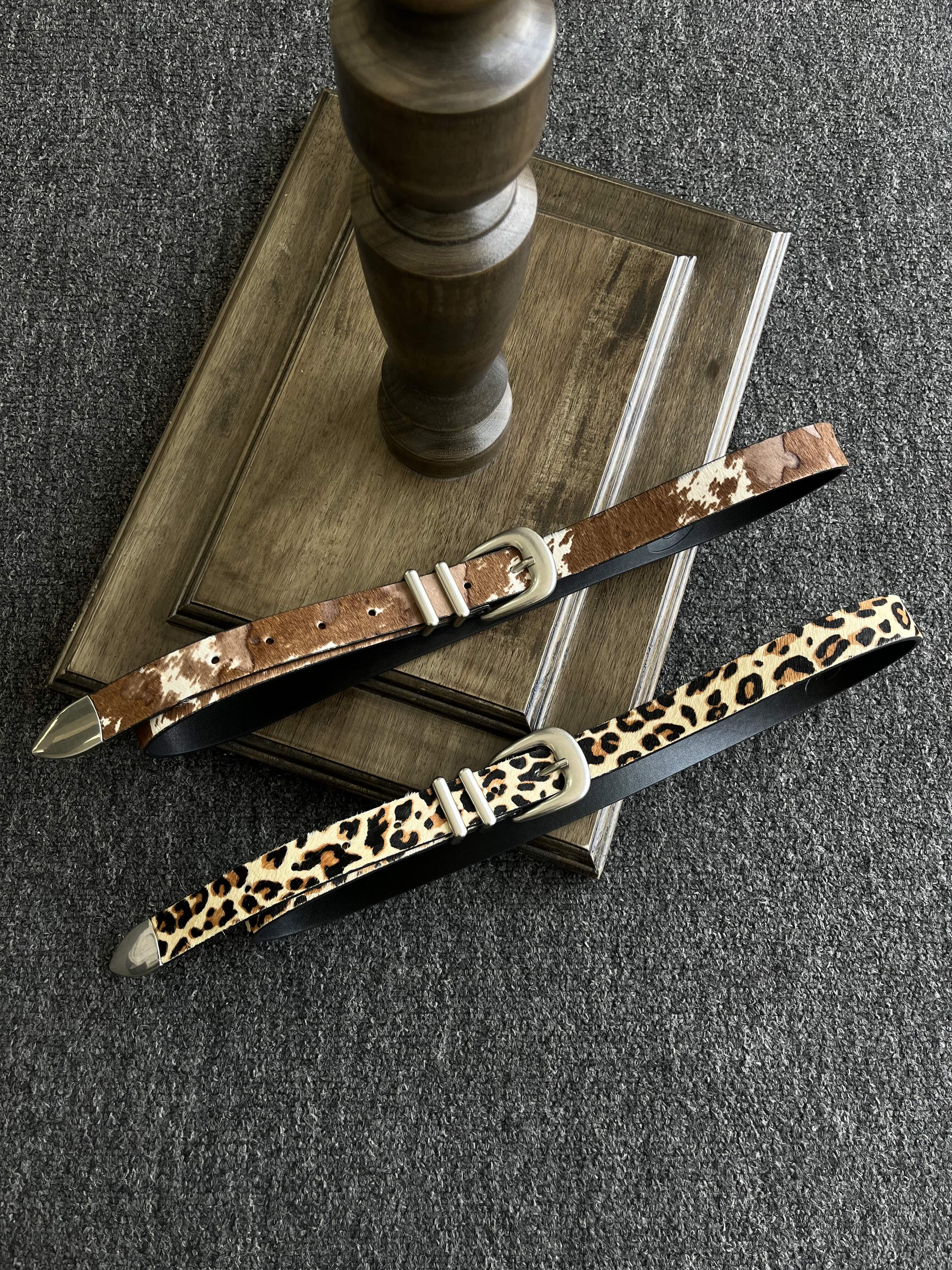 Xanvas Handmade Genuine Horsehair Top Layer Cowhide Belt Leopard Print Cow Print Cleanfit Versatile Basic