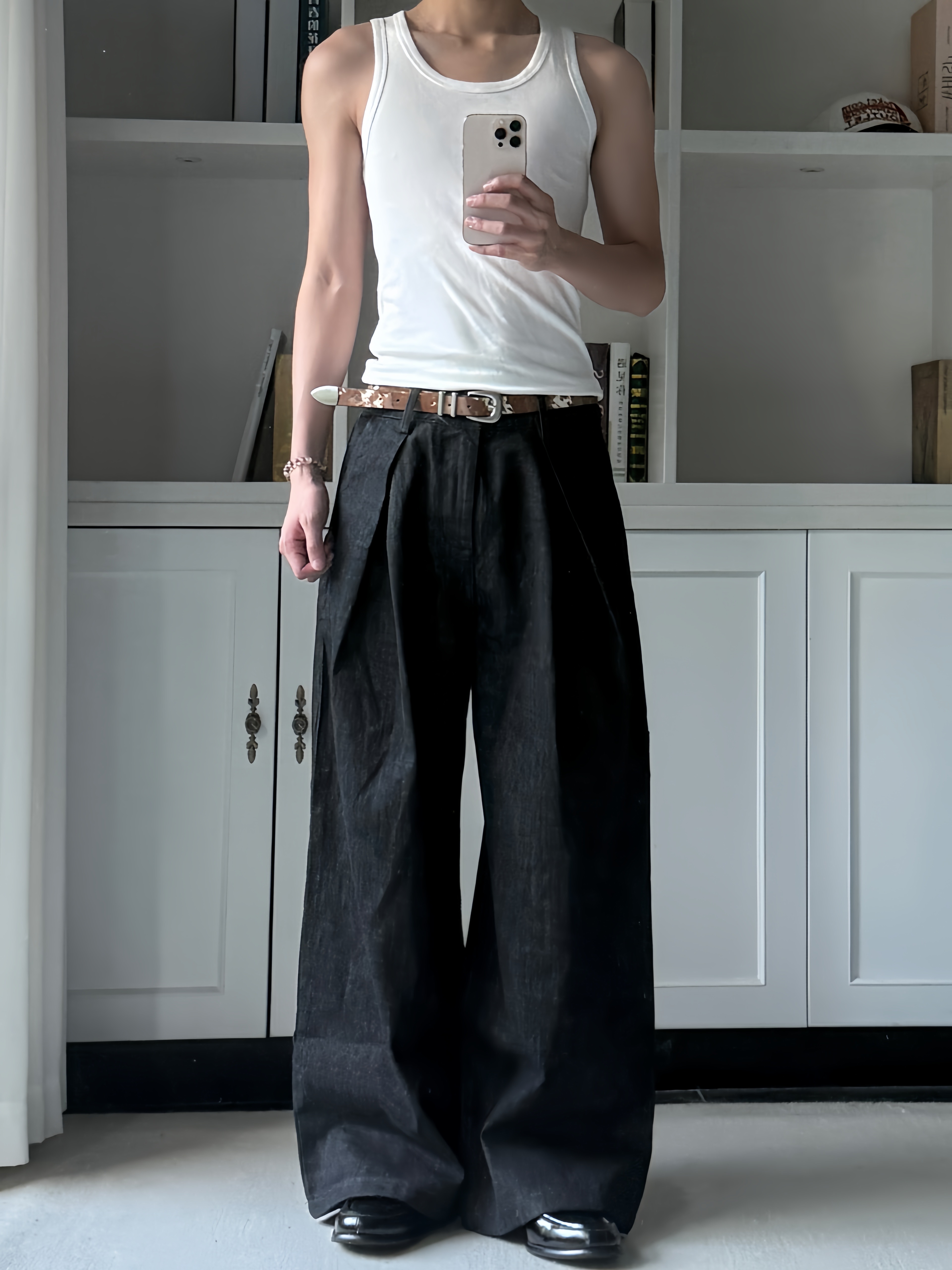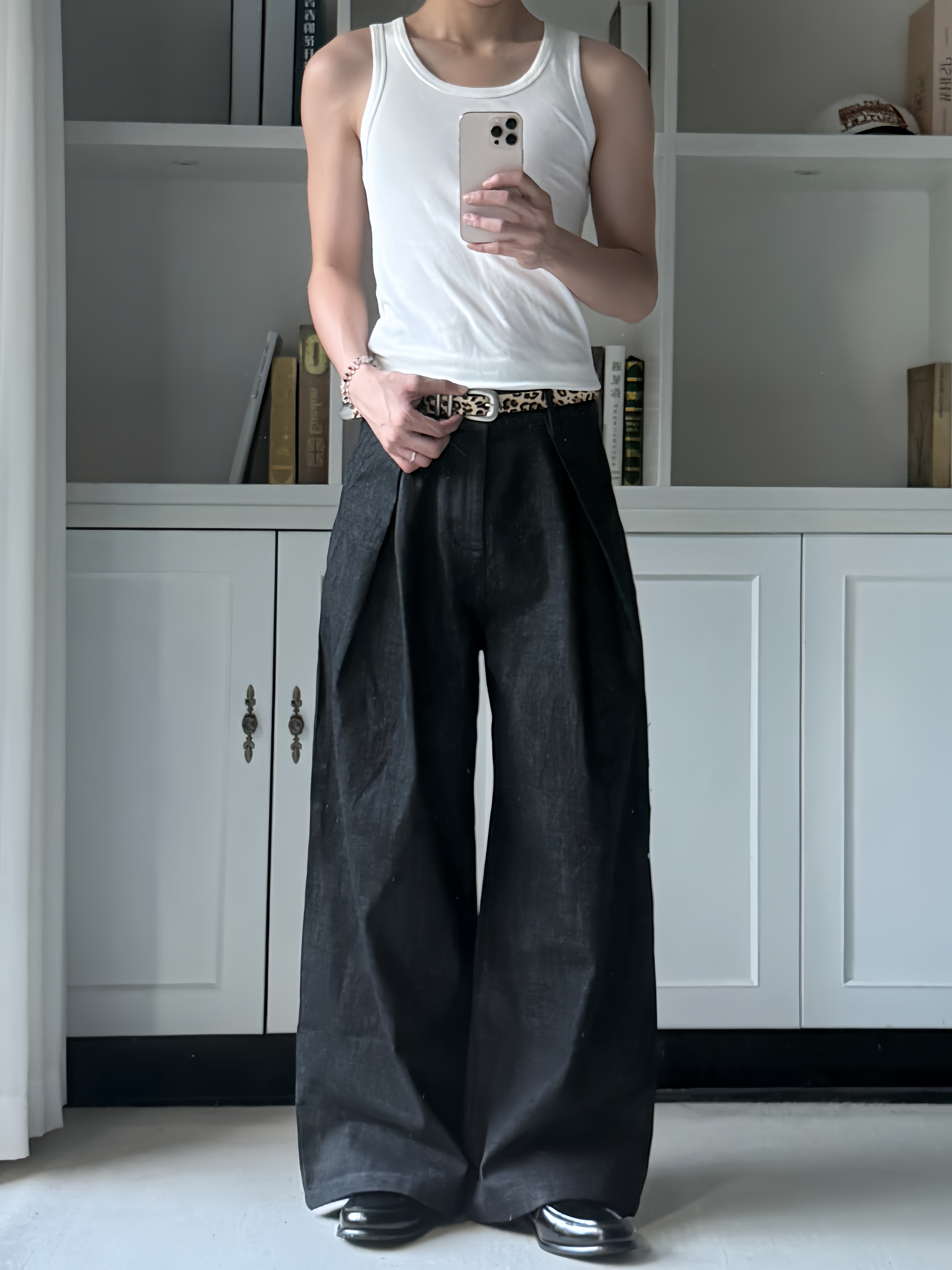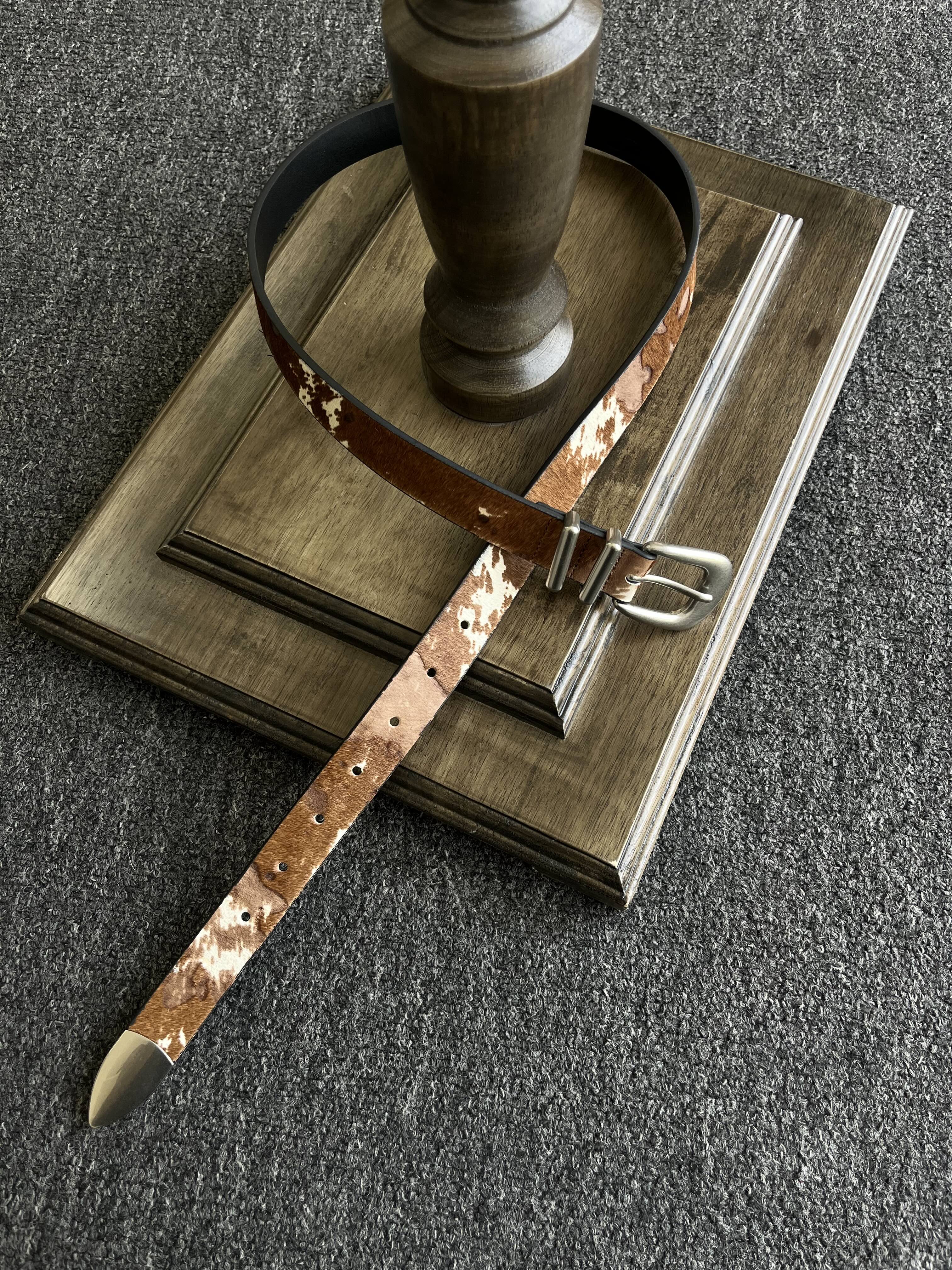 Xanvas Handmade Genuine Horsehair Top Layer Cowhide Belt Leopard Print Cow Print Cleanfit Versatile Basic