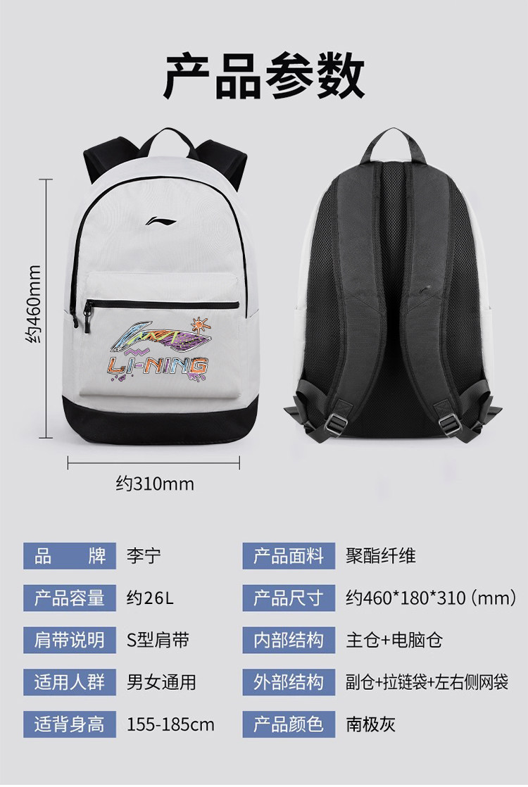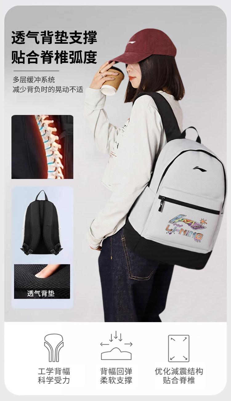 Li Ning Backpack 2026 New Model Men's Middle and High School Schoolbag Large Capacity Laptop Backpack Women's Outdoor Travel Bag