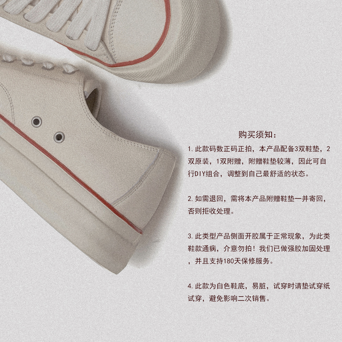No Logo / Low-Top First-Layer Cowhide Genuine Leather Lining Lightweight Foam Thick-Soled Height-Increasing Couple Sneakers