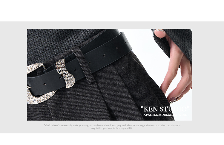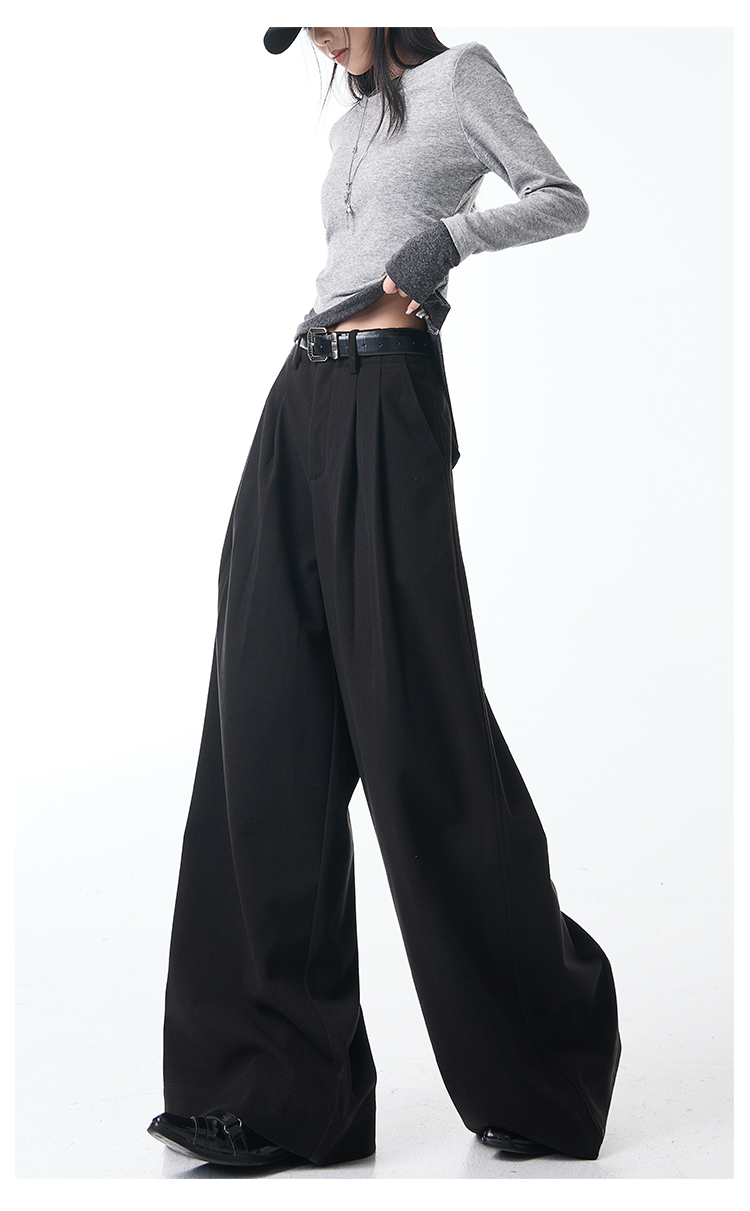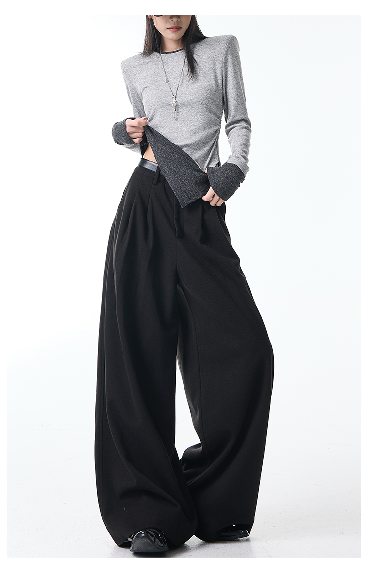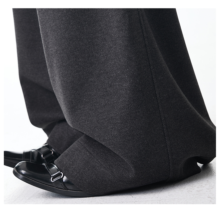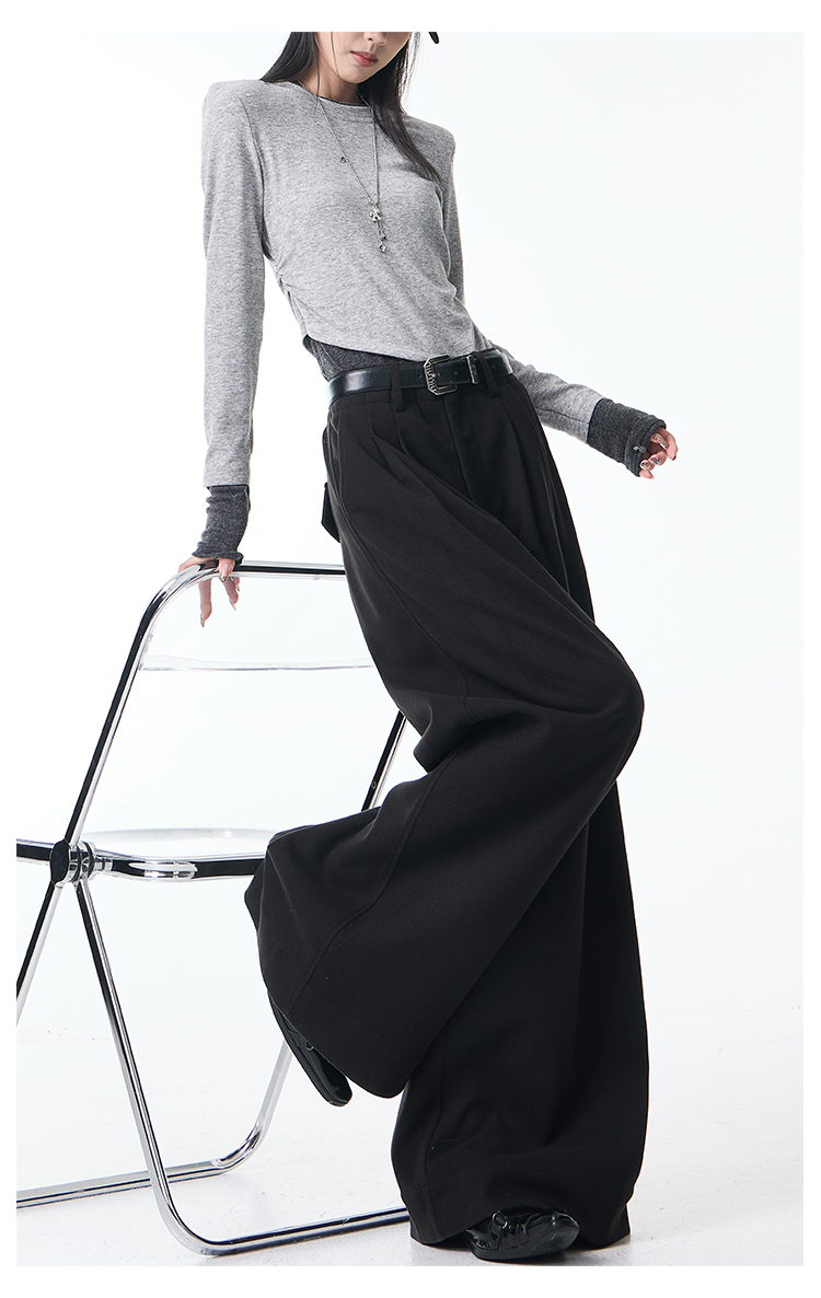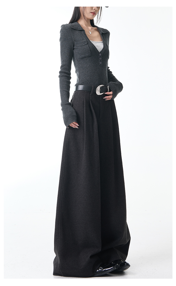 Ken Studio New Autumn and Winter Gray Thickened Wool Pleated Suit Pants for Women, High-Waisted, Loose and Drapey Wide-Leg Pants