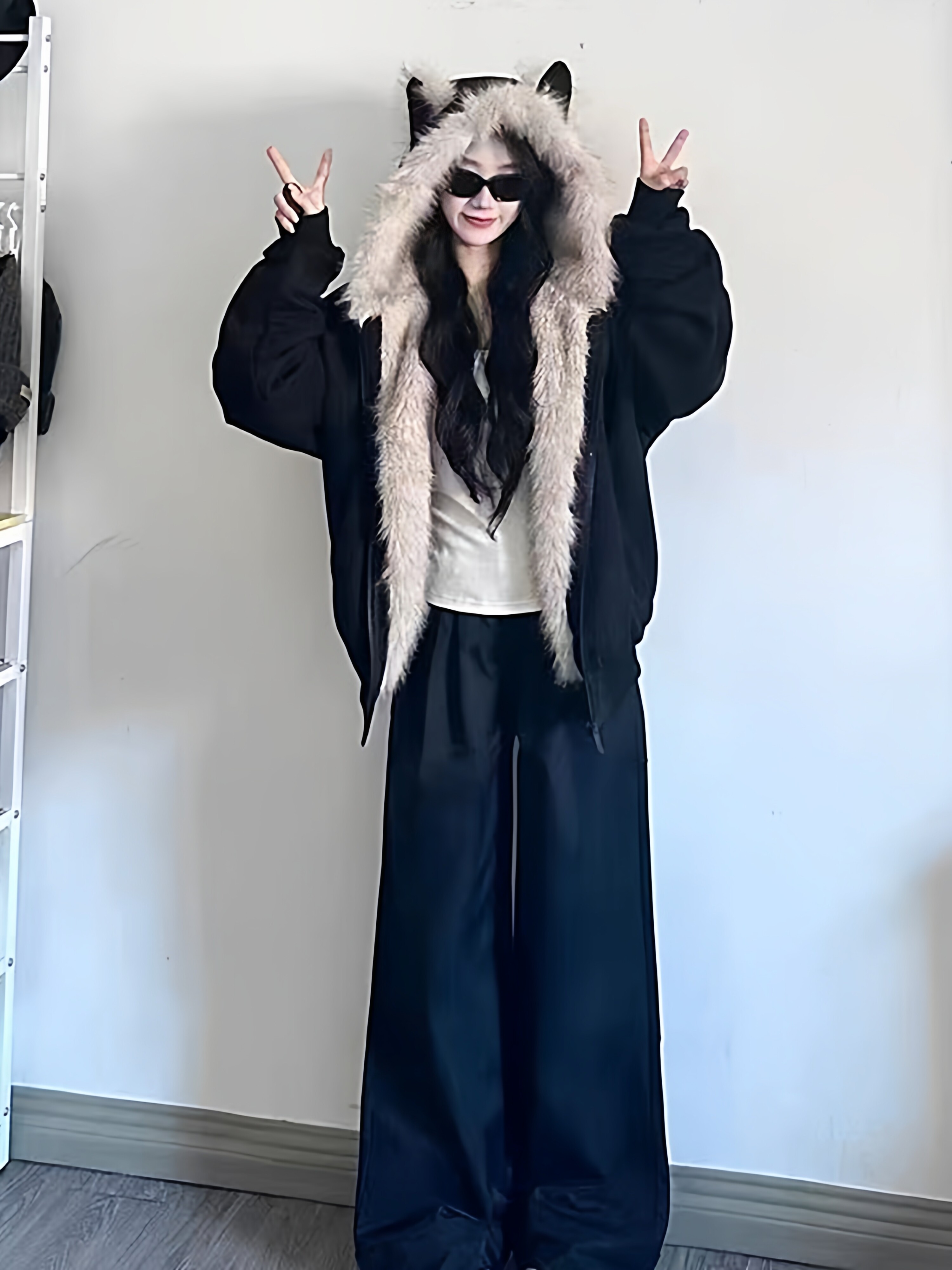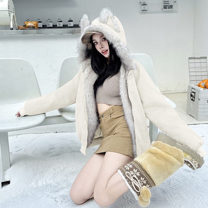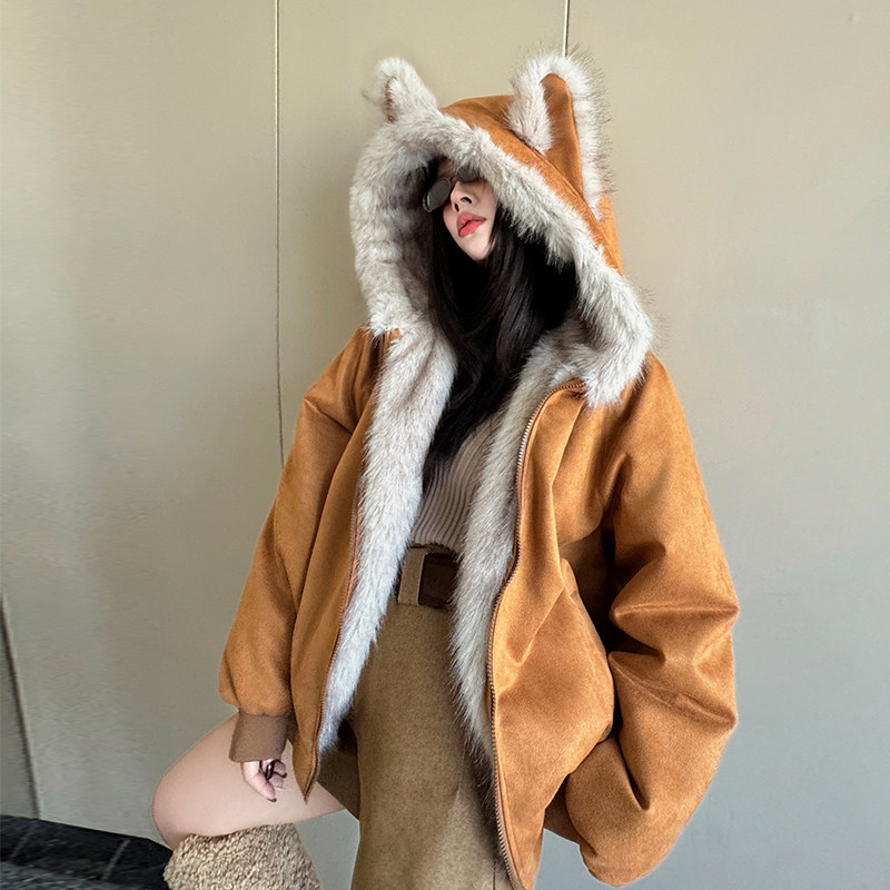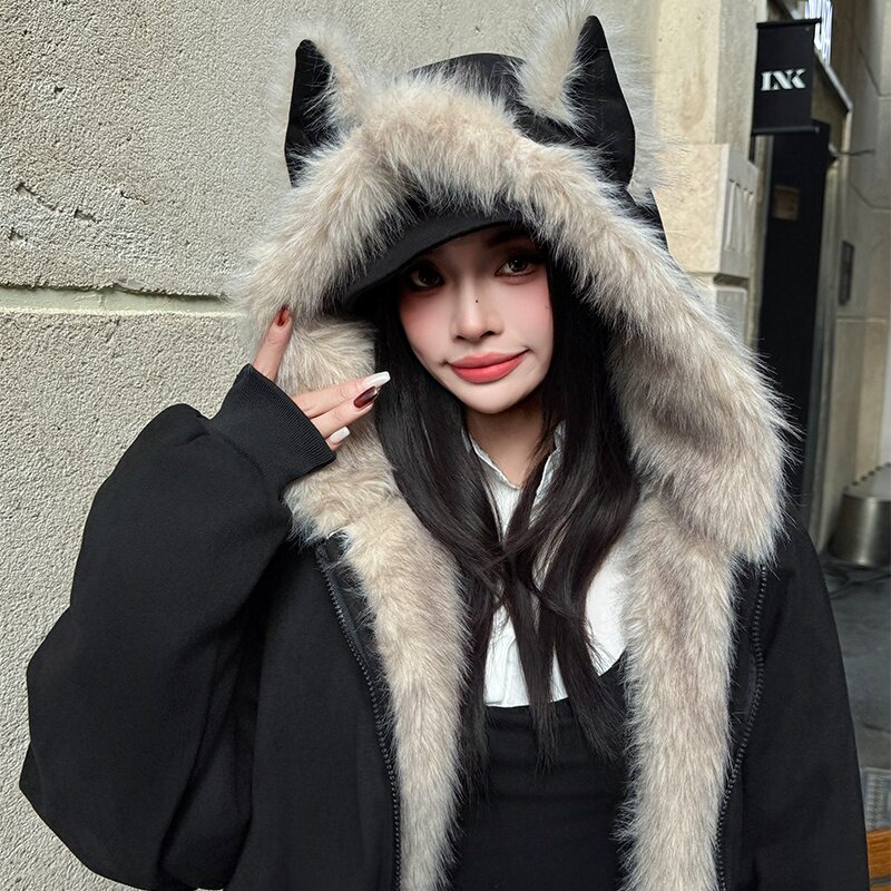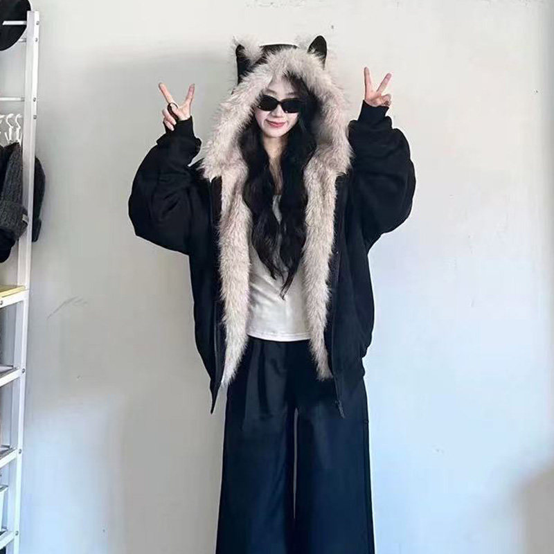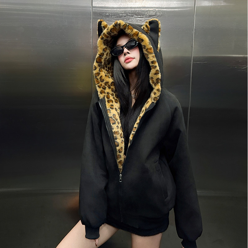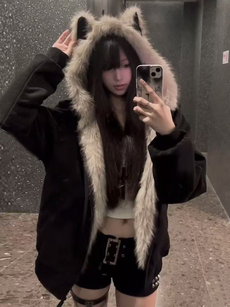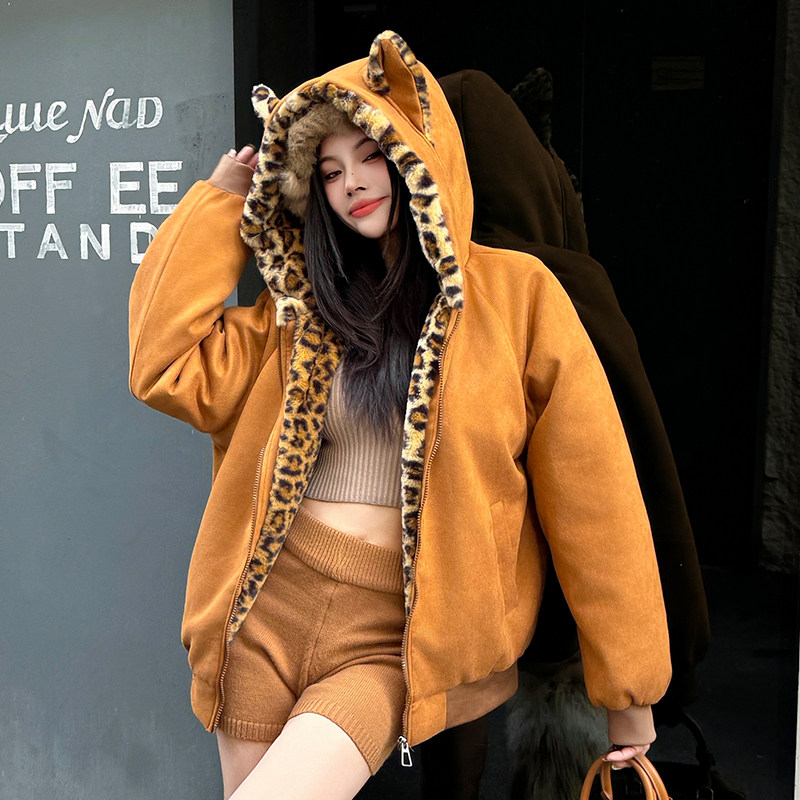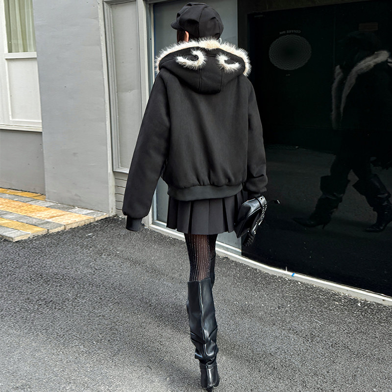 Black Cotton-Padded Jacket for Women, 2025 Winter New Model, Zuo Shan Diao Cat Ear Coat, Large Size, Thickened Cotton-Padded Jacket, Women's Winter Clothing, Cotton Coat