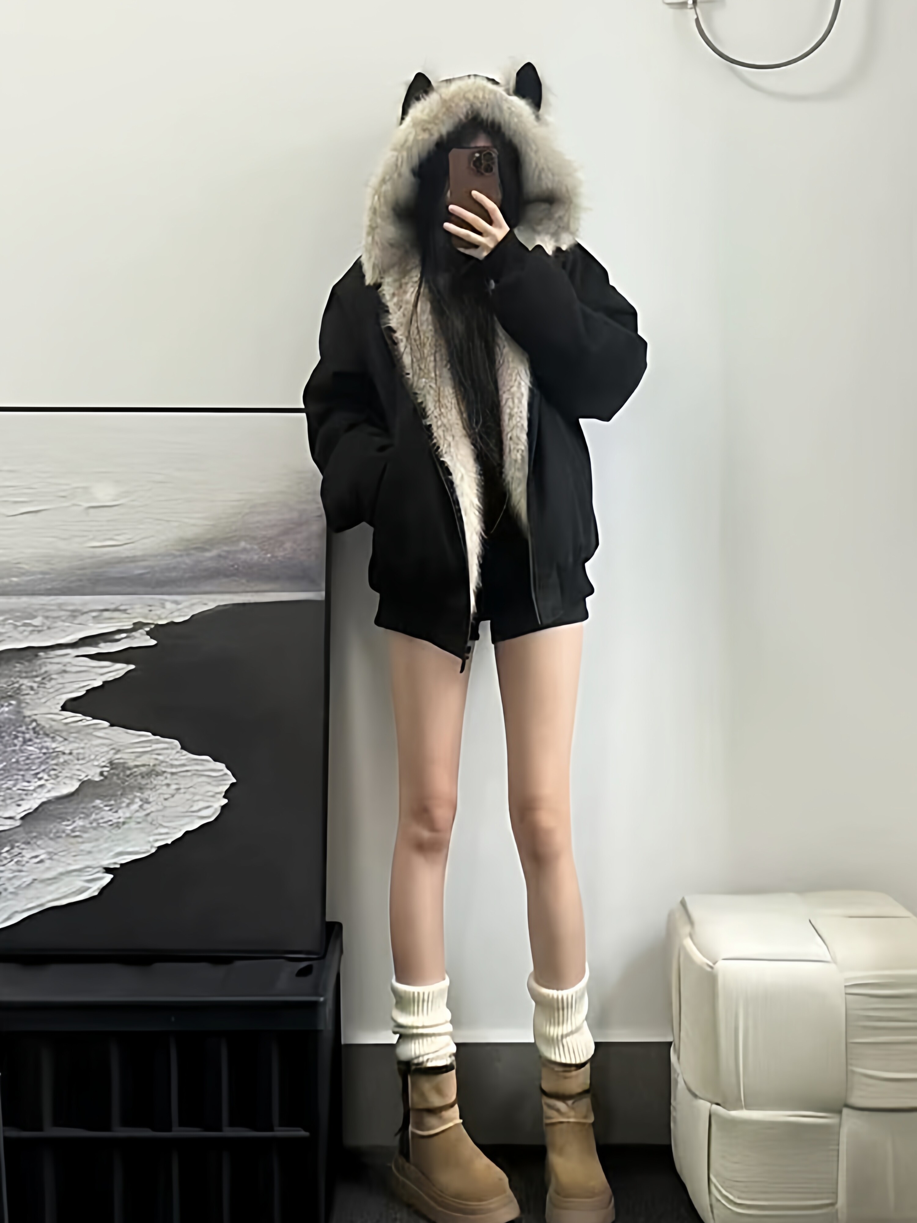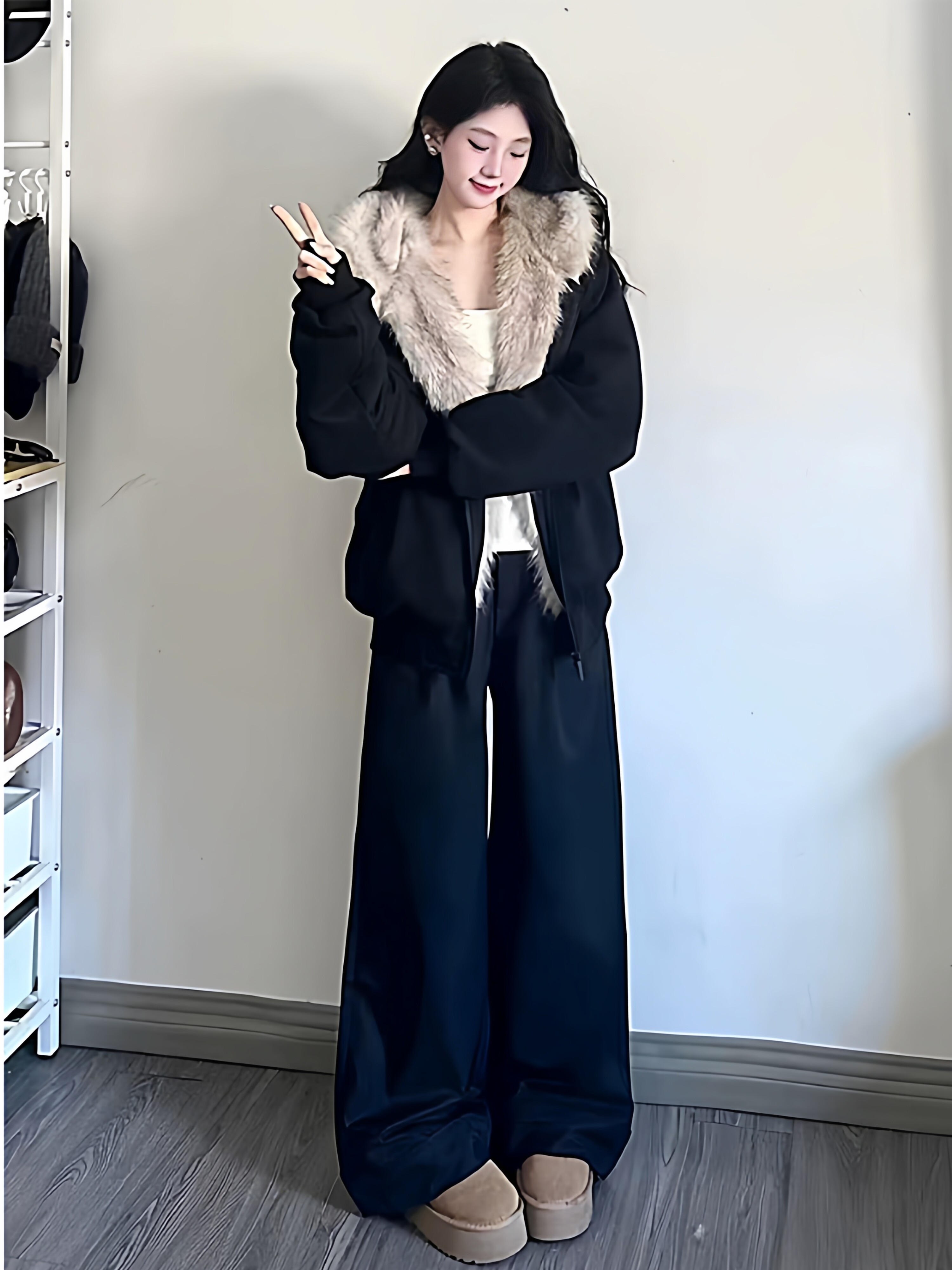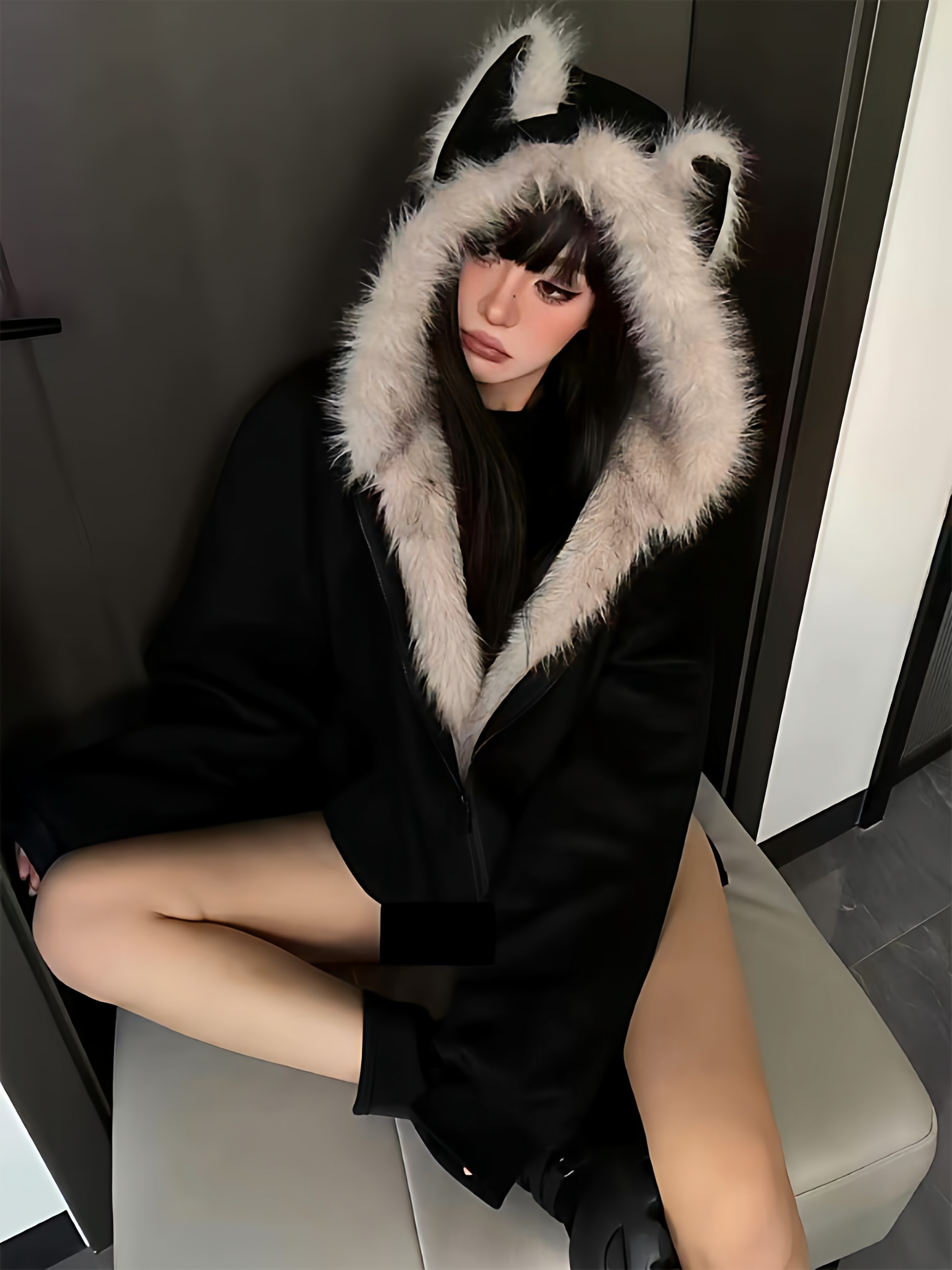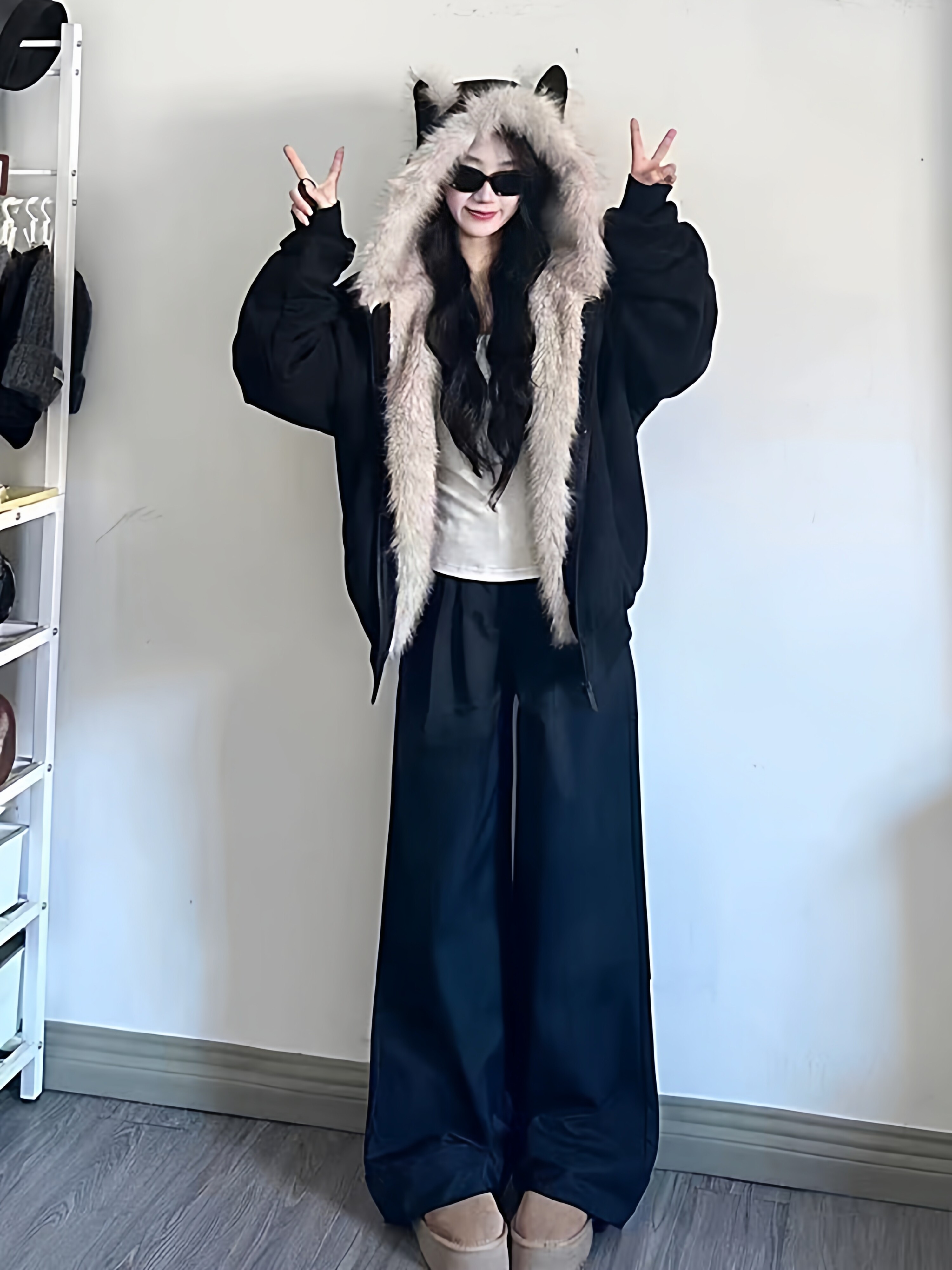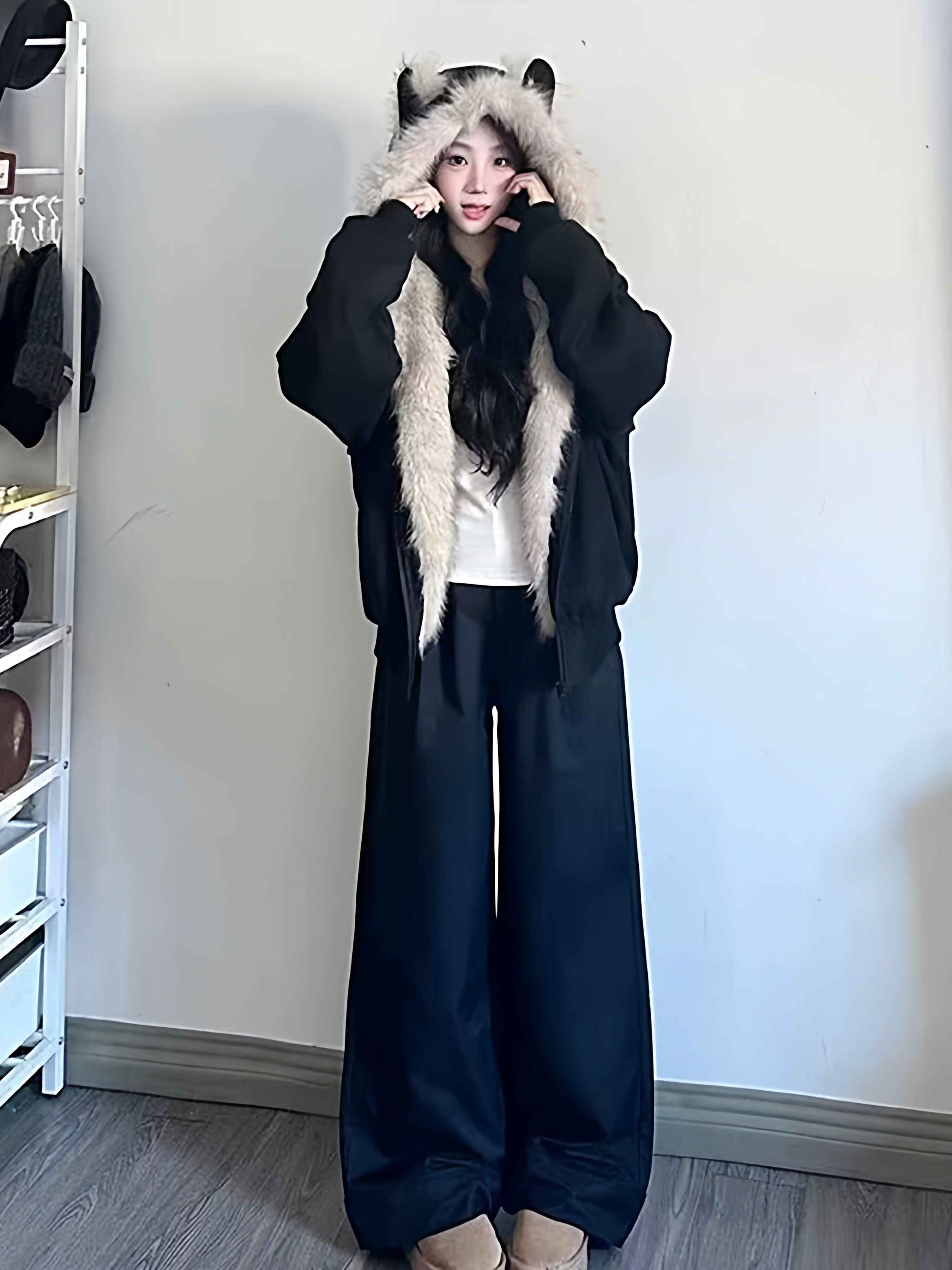 Black Cotton-Padded Jacket for Women, 2025 Winter New Model, Zuo Shan Diao Cat Ear Coat, Large Size, Thickened Cotton-Padded Jacket, Women's Winter Clothing, Cotton Coat
