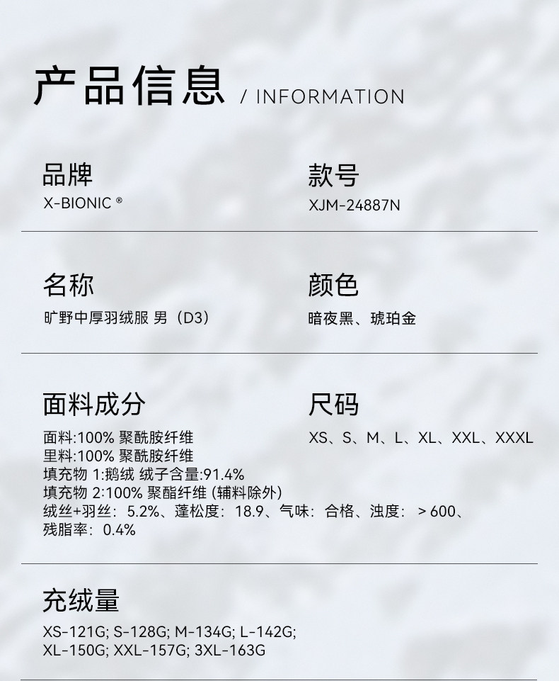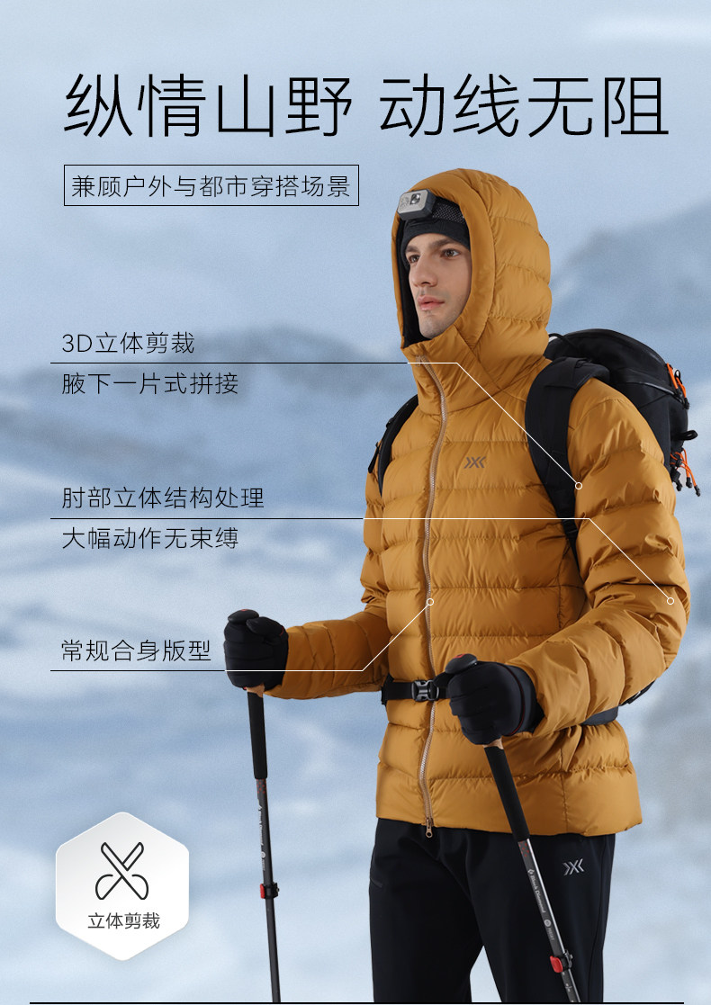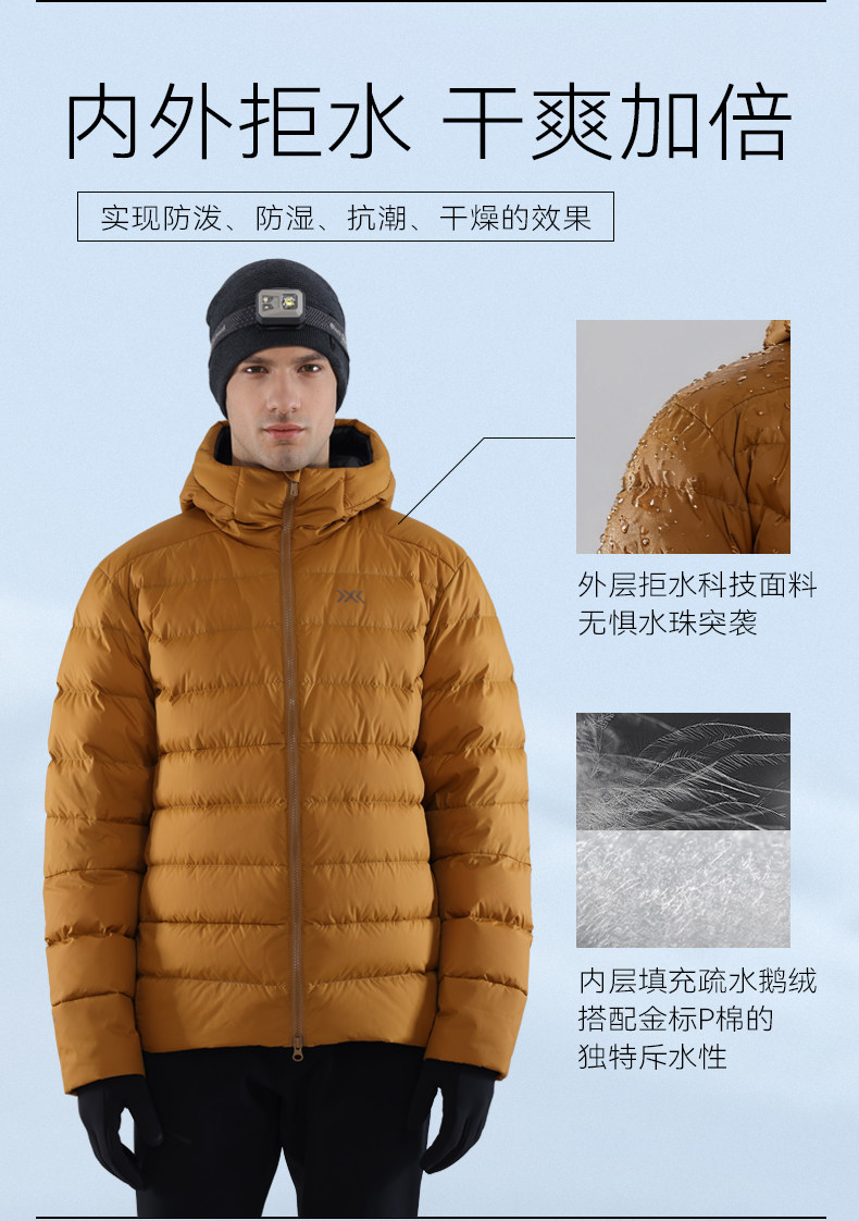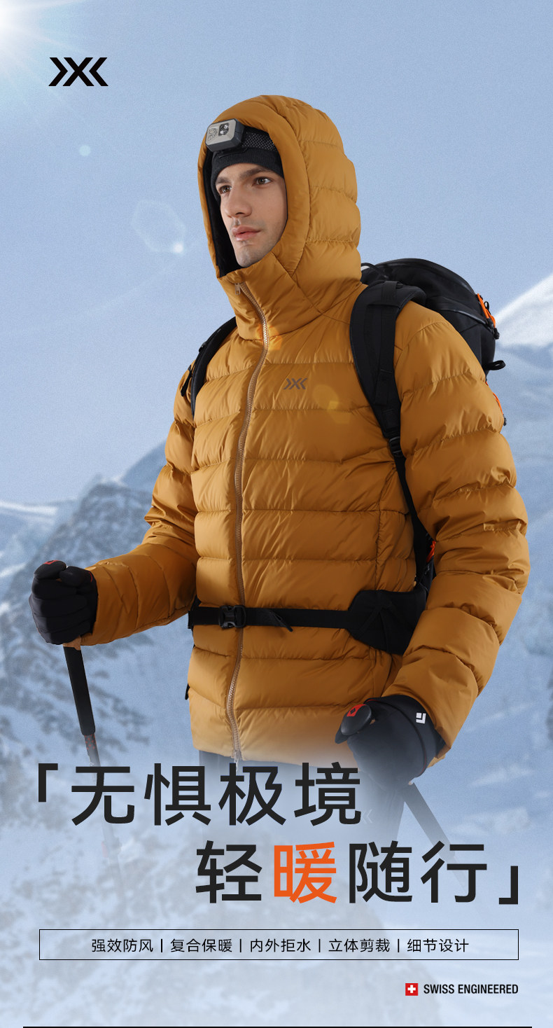 X-Bionic Wilderness Thick down Jacket for Men Outdoor Windproof Warm Water-Repellent Goose down Men's down Jacket