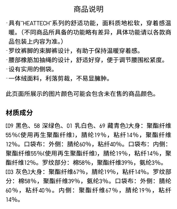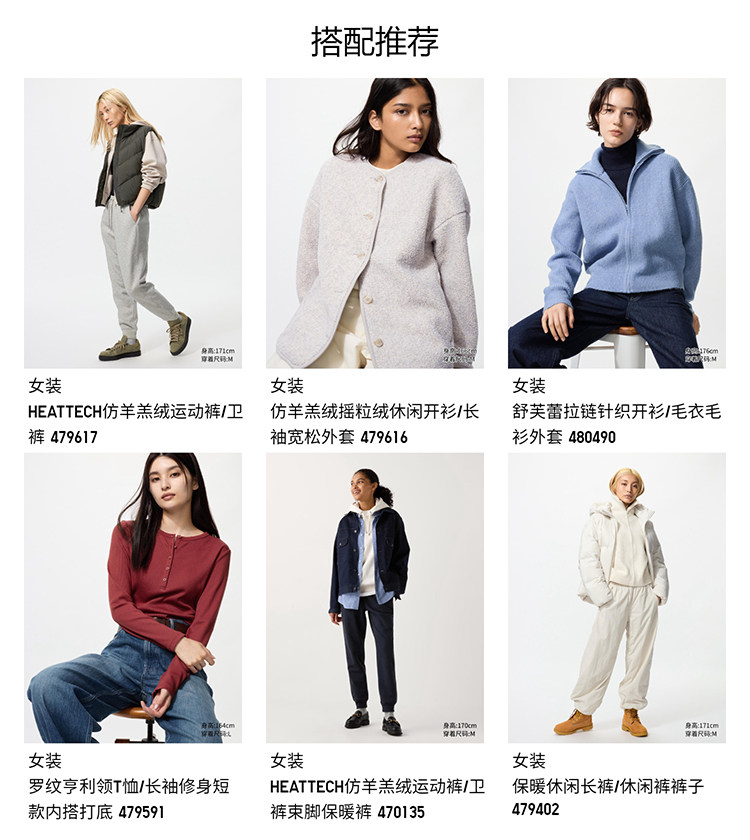 Uniqlo Women's Heattech Faux Shearling Sports Pants/Sweatpants Extended Length Autumn/Winter New Model 481253