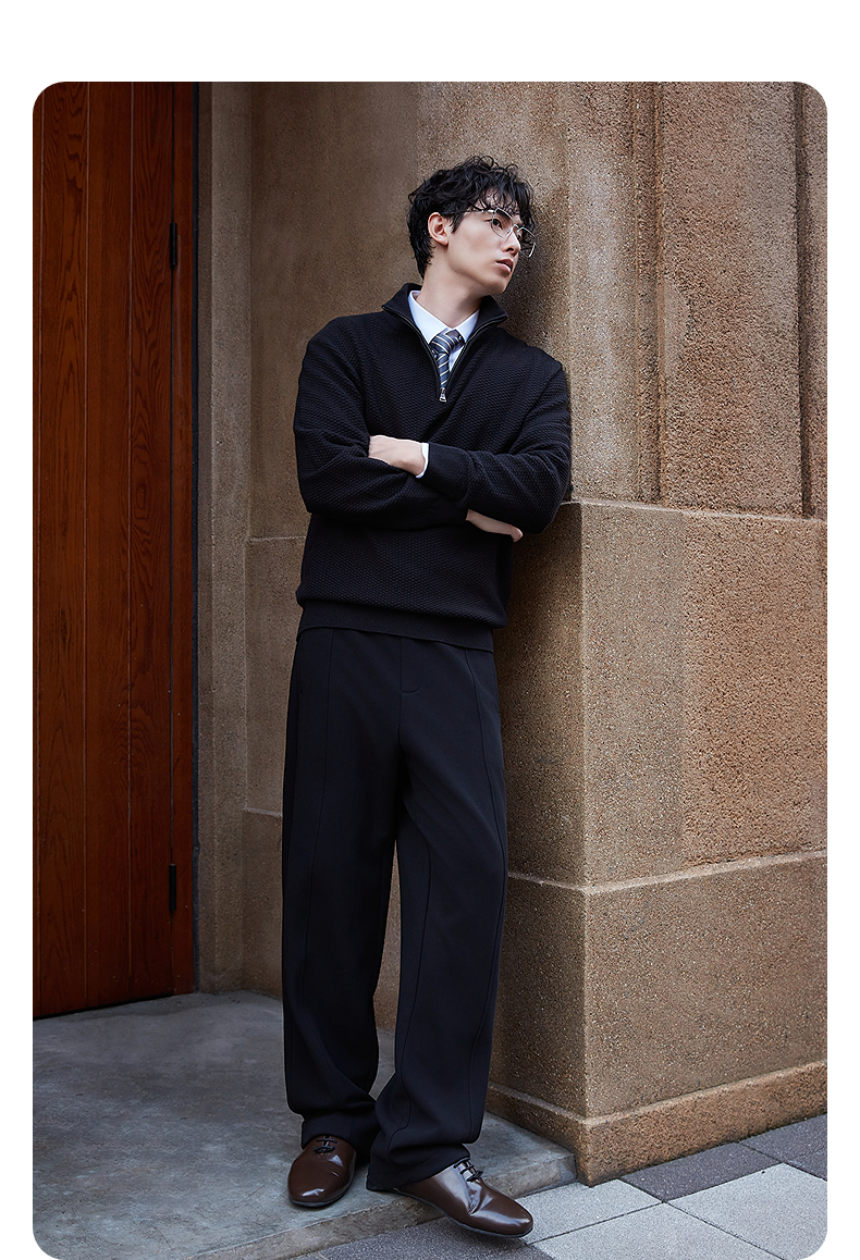 Gxg Men's Clothing 2025 Winter New Half-Zip High-Neck Patterned Sweater Wide-Leg Brushed Trousers Commuting Suit