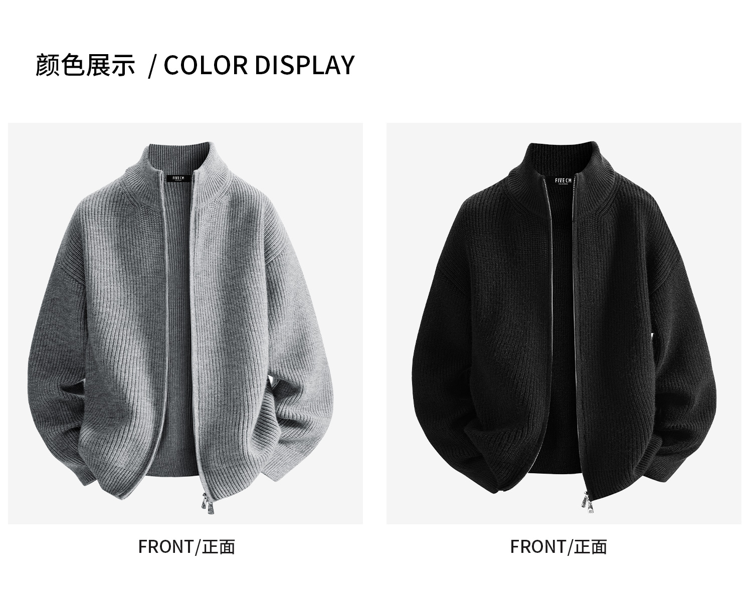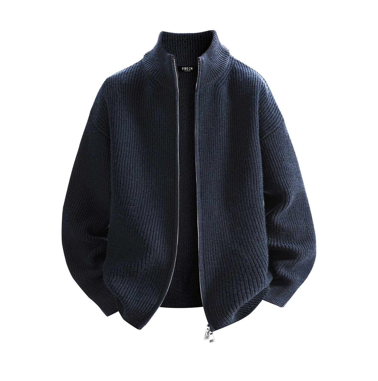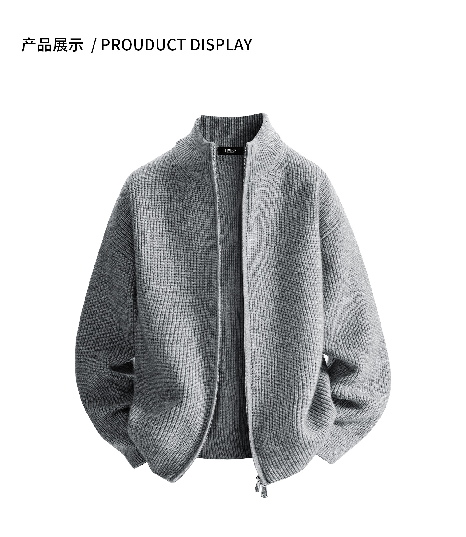 It: 5Cm/Fivecm Simple Zipper Stand-Up Collar Cardigan Sweater Jacket for Men, 2025 Autumn and Winter Loose Top