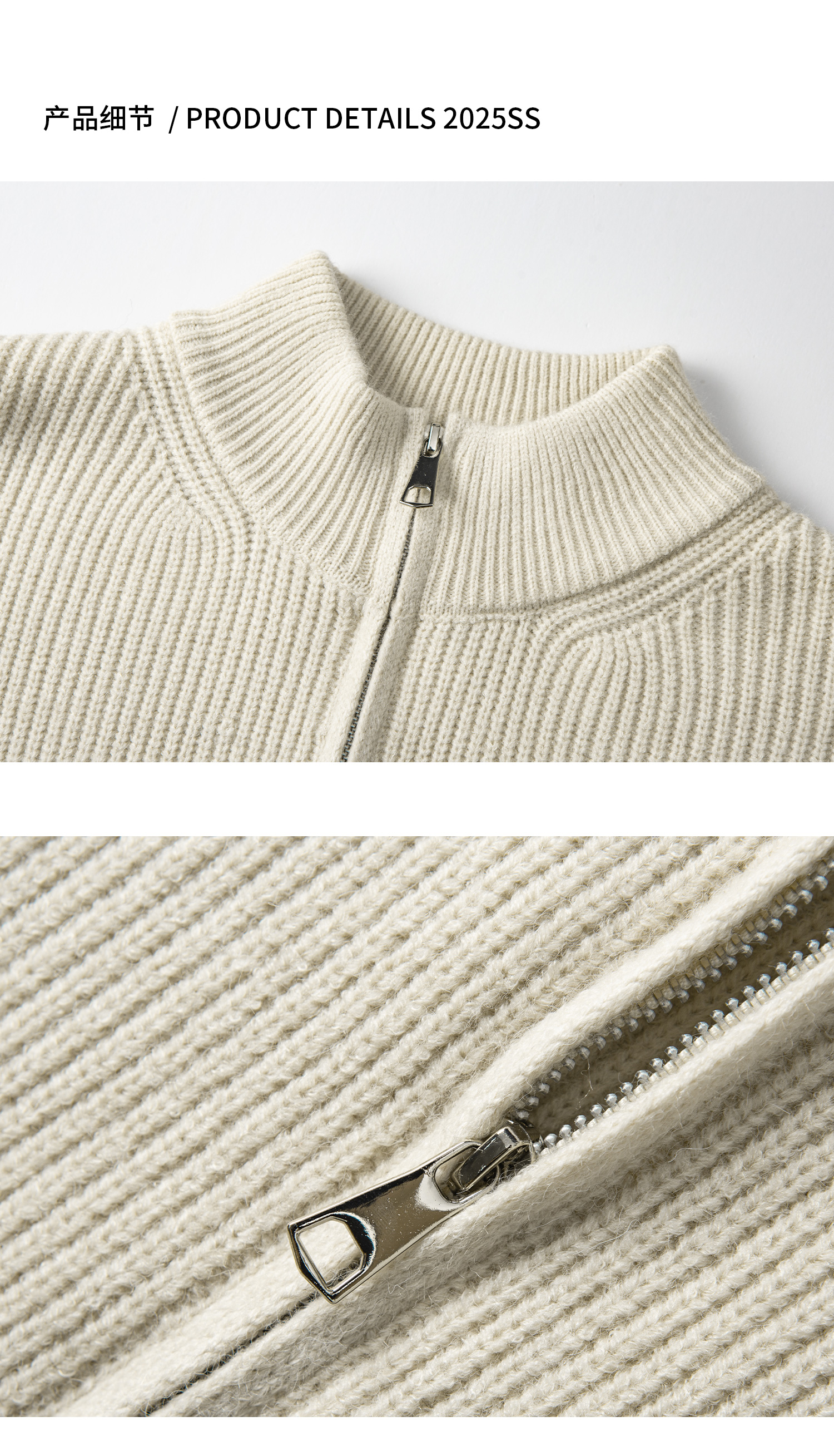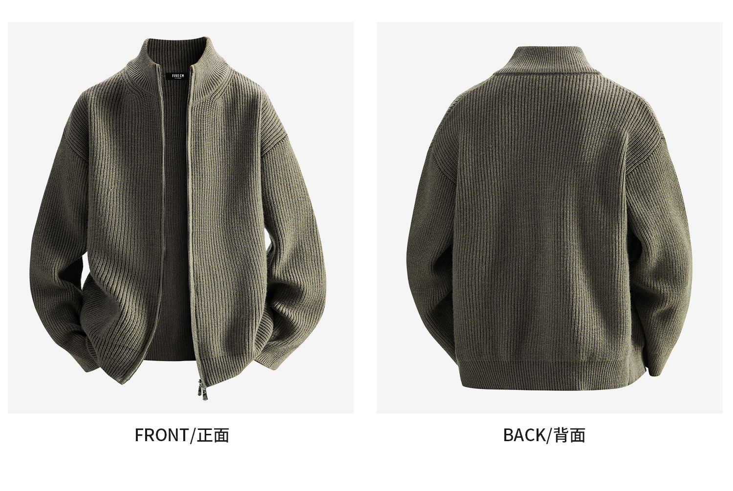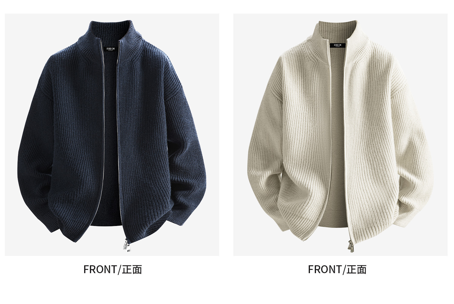 It: 5Cm/Fivecm Simple Zipper Stand-Up Collar Cardigan Sweater Jacket for Men, 2025 Autumn and Winter Loose Top