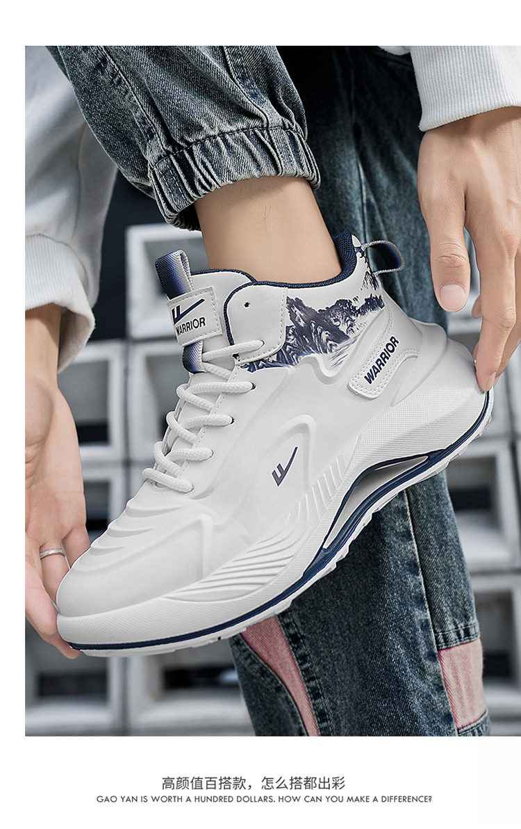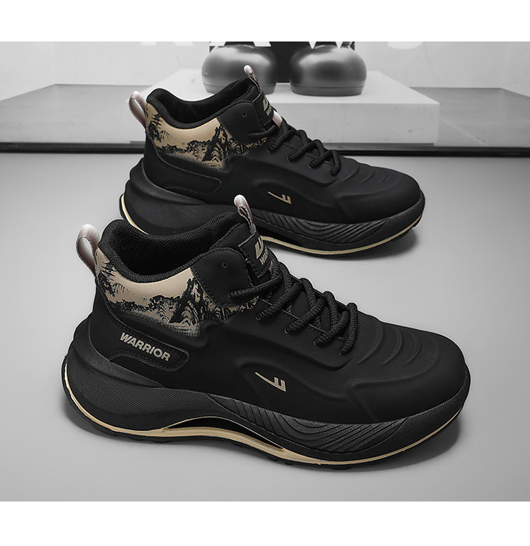Pull-Back High-Top Men's Shoes, Winter Fleece-Lined Sports Casual Shoes, Non-Slip, Shock-Absorbing, Wear-Resistant, Height-Increasing Basketball Warm Shoes for Men