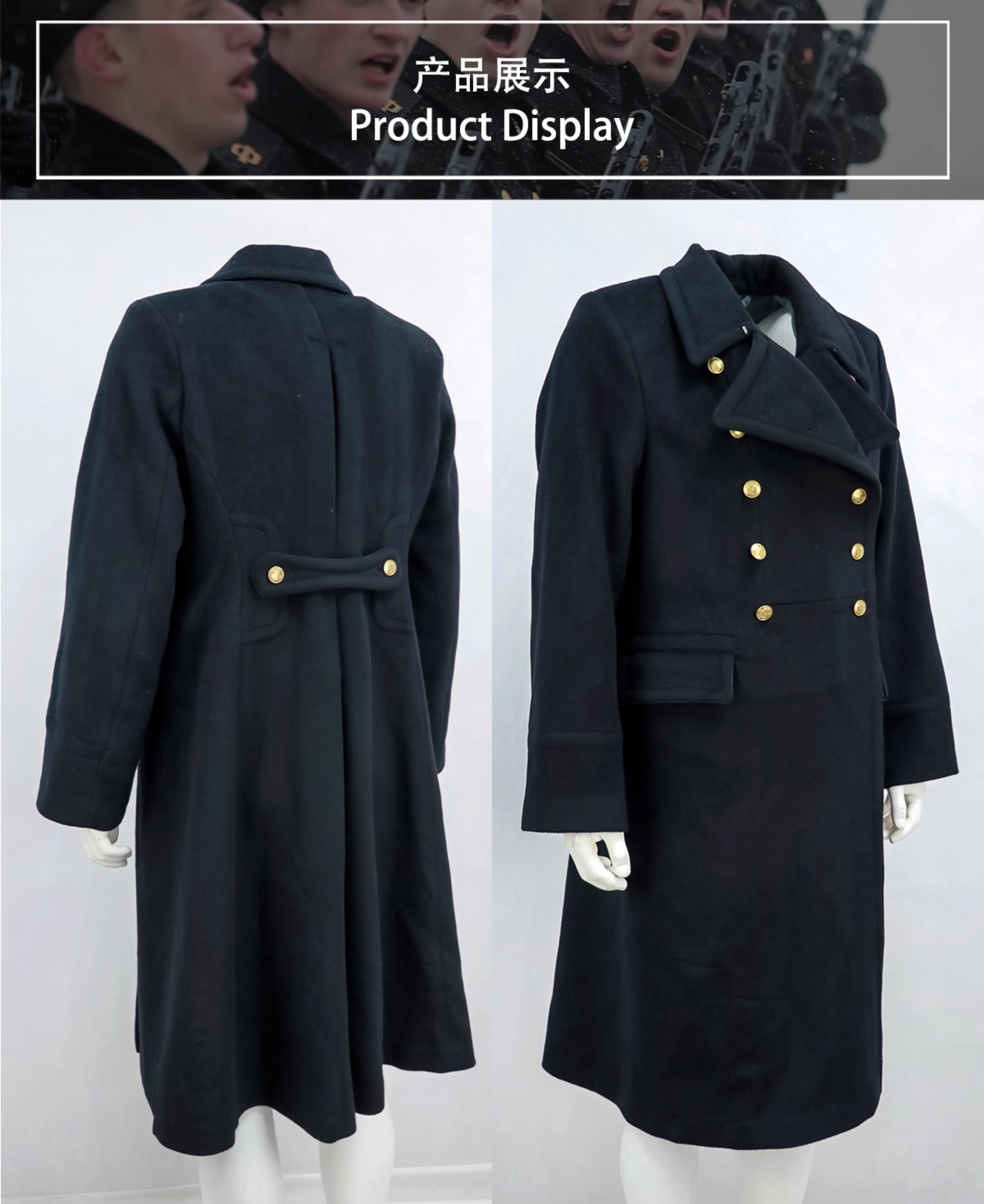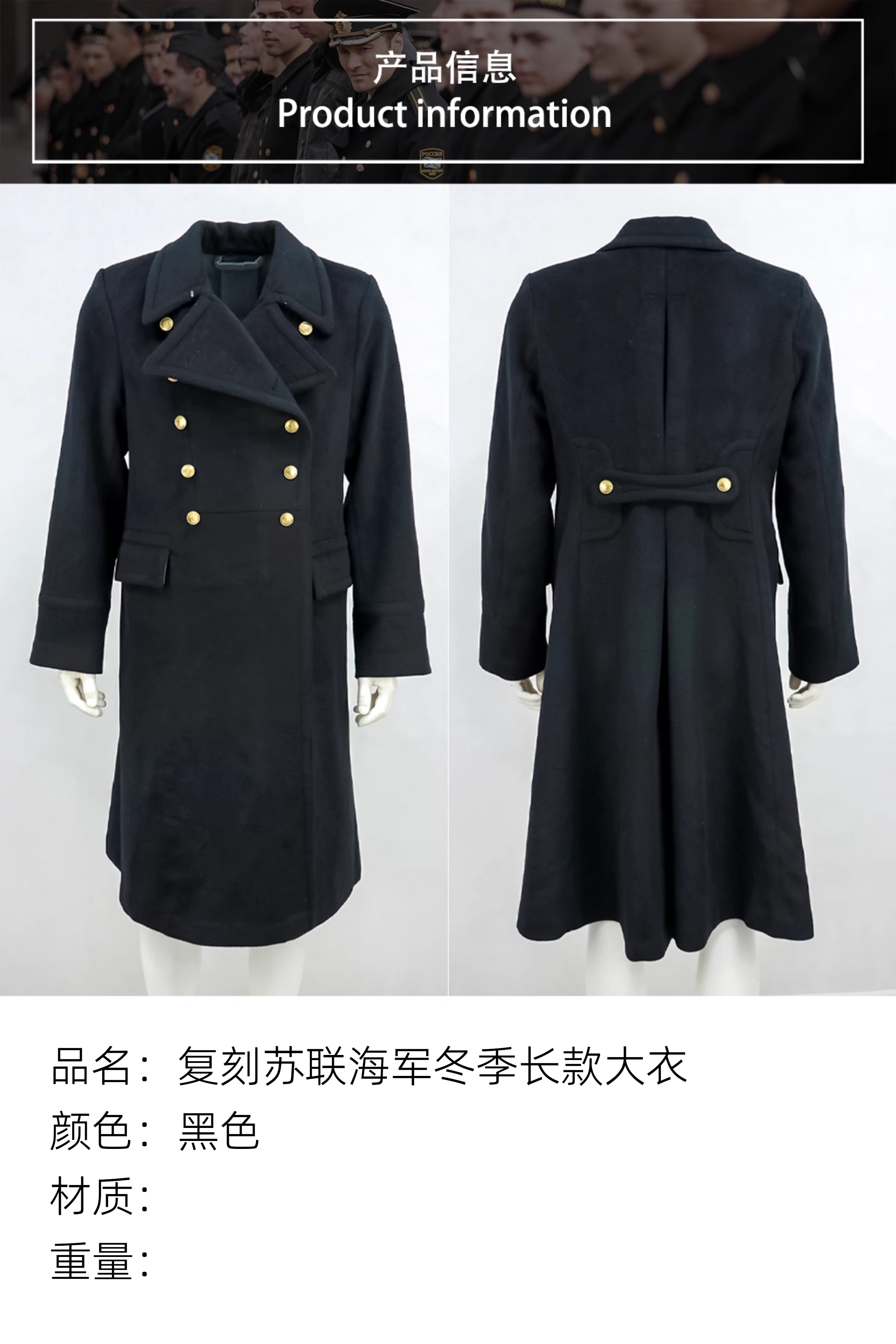 Cold War Era Replica of the Soviet Navy M69 Officer's Winter Black 12-Button Woolen Coat, Long and Cold-Resistant