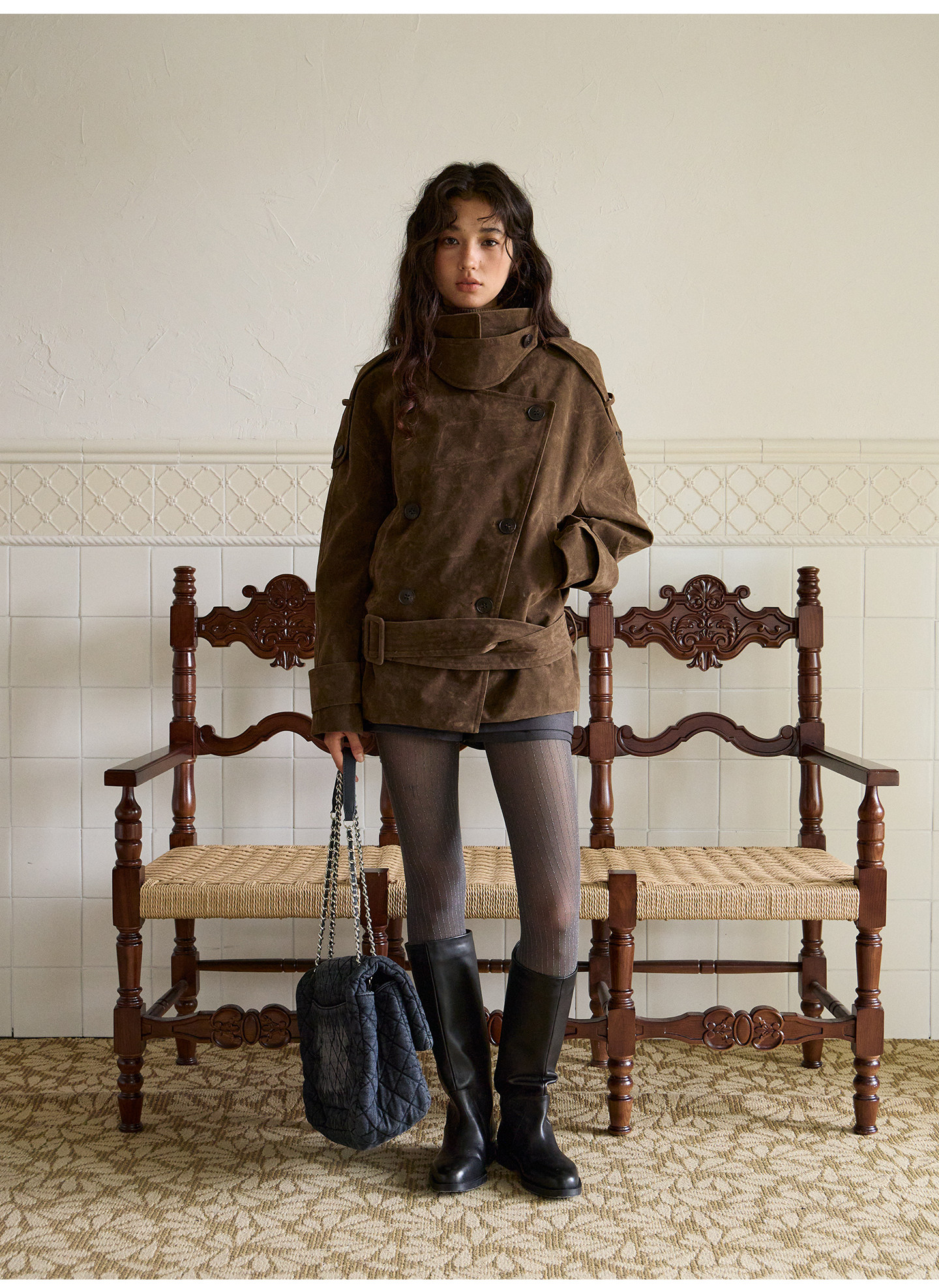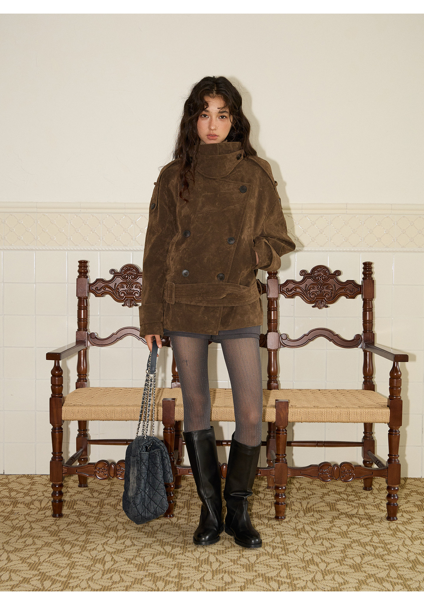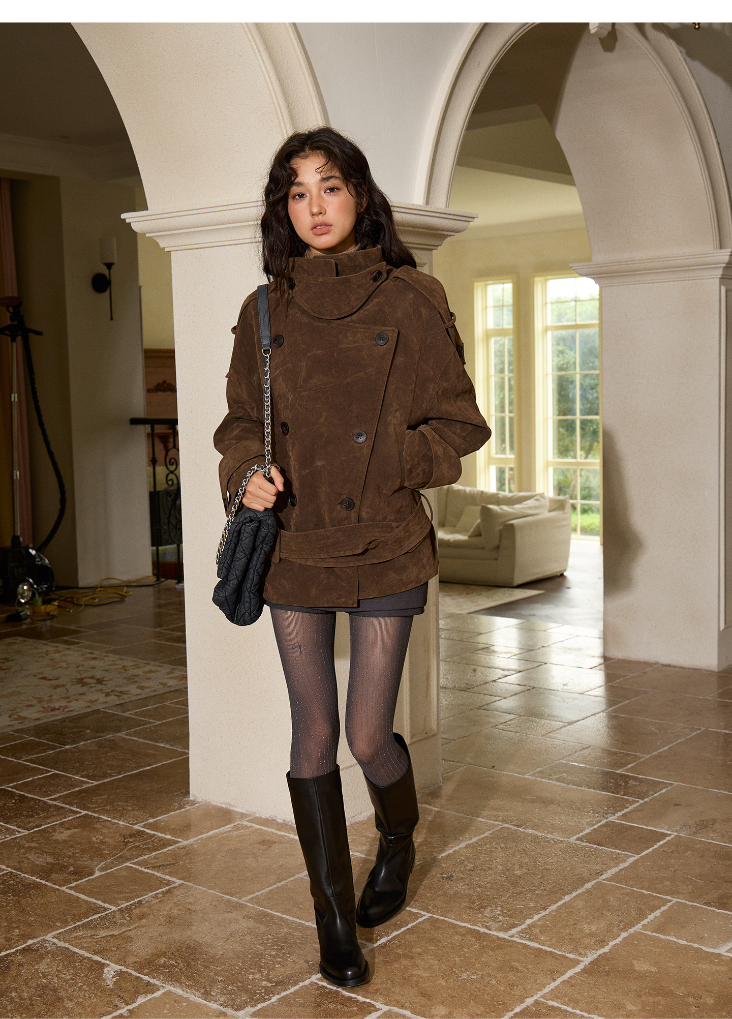 Cthemoon French-Style Fashionable Retro Stand-Up Collar Short Padded Warm Cotton Coat Brown Thickened Short Jacket for Women