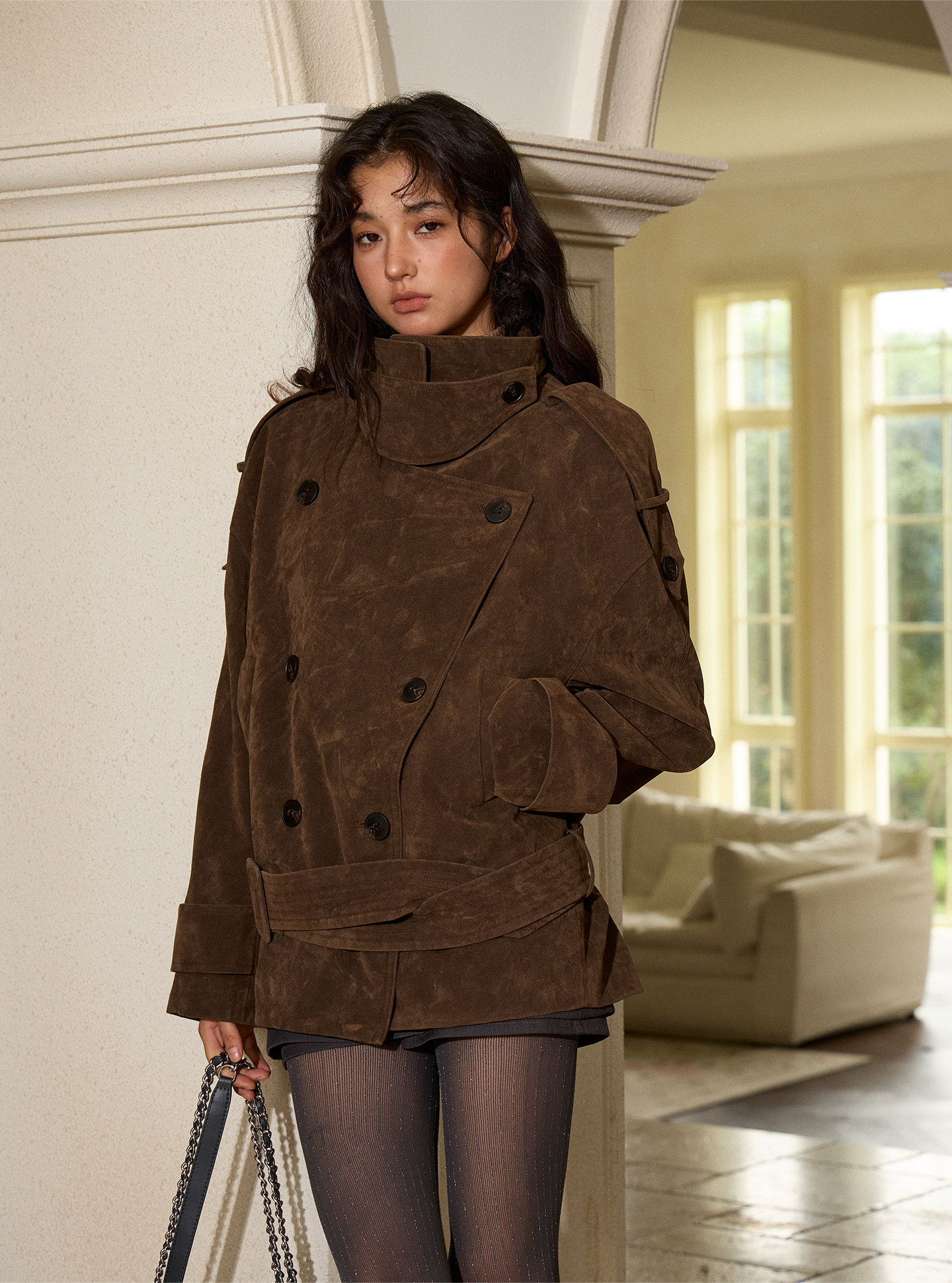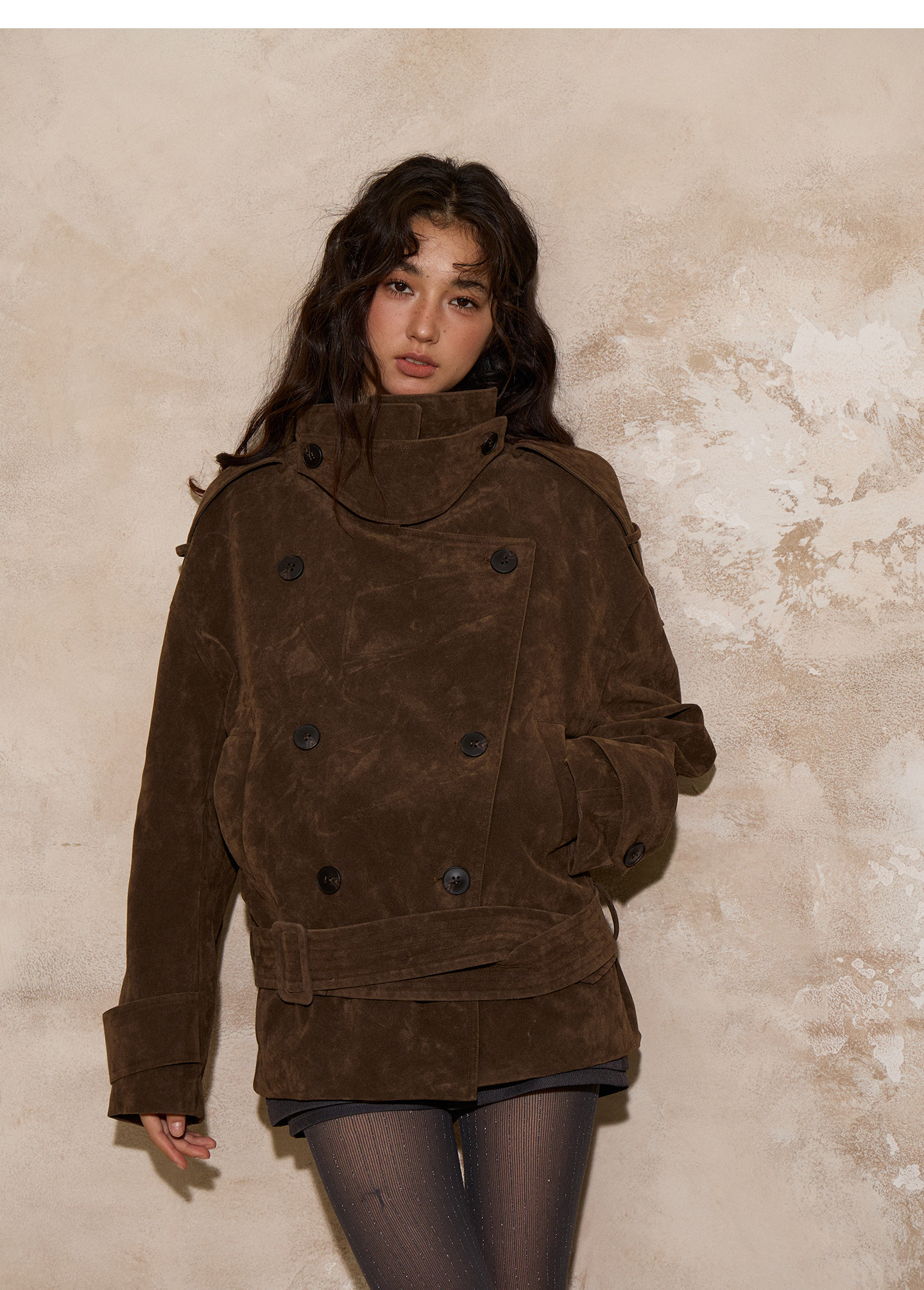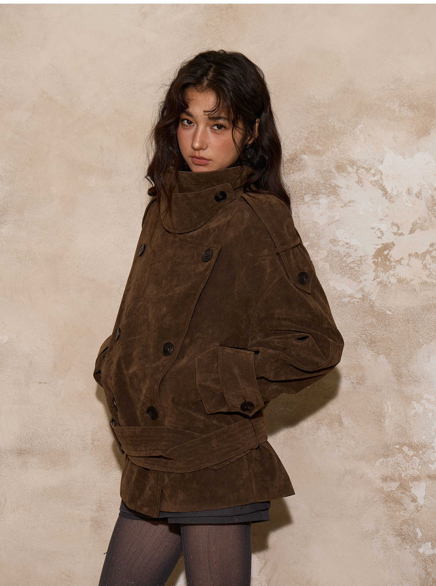 Cthemoon French-Style Fashionable Retro Stand-Up Collar Short Padded Warm Cotton Coat Brown Thickened Short Jacket for Women