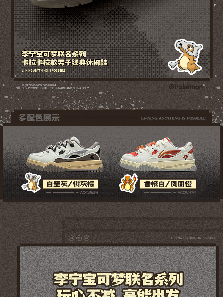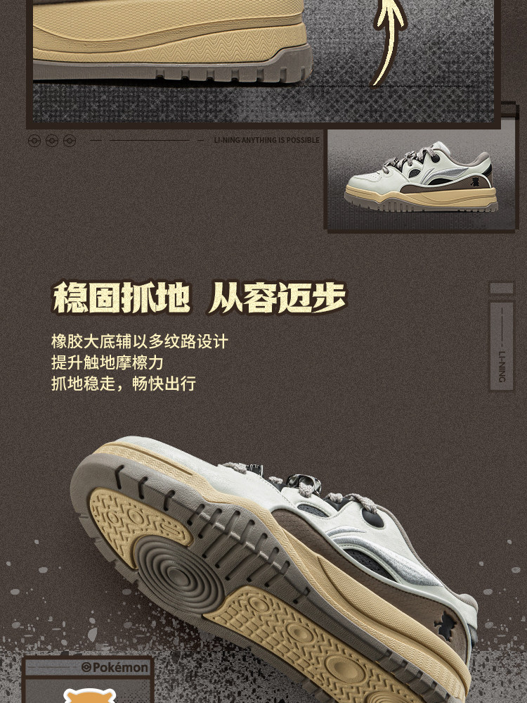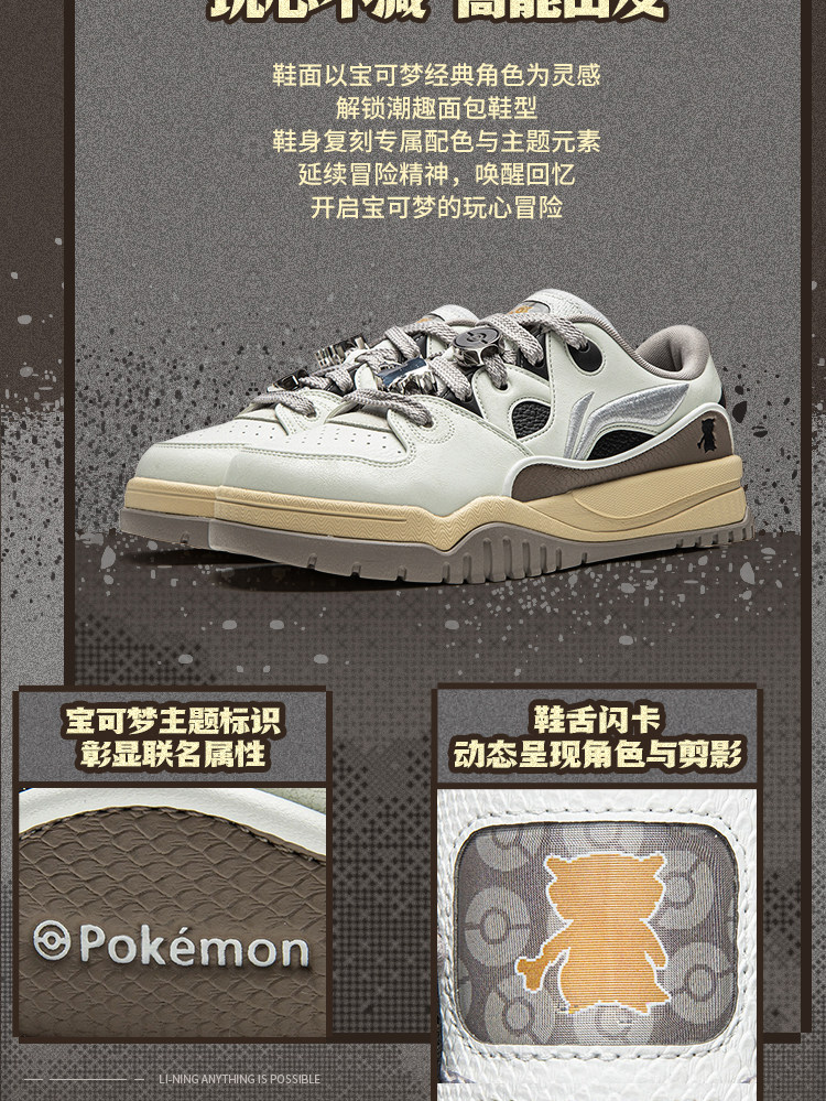 Li-Ning Pokémon Collaboration Trendy Sneakers | Men's Casual Shoes Autumn/Winter New Classic Comfortable Low-Top Sneakers
