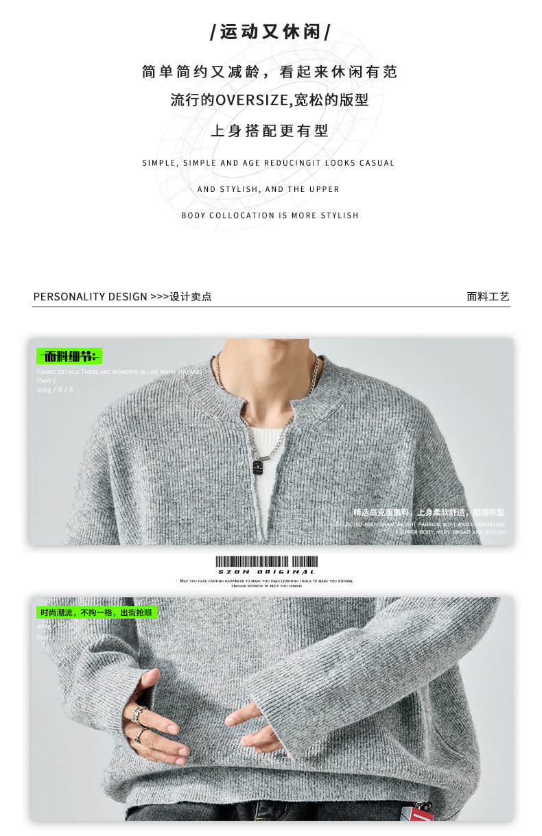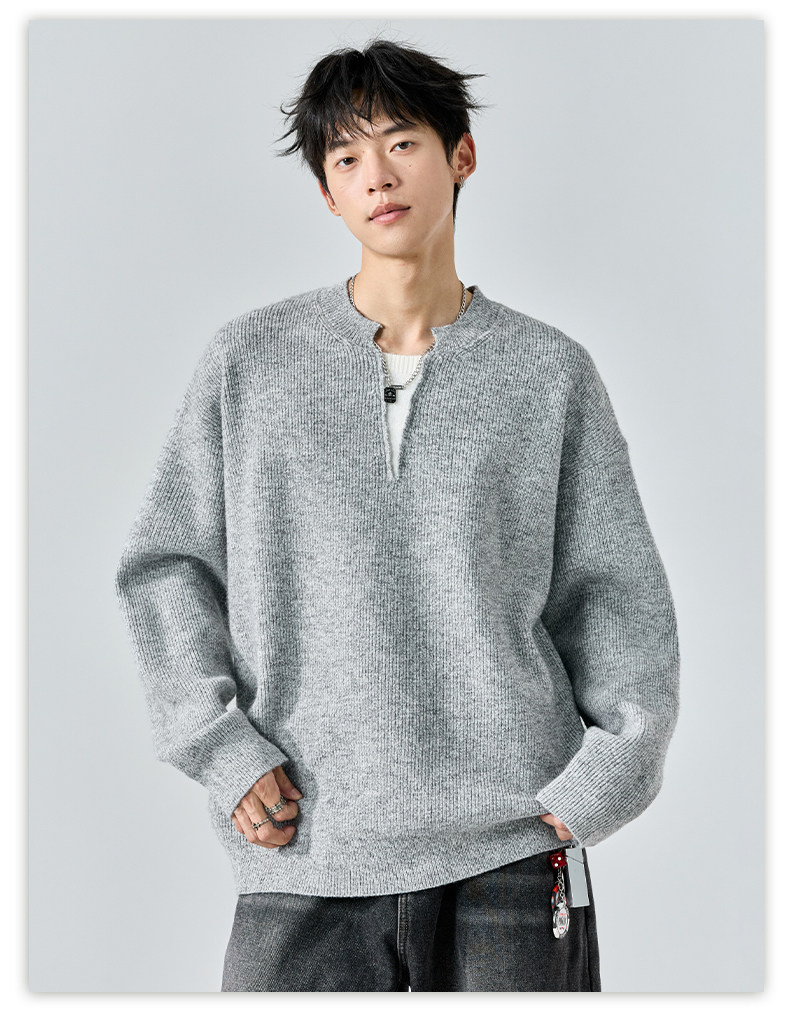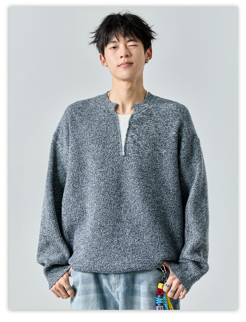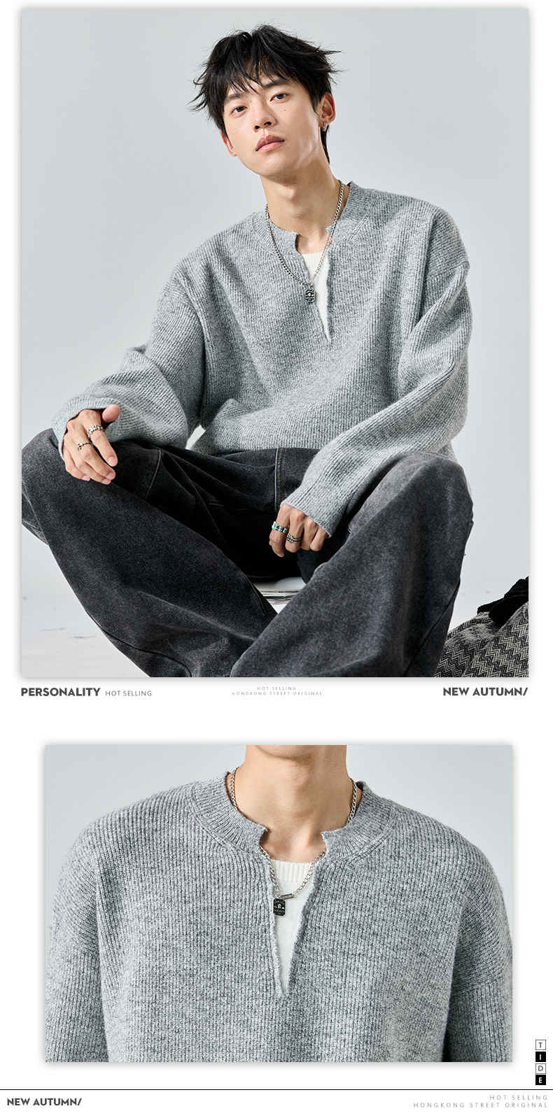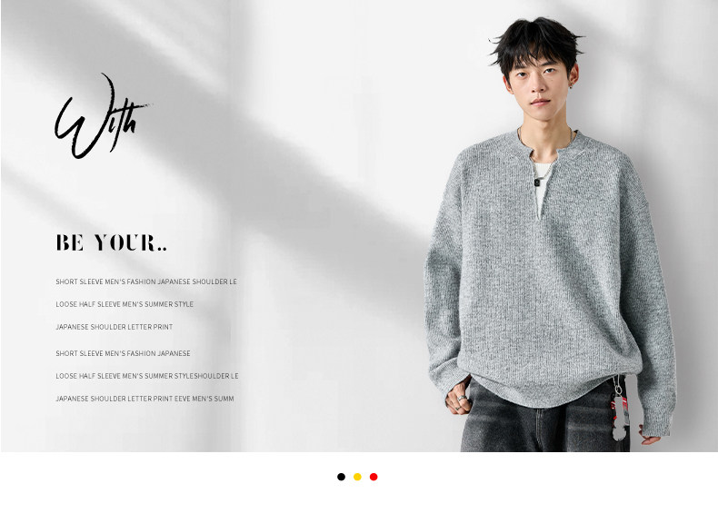 Men's Autumn Outfit: Japanese-Style Color-Blocked V-Neck Sweater Paired with Black Jeans, Giving a High-End and Cool Look