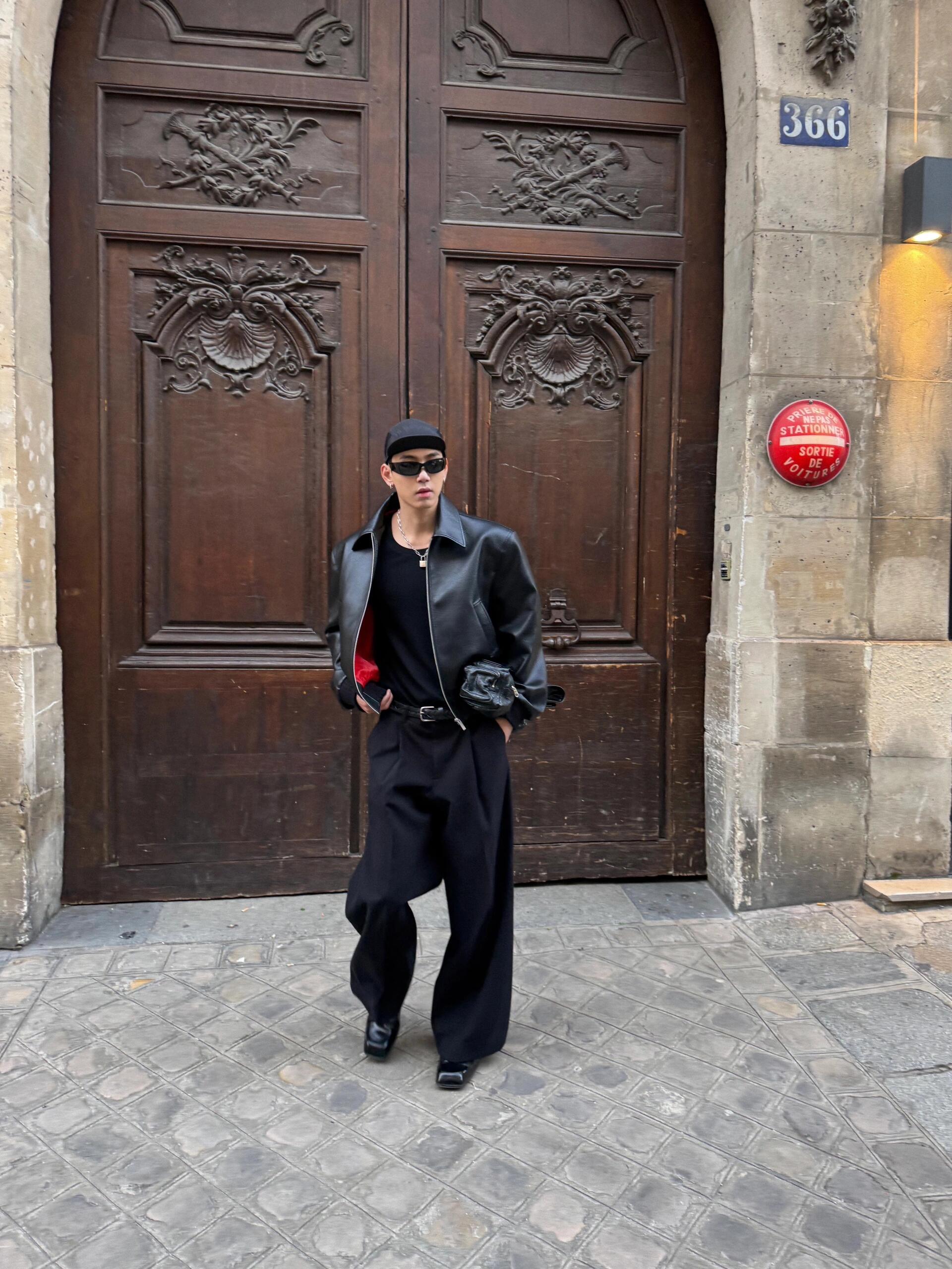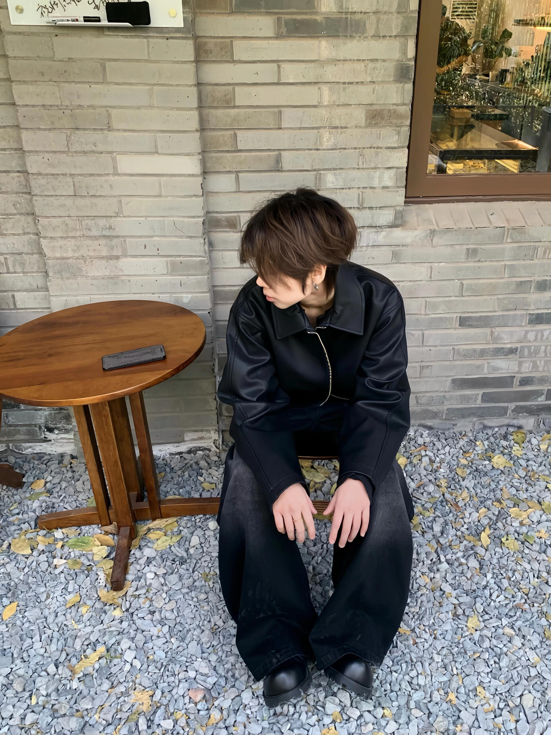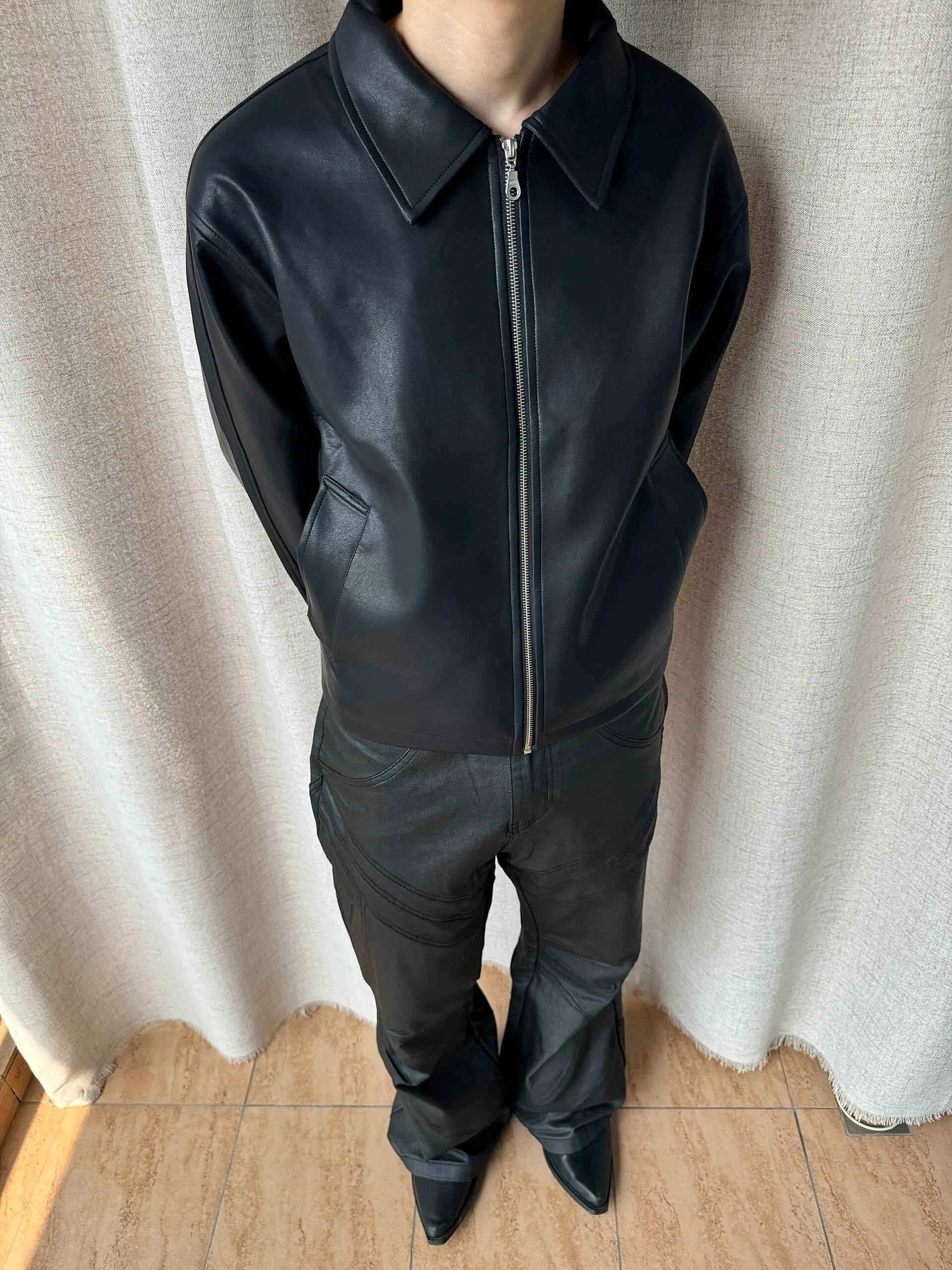 Ankora Red Lining Textured Pu Leather Short Wide Black Leather Jacket Cleanfit Unisex Jacket Intent