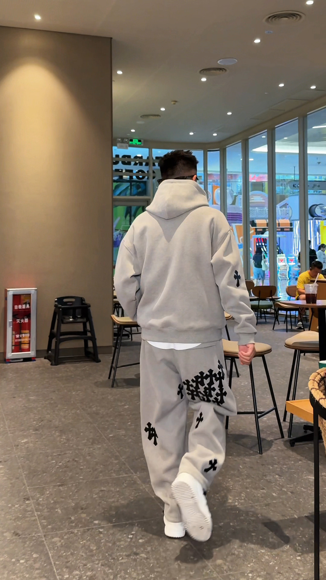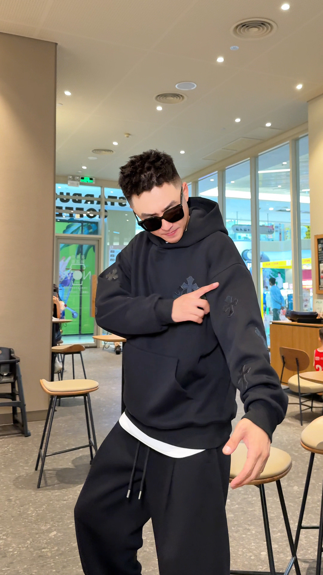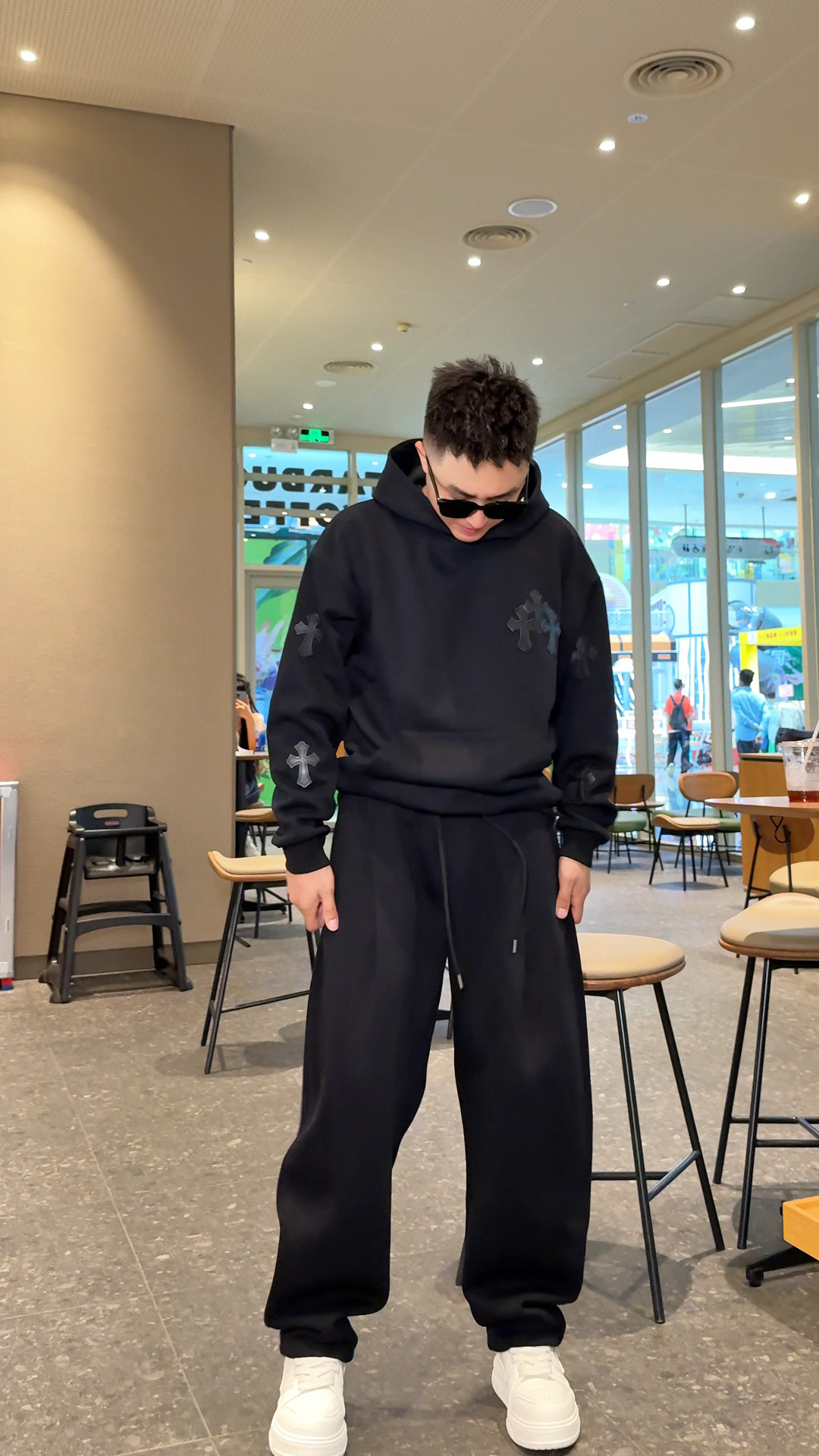 The Same Style as the Live Broadcast: Winter Men's Sweatshirt with American High Street Cross-Pattern Design, Casual Sweatpants, Fleece-Lined Sports Set