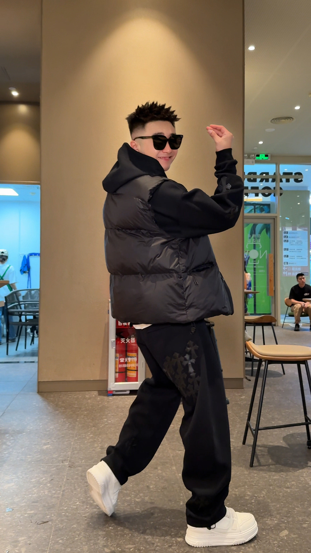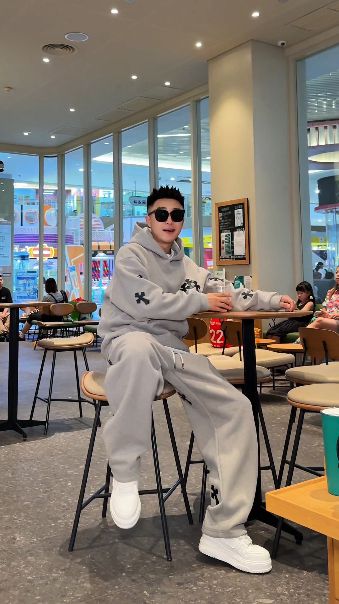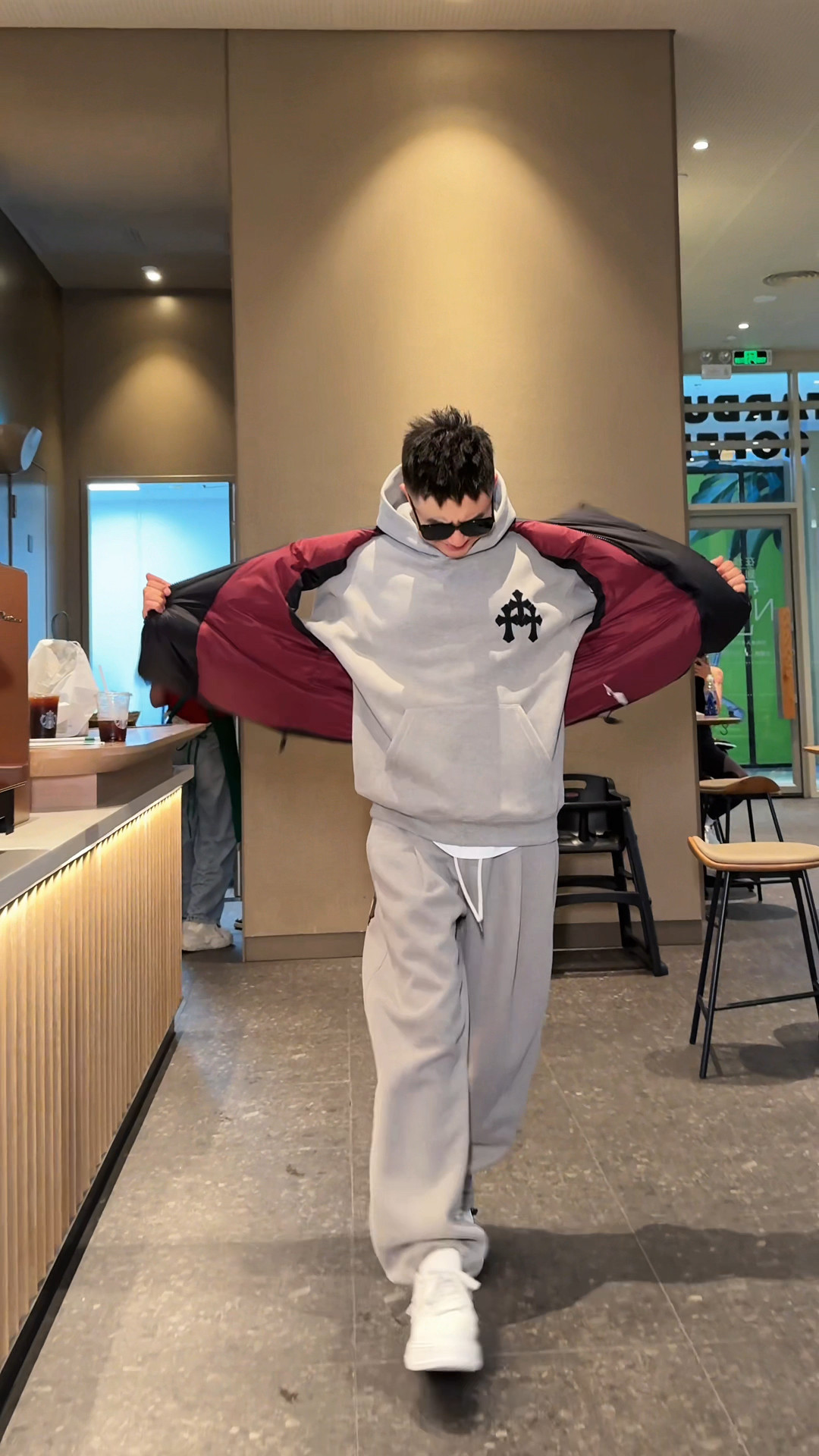 The Same Style as the Live Broadcast: Winter Men's Sweatshirt with American High Street Cross-Pattern Design, Casual Sweatpants, Fleece-Lined Sports Set