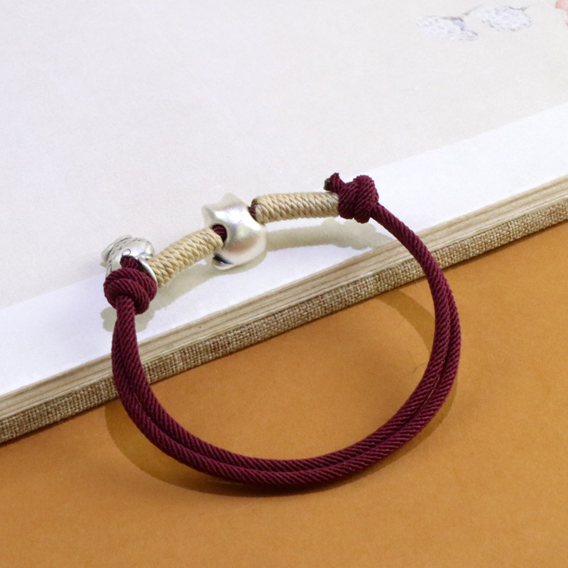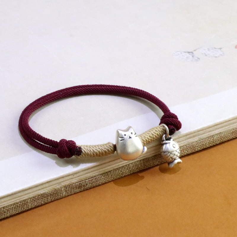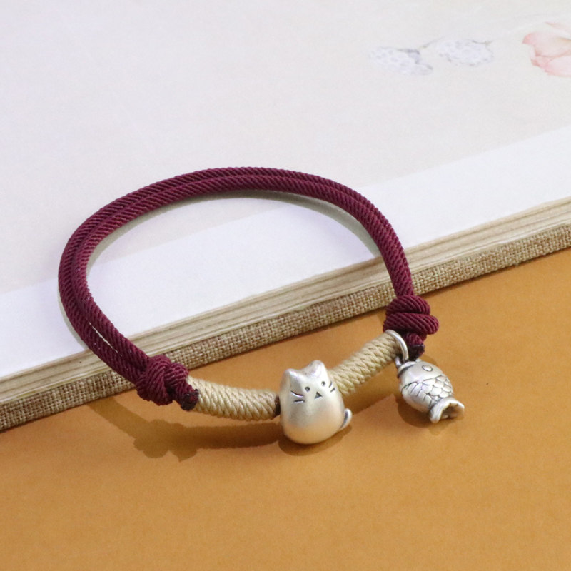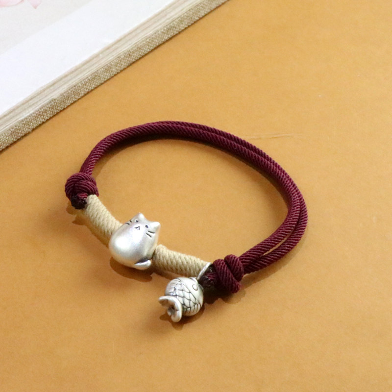 Hua Ying 999 Pure Silver Chinchilla Red String Bracelet for Women, New Chinese Style Small Fish Lucky Cat Niche National Style Jewelry