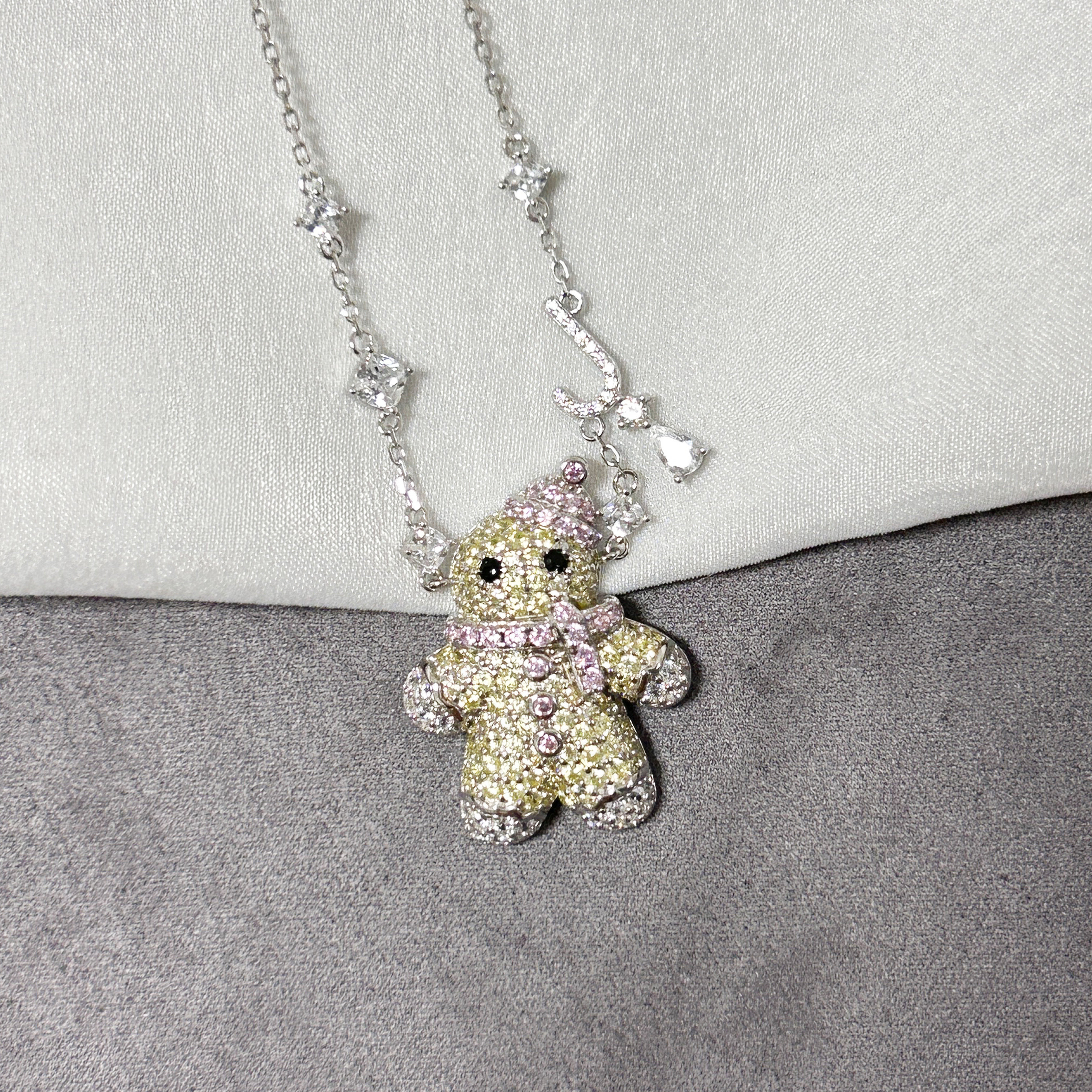 Jasmine's Proud Daughter Style Cute Frosted Gingerbread Man 925 Silver Zircon Necklace