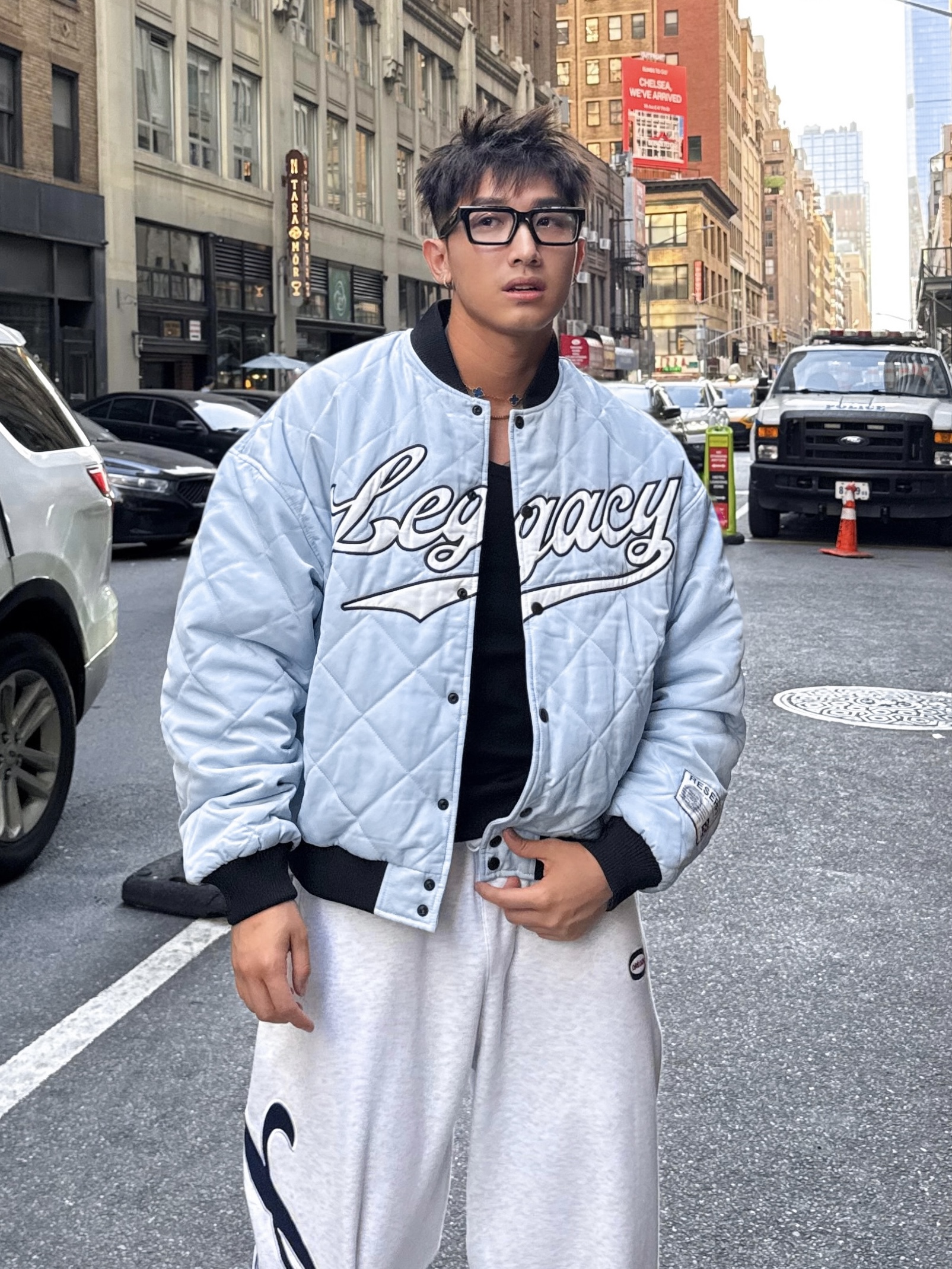 RESERFF X AVIA joint Oregon legend ice blue Retro Embroider patch baseball flying jacket cotton-padded jacket