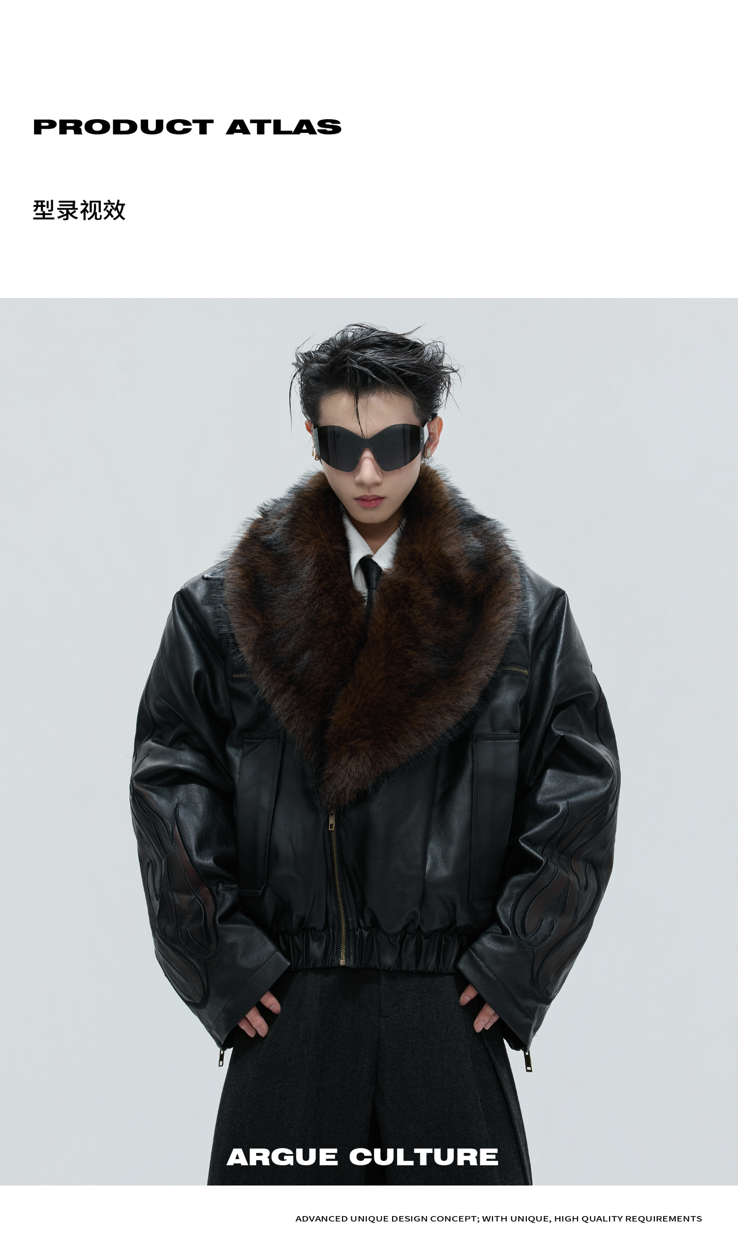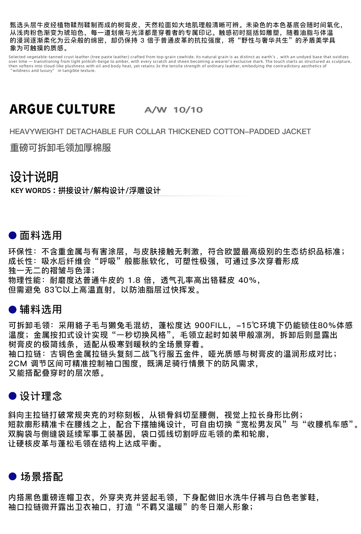 Argue Culture Iceland Polar Night* Heavy-Duty Detachable Fur Collar Thickened Cotton Jacket with Vintage Embossed Winter Coat