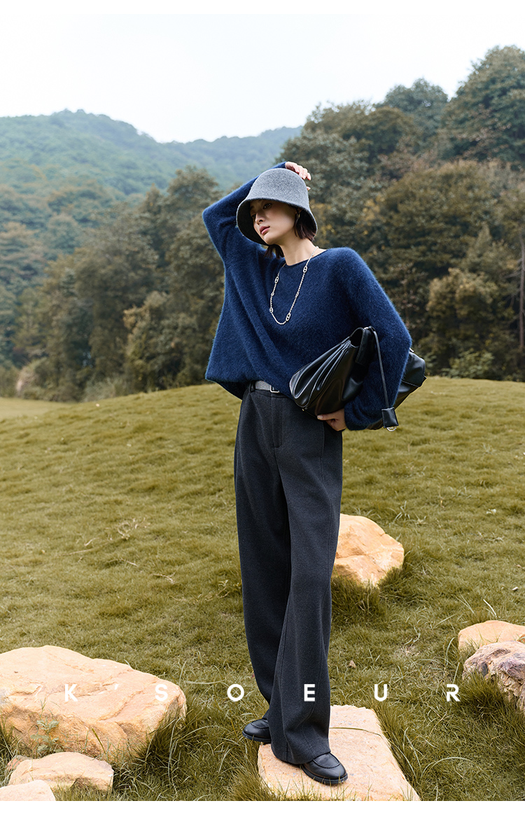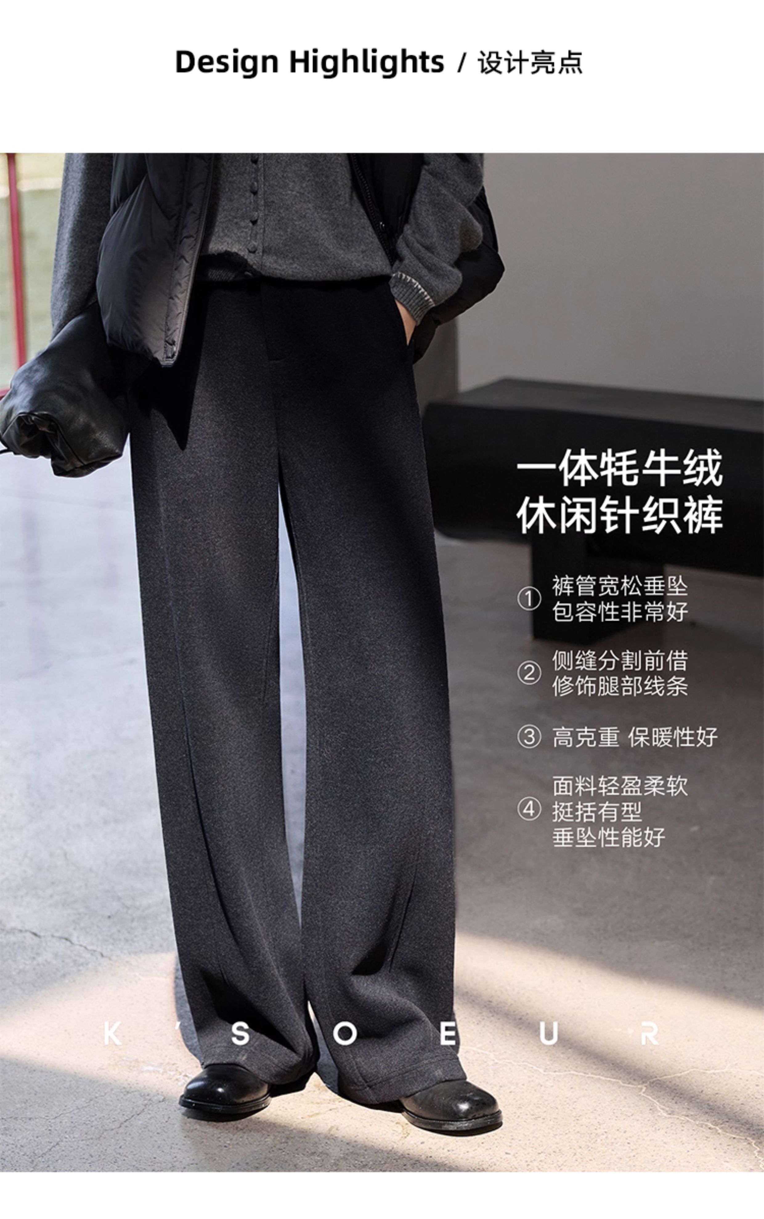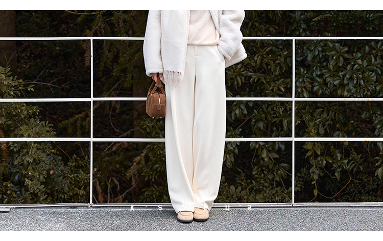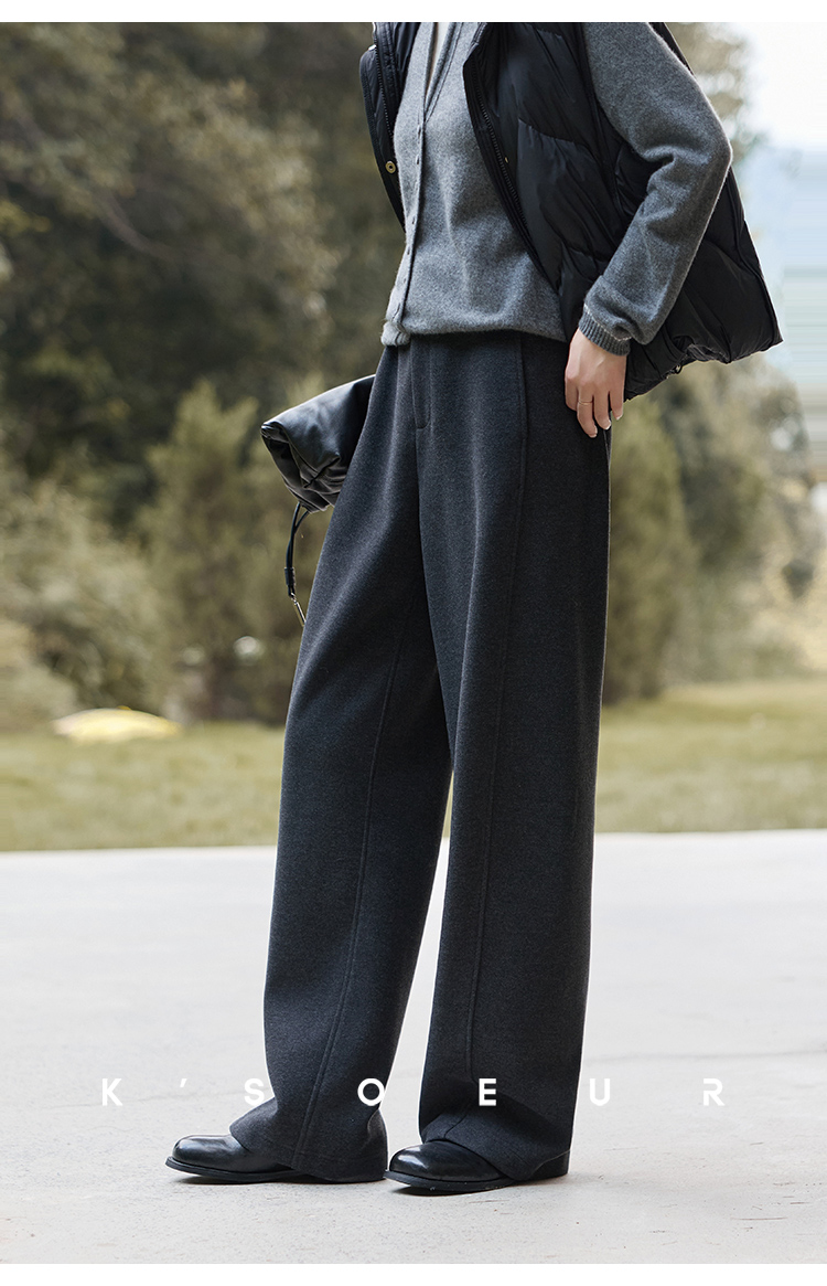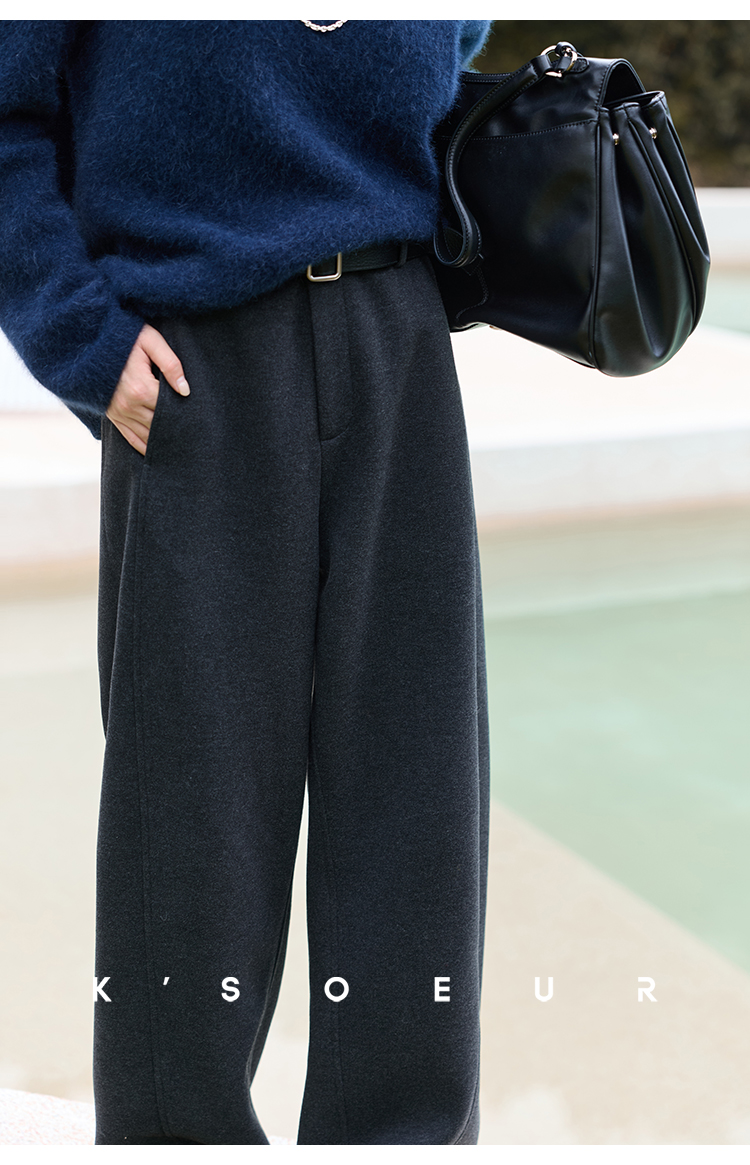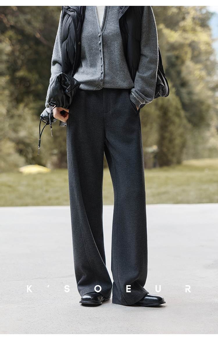 K elder sister KSOEUR [hand a yak pants] integrated yak velvet side seam front borrow Straight-leg knitted pants winter women