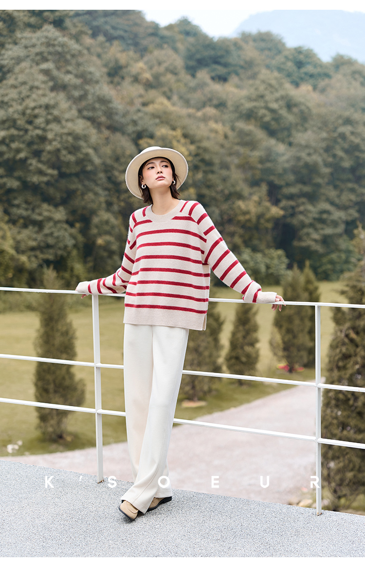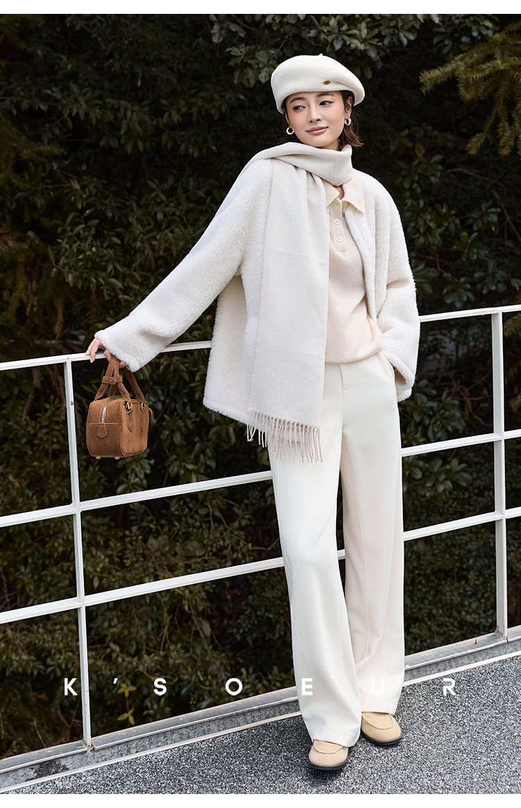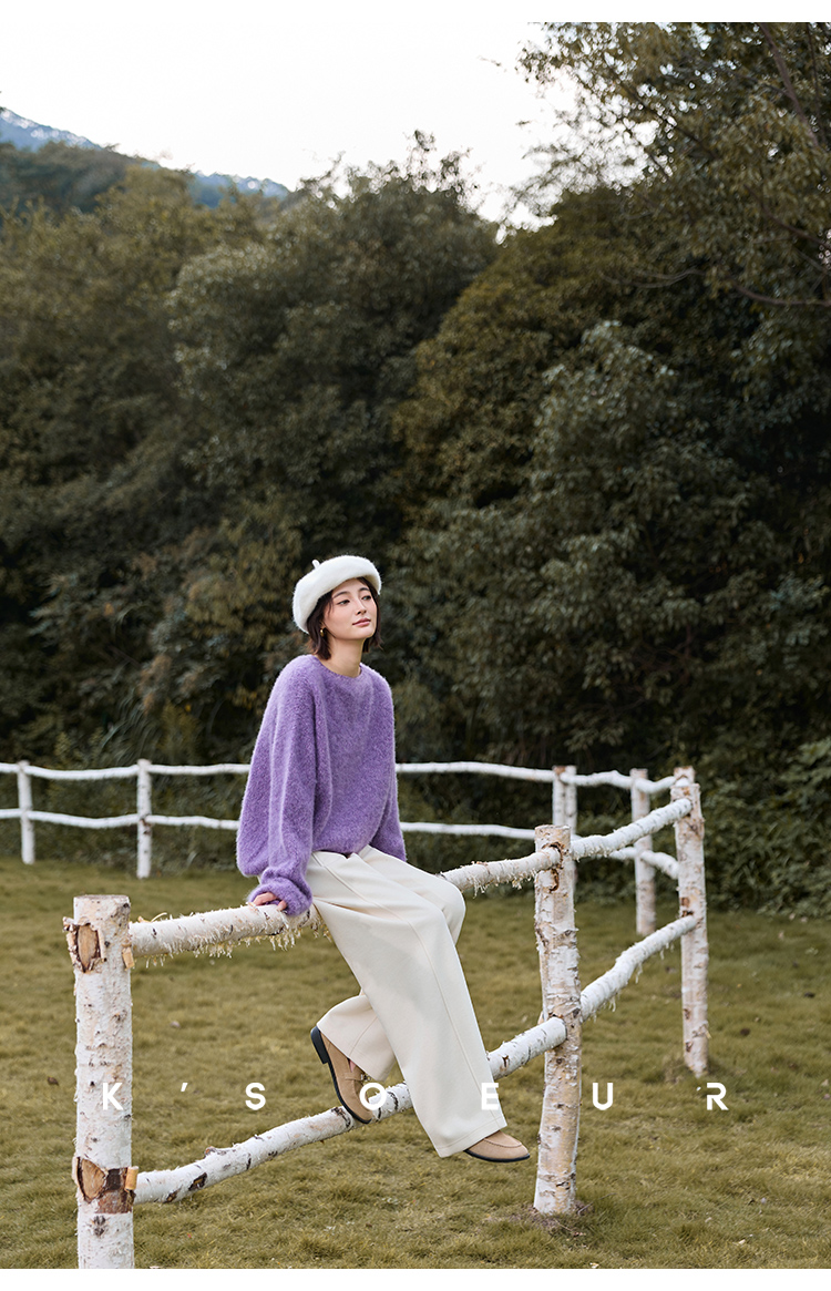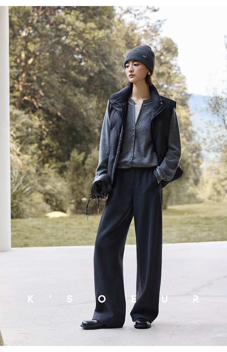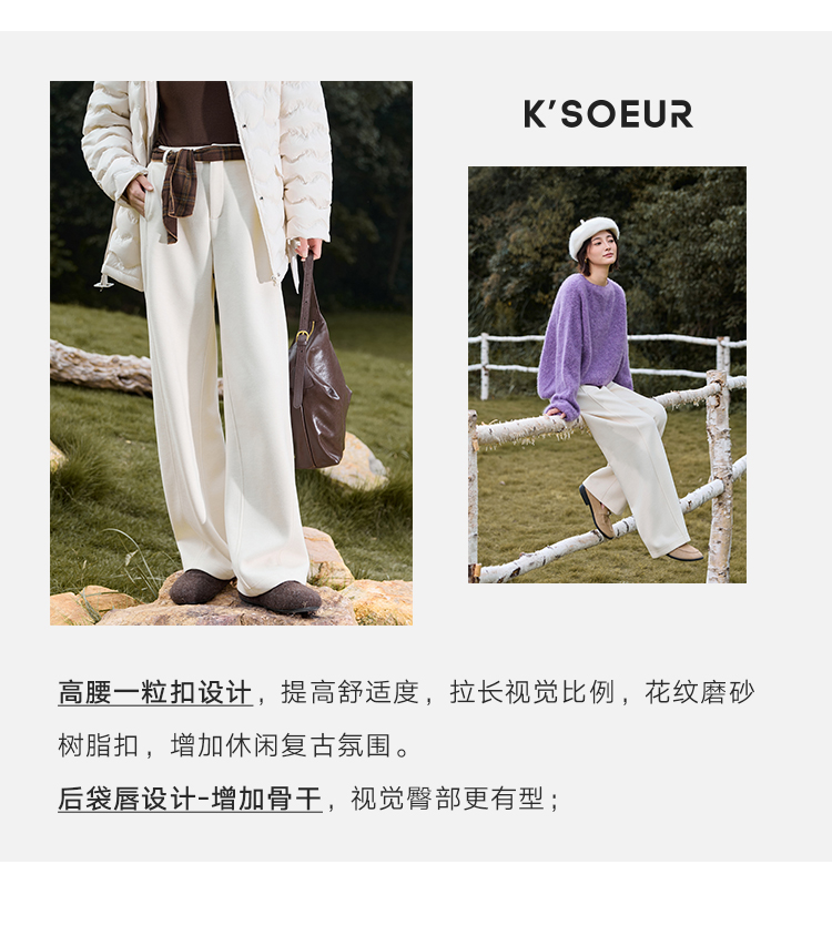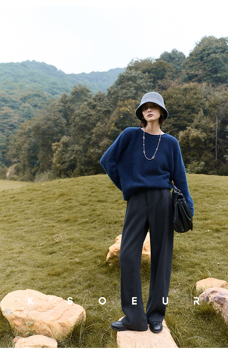 K elder sister KSOEUR [hand a yak pants] integrated yak velvet side seam front borrow Straight-leg knitted pants winter women