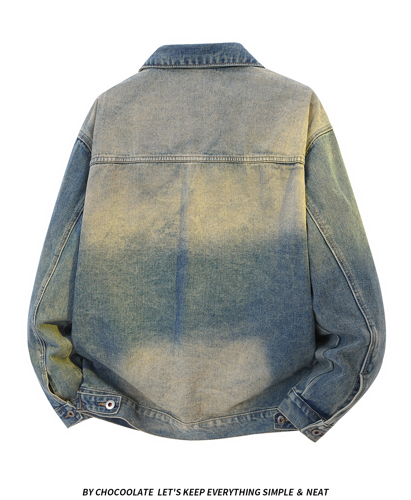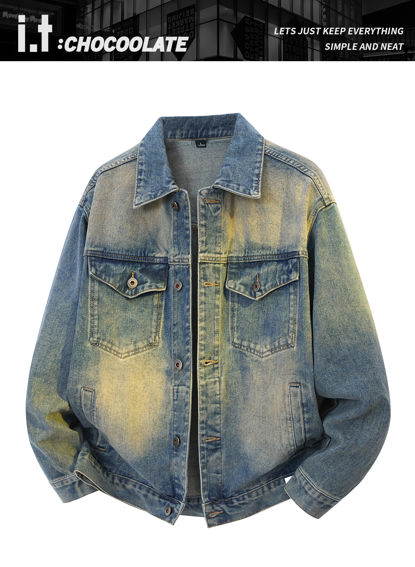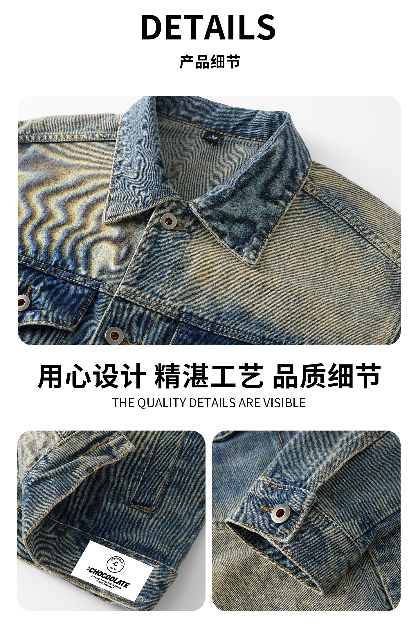 I.T: Chocoolate Retro High-End Denim Jacket for Men, Spring and Autumn, Multi-Pocket, Large Size, Versatile Workwear Jacket