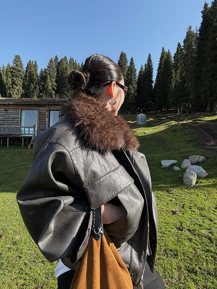 1Cp Gray Coffee-Colored Fur-Lined Jacket for Women, Warm, 2025 Winter New Style, Black Detachable Fur Collar Top