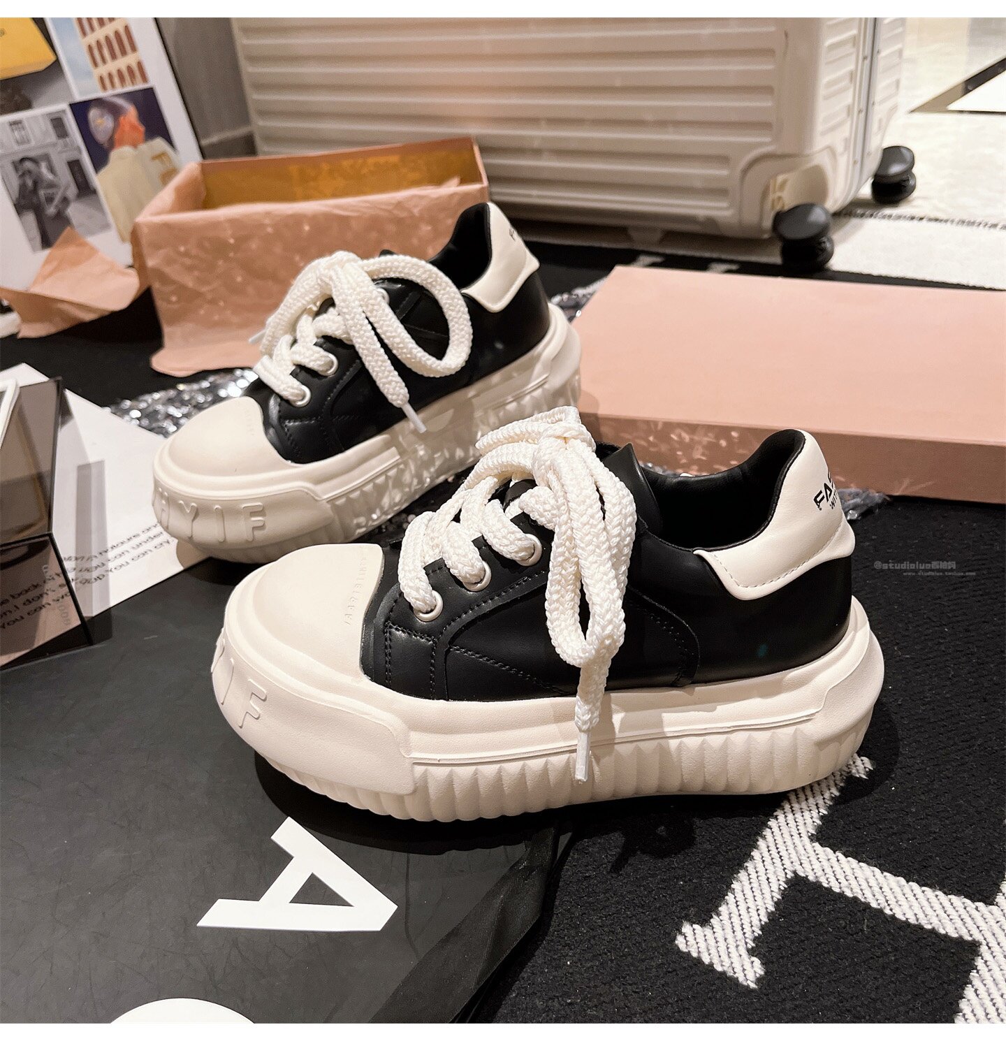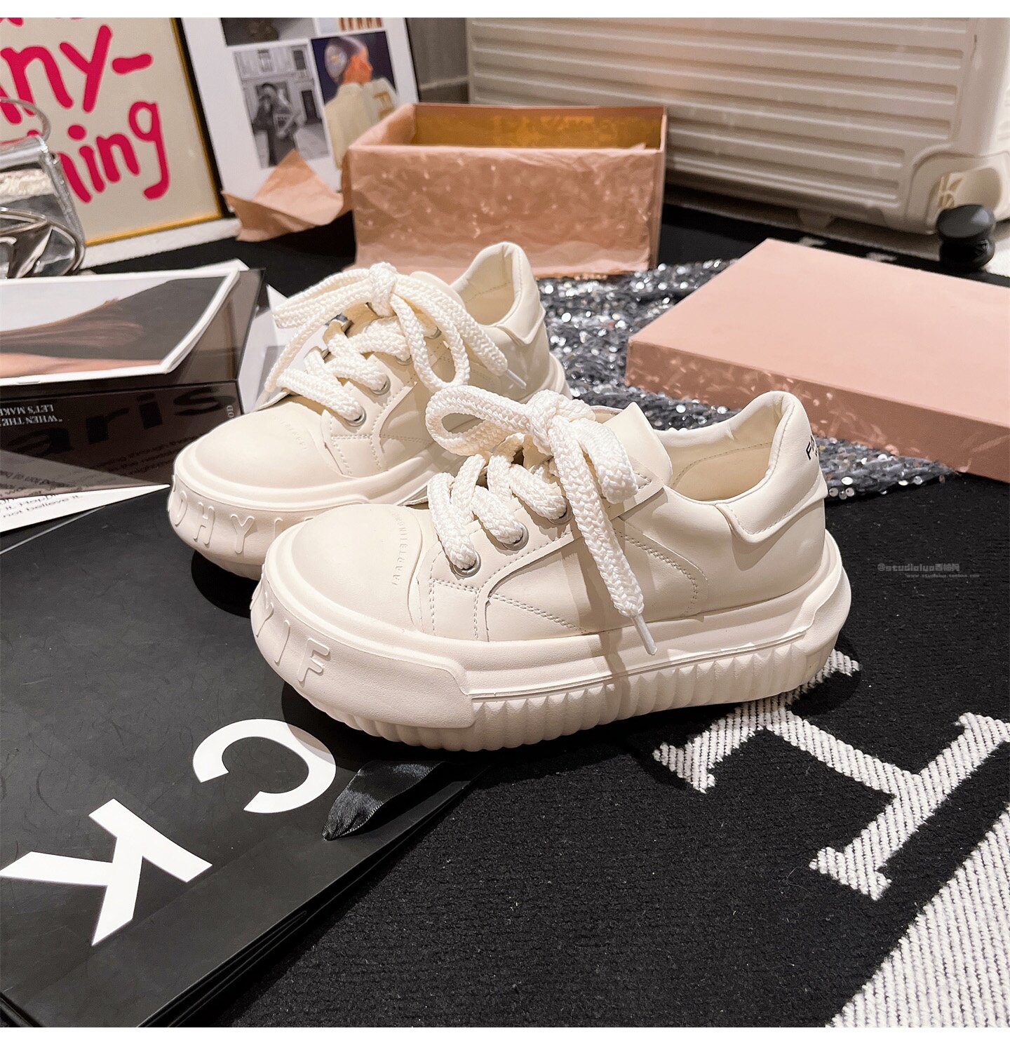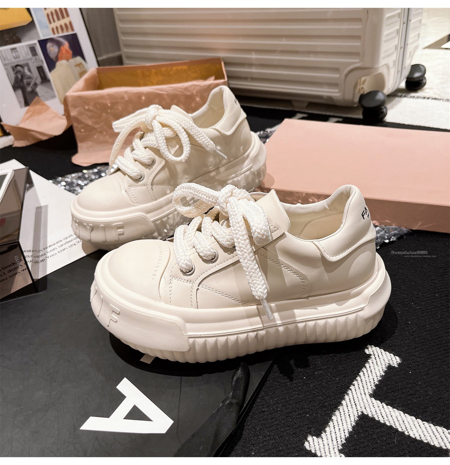 Hong Kong Genuine Leather Shell-Toe Casual Sneakers for Women 2026 Spring and Autumn New Versatile Platform Shoes Thick-Soled Platform White Shoes