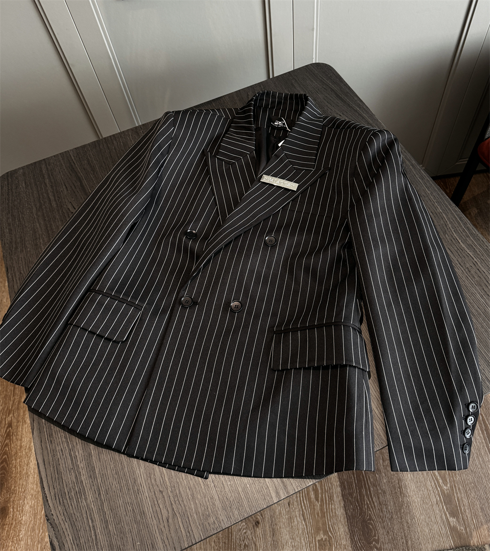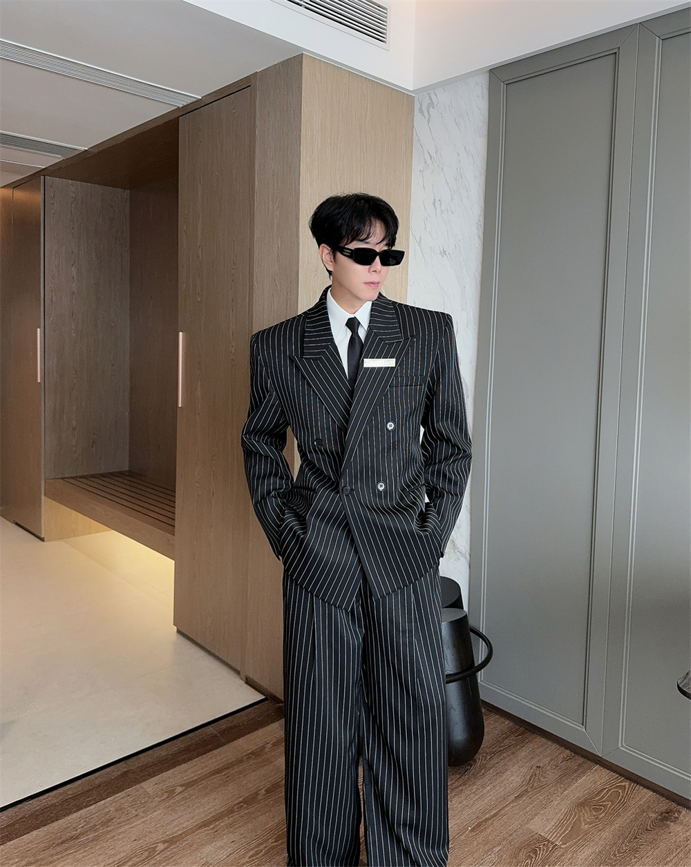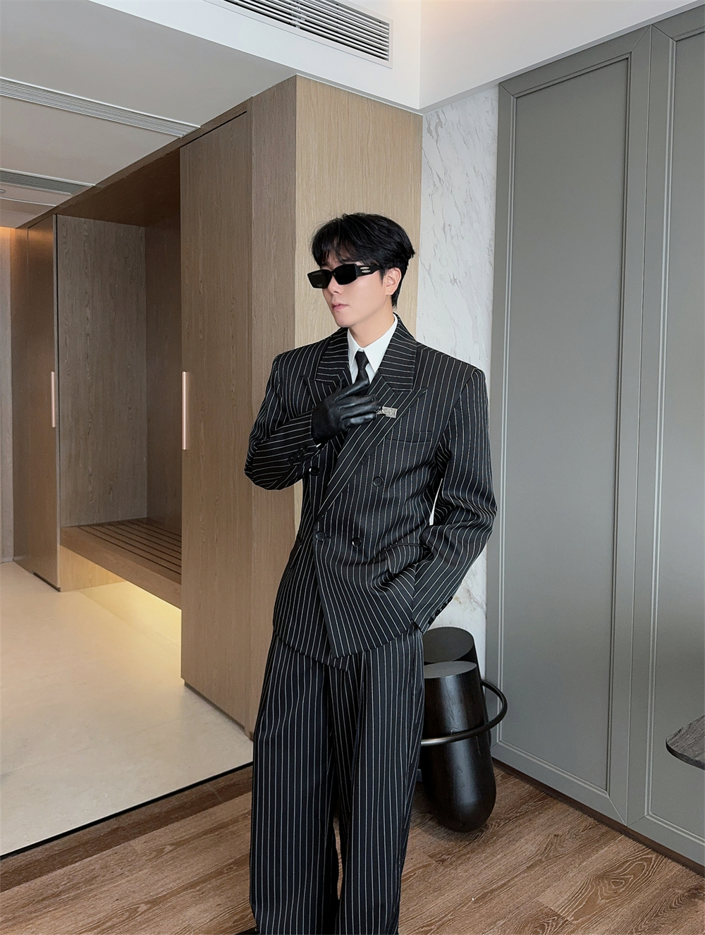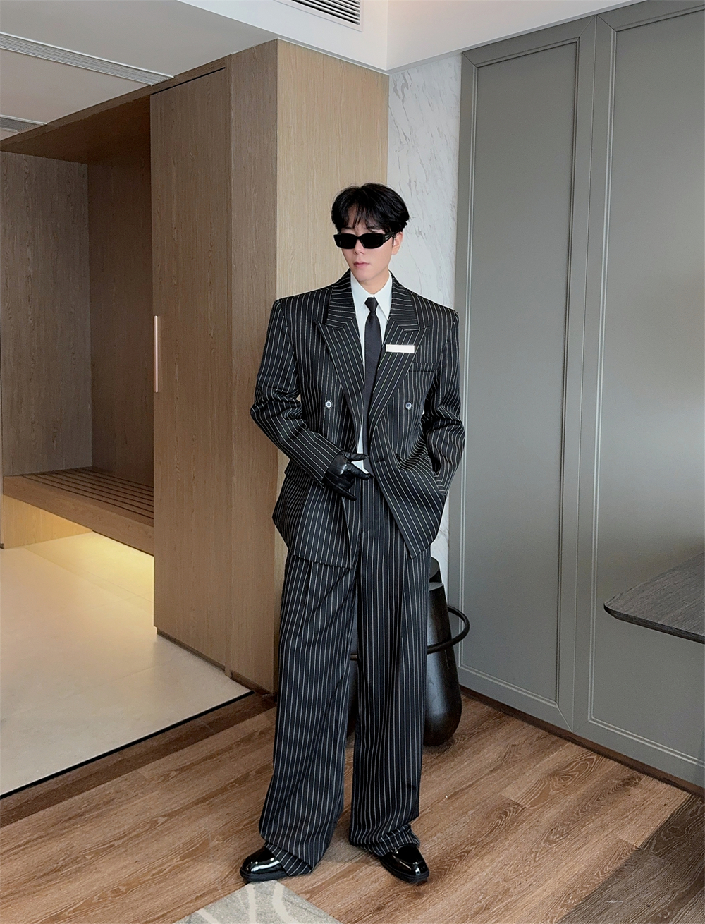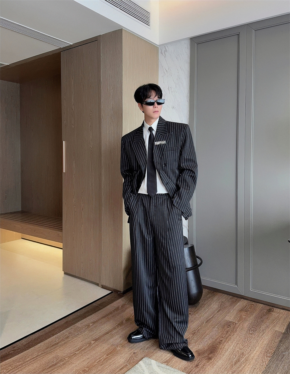 Rocca Black Striped Blazer Men's 2025 New High-End Loose-Fitting Waist-Cinching Suit Set