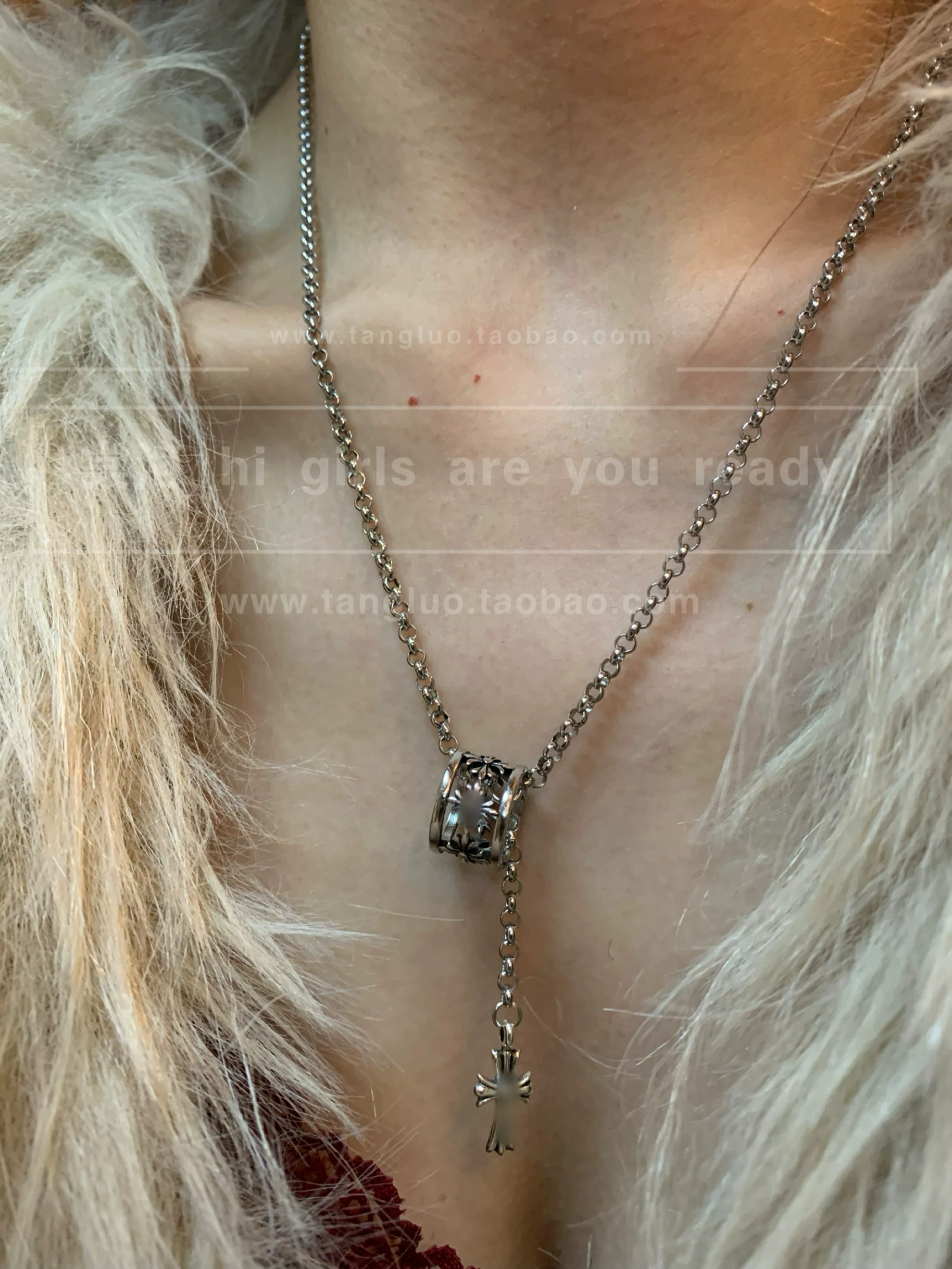 Vintage Style Large and Small Circle Cross Layered Necklace for Women, Minimalist Metal Sweater Chain, Hip-Hop Personality Necklace