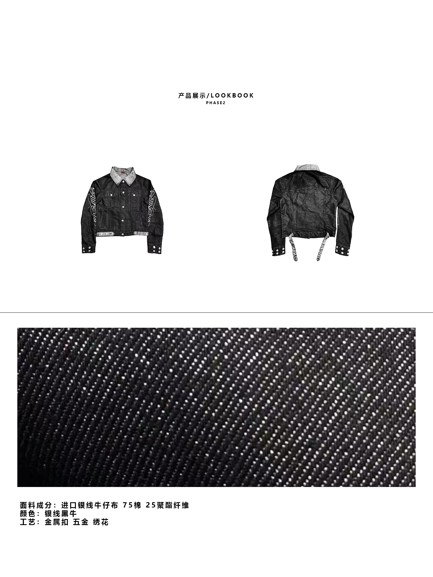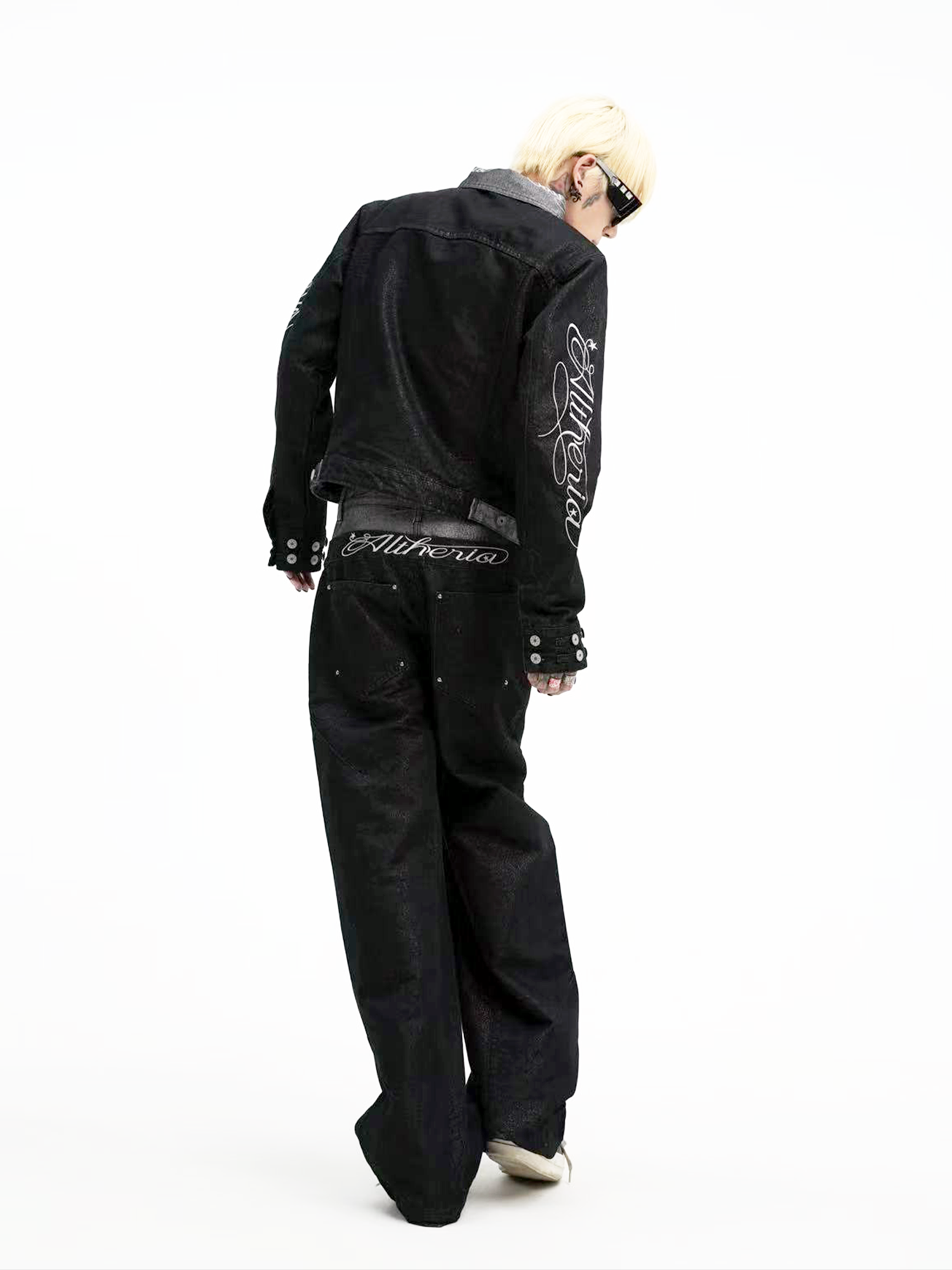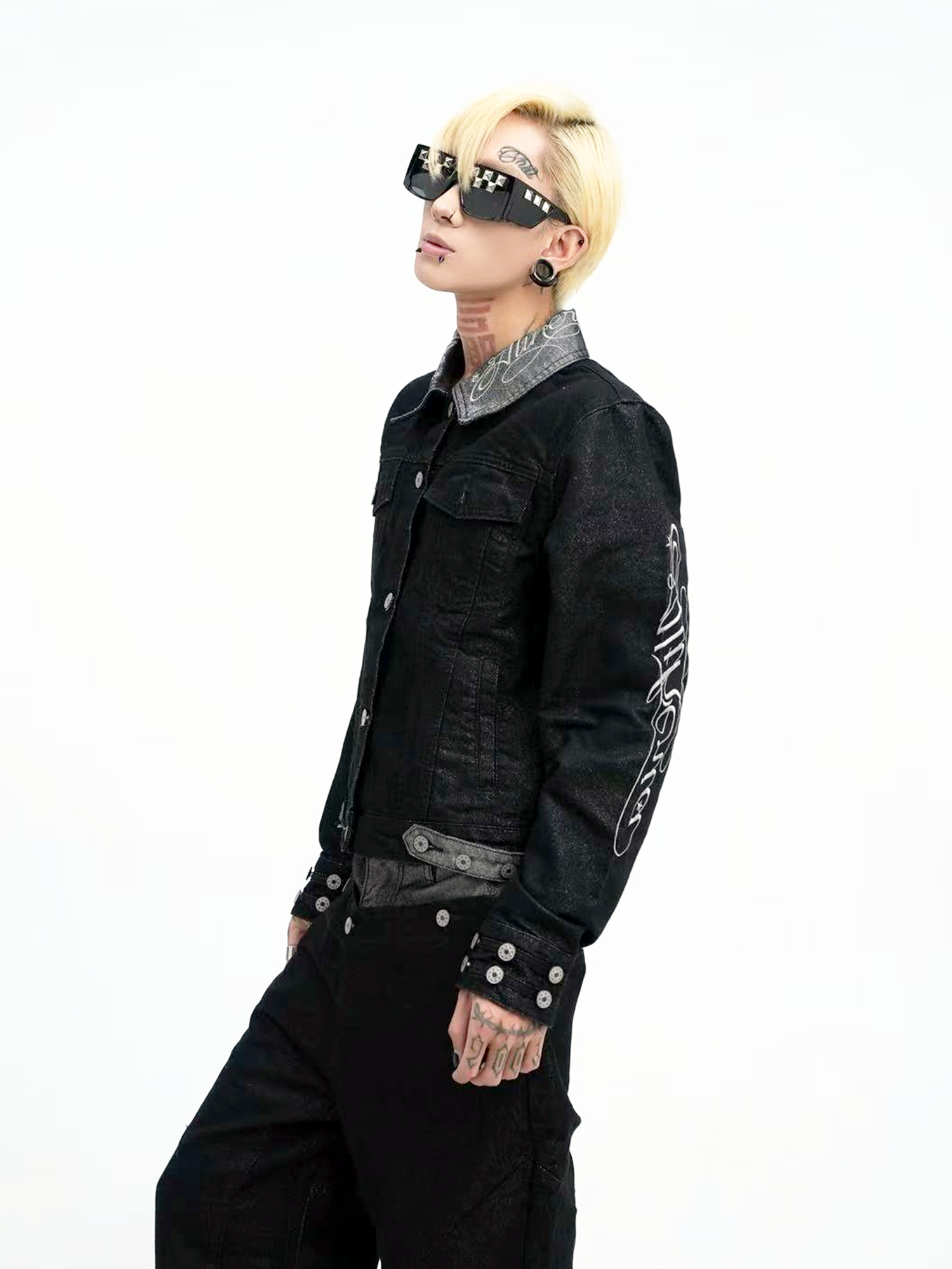 Detw 25Aw* Brushed Silver Embroidered Denim Original Cowhide Jacket, Regular Shoulder, Slim Fit, High-End Design, Unisex Jacket