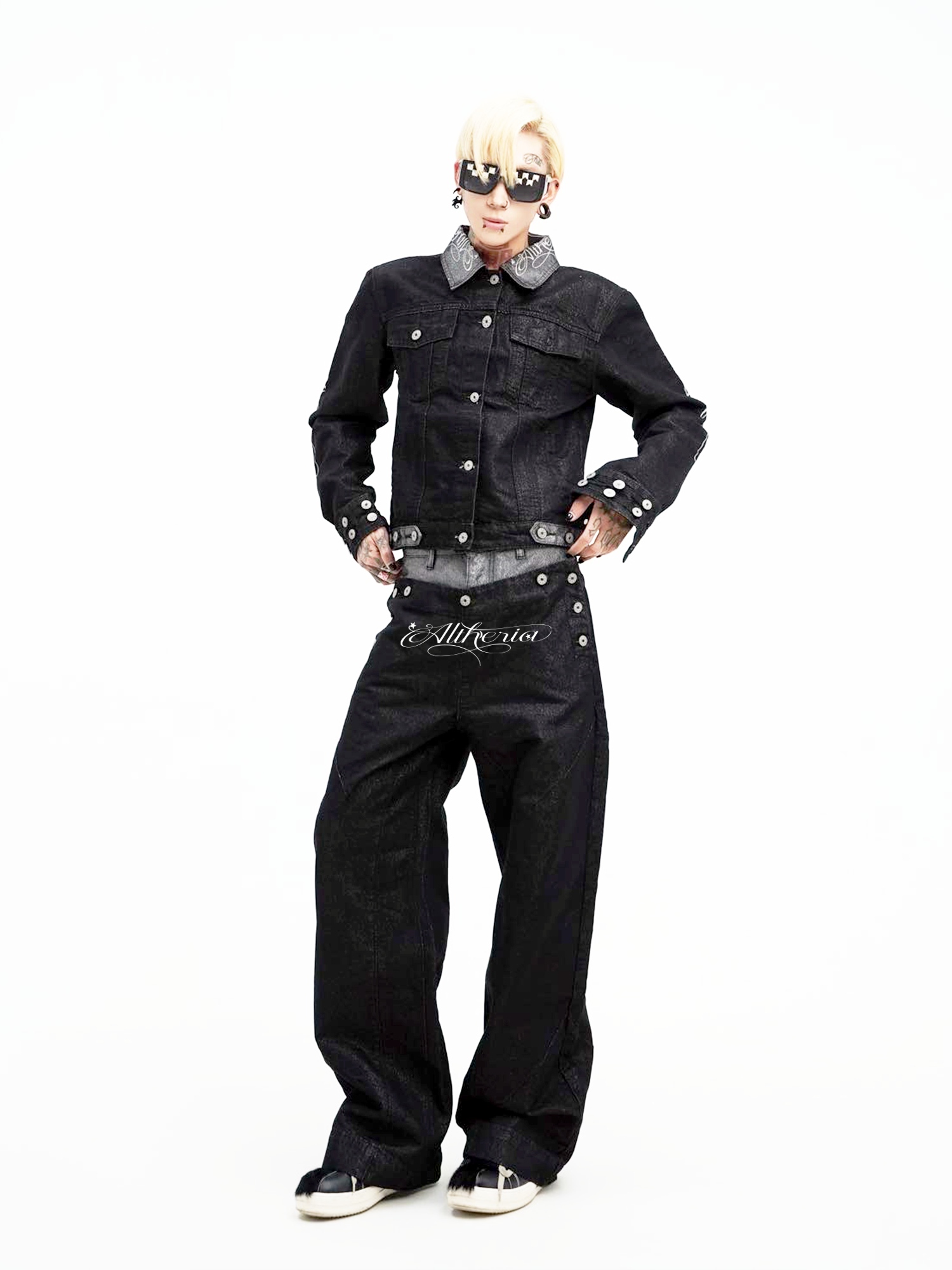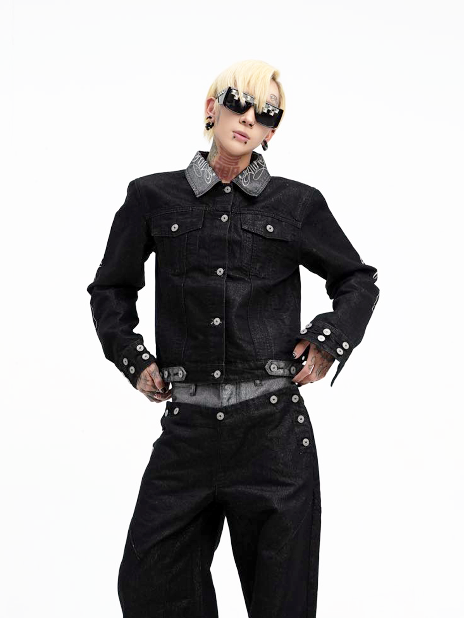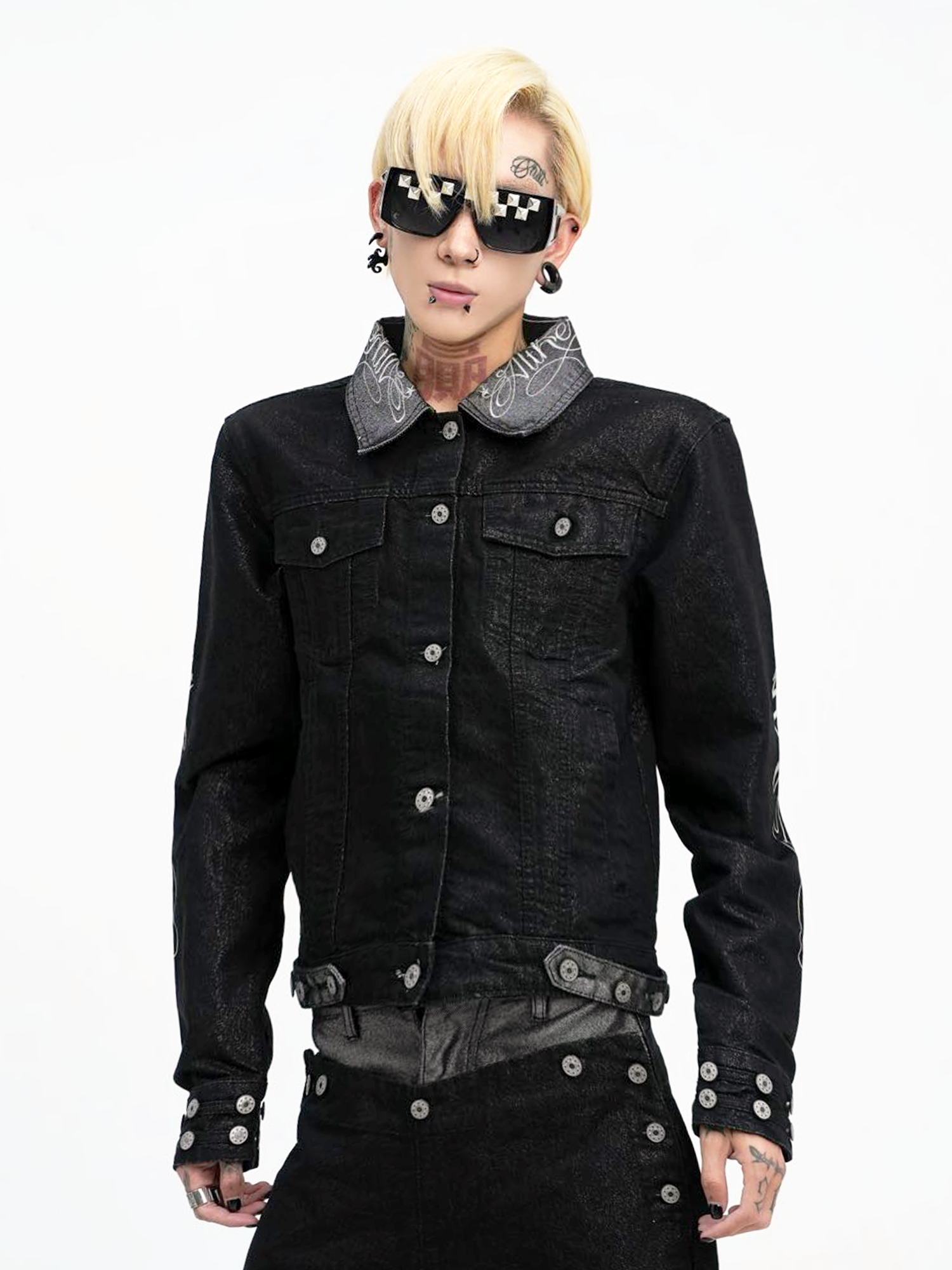Detw 25Aw* Brushed Silver Embroidered Denim Original Cowhide Jacket, Regular Shoulder, Slim Fit, High-End Design, Unisex Jacket