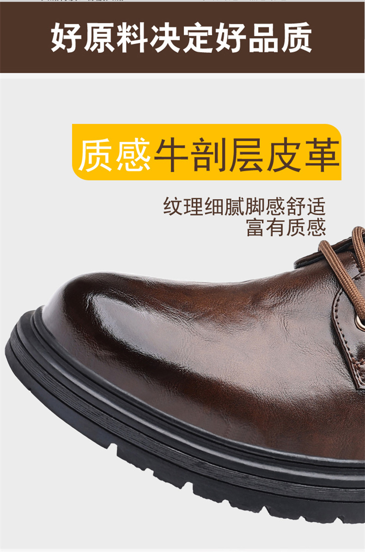 Woodpecker Genuine Men's Shoes Formal Business Casual Leather Shoes Non-Slip Thick-Soled Derby Shoes Youth Lace-Up Work Shoes
