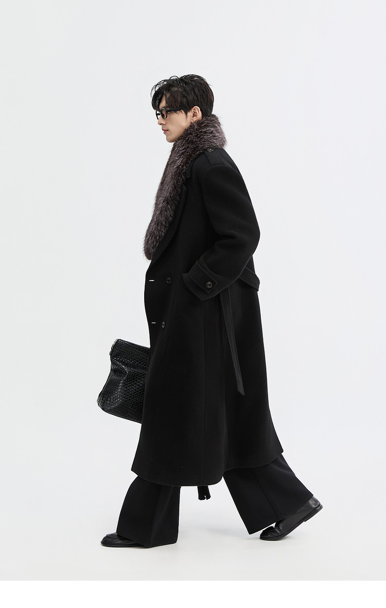 {All-Wool Shoulder Pad Style} Bjze25 Early Winter Over-The-Knee Long Single-Sided Woolen Coat Men's Large Lapel Woolen Jacket