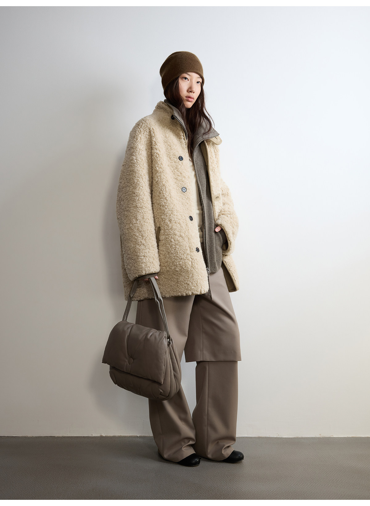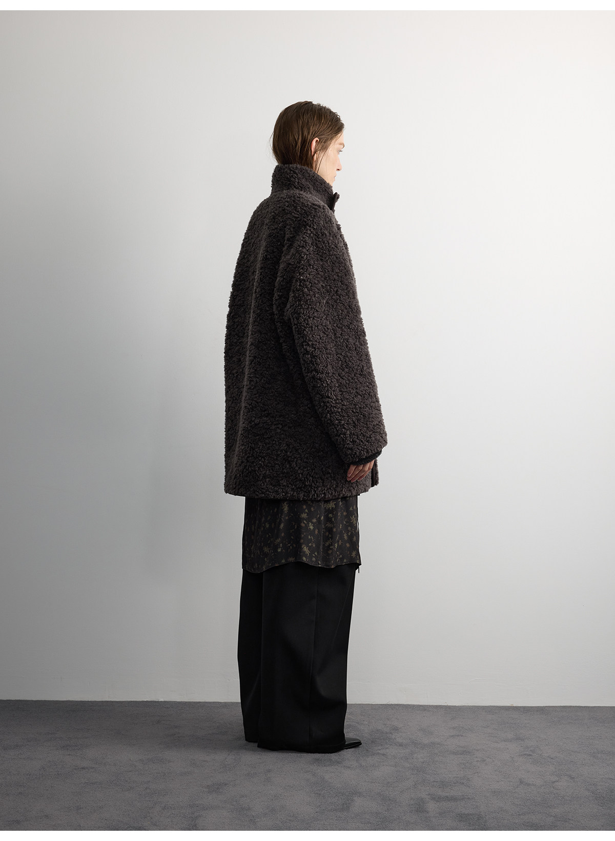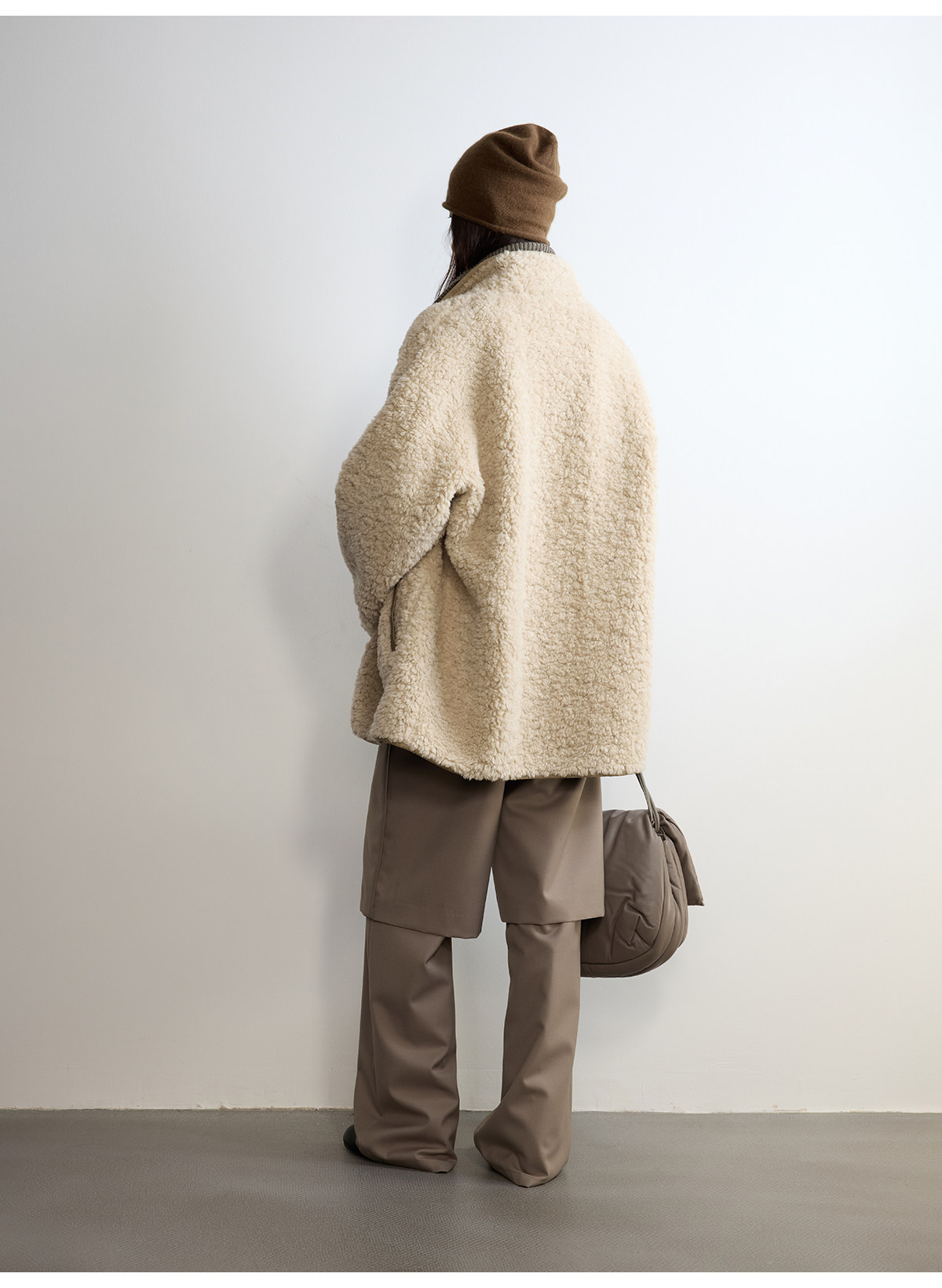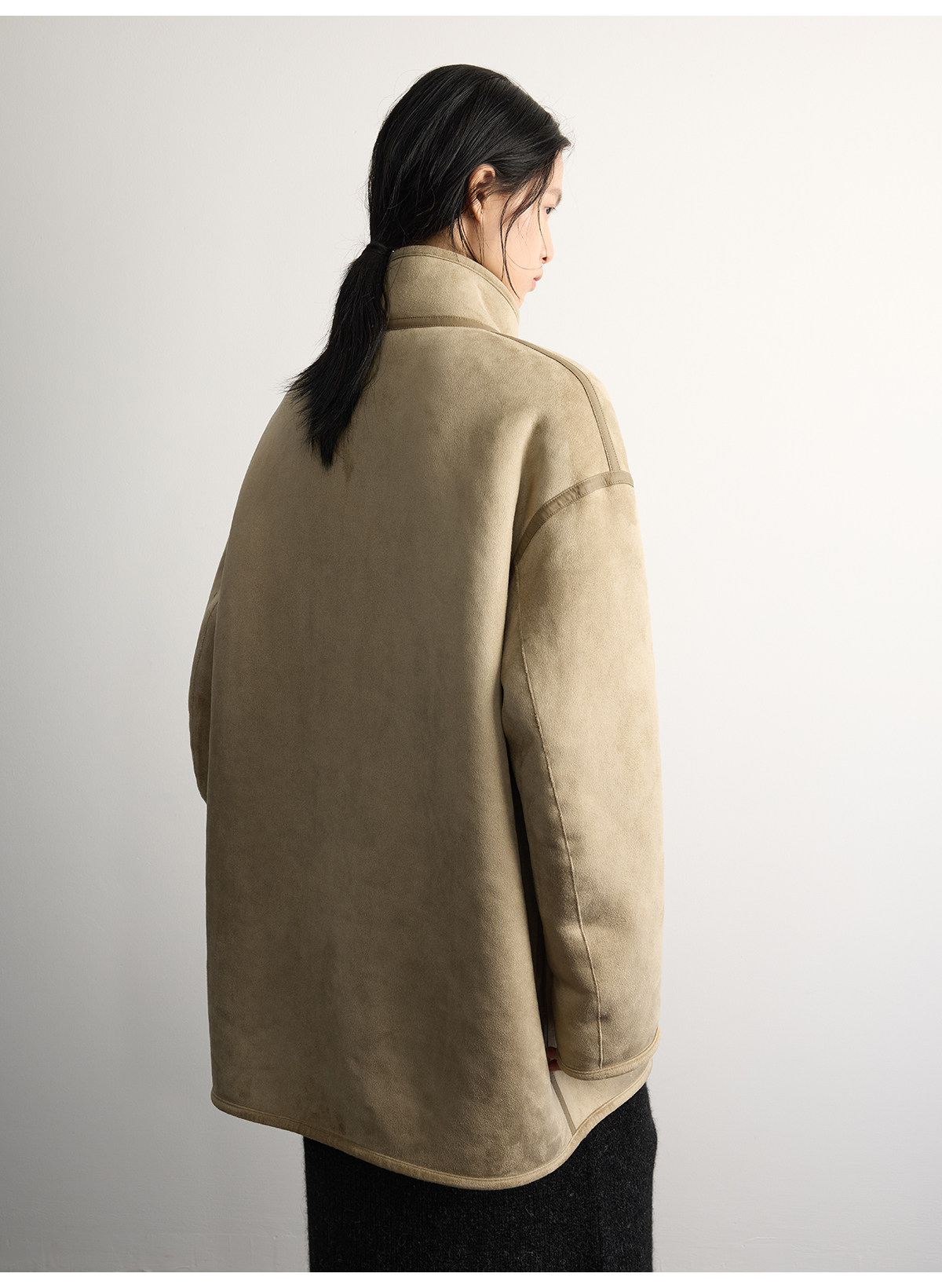 Randompiece25 Winter New Teddy Velvet Feel Reversible Loose Drop Shoulder Sleeve Stand Collar Faux Fur Jacket