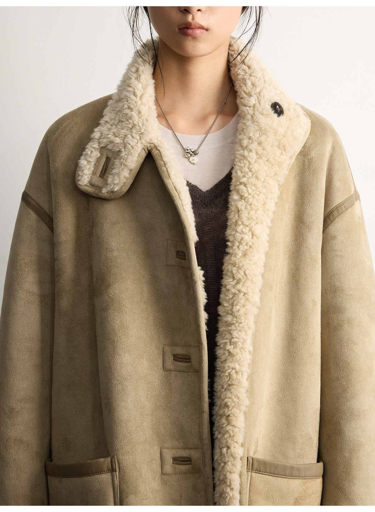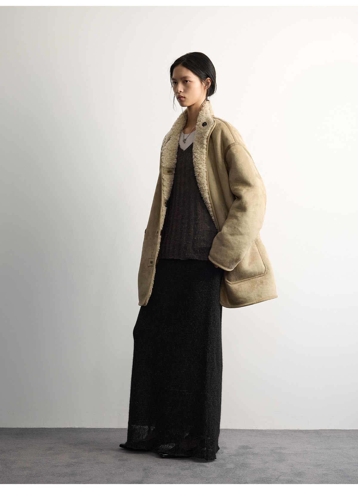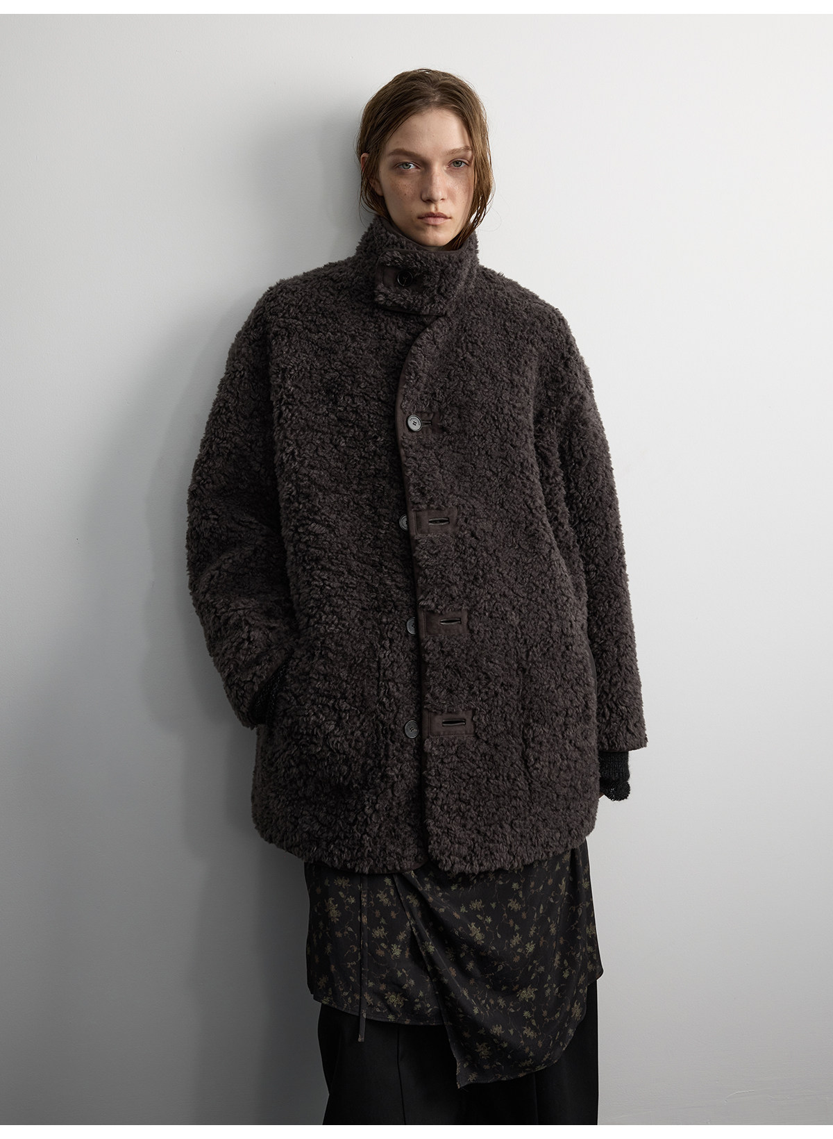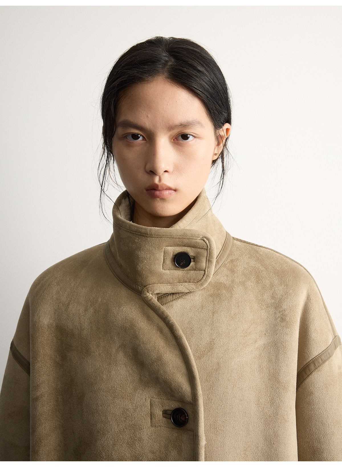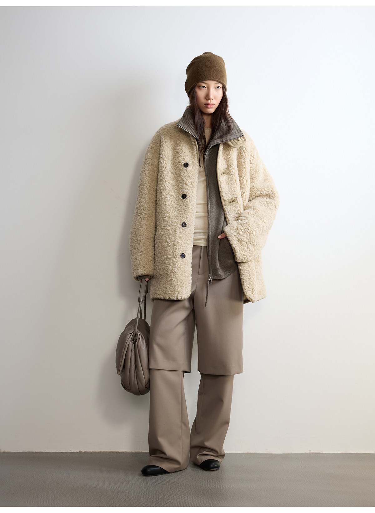 Randompiece25 Winter New Teddy Velvet Feel Reversible Loose Drop Shoulder Sleeve Stand Collar Faux Fur Jacket