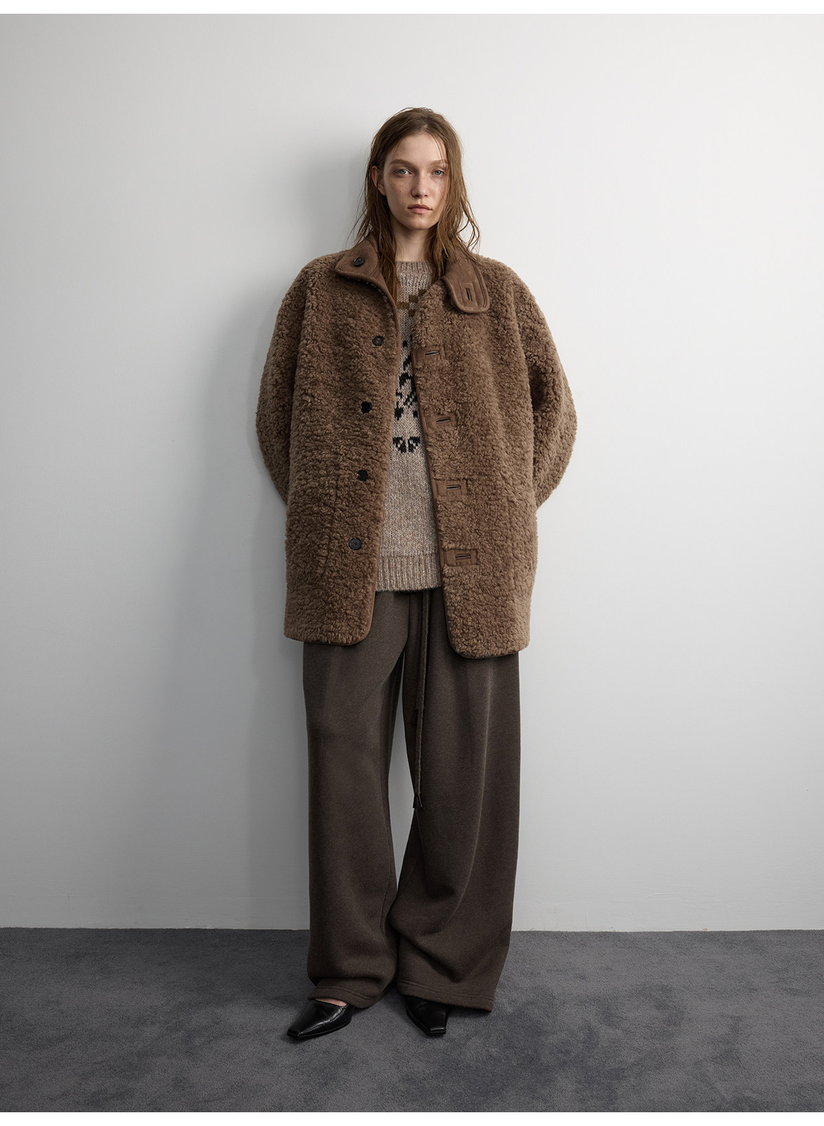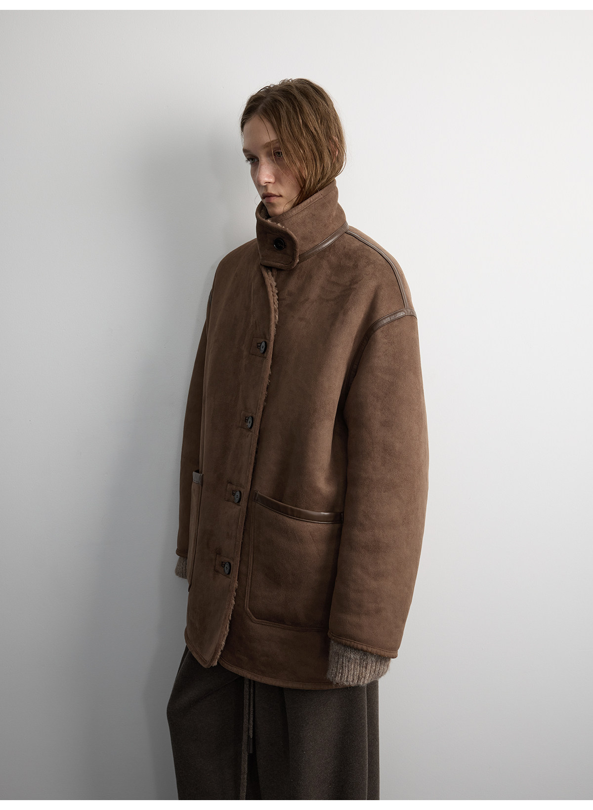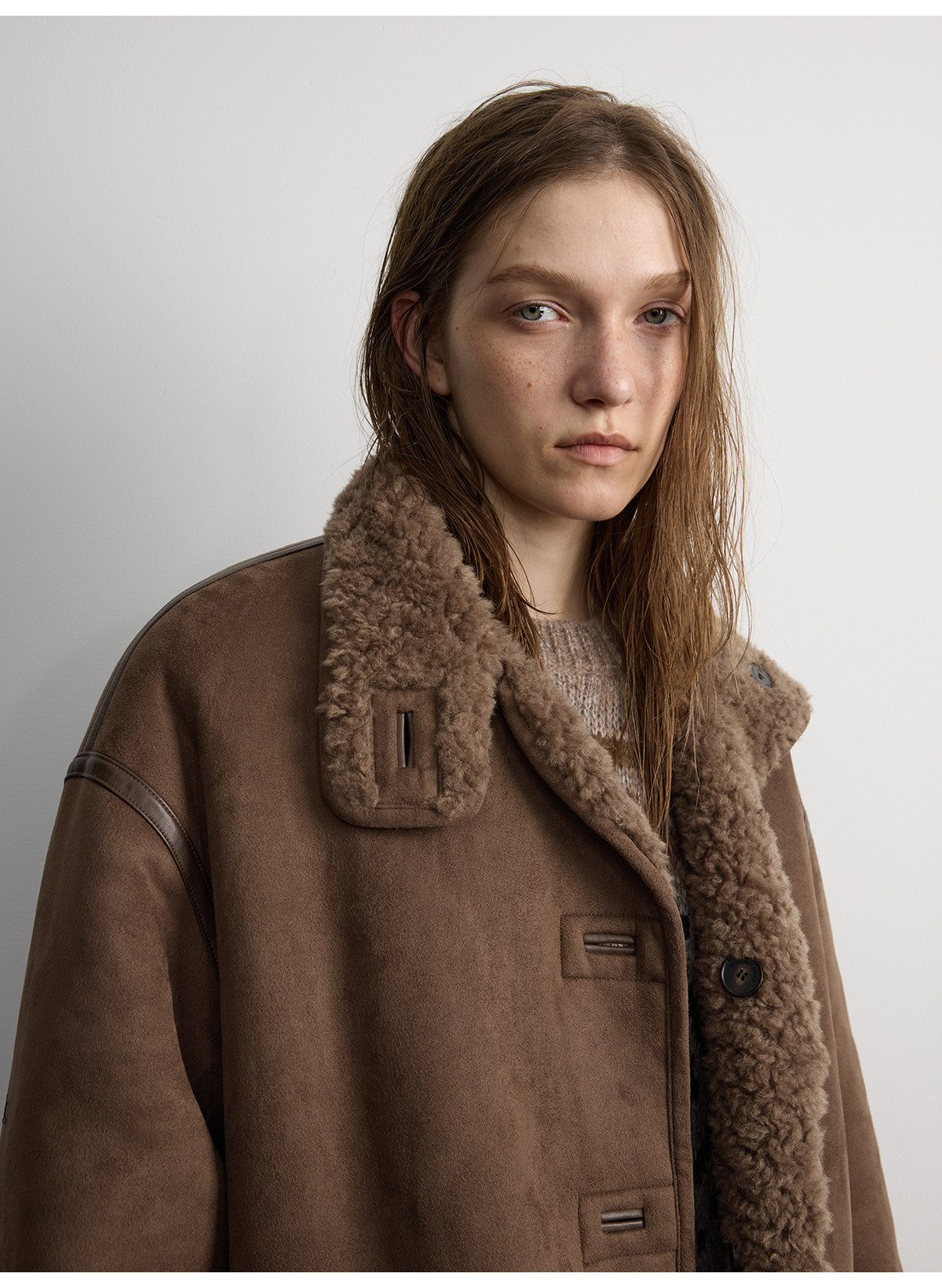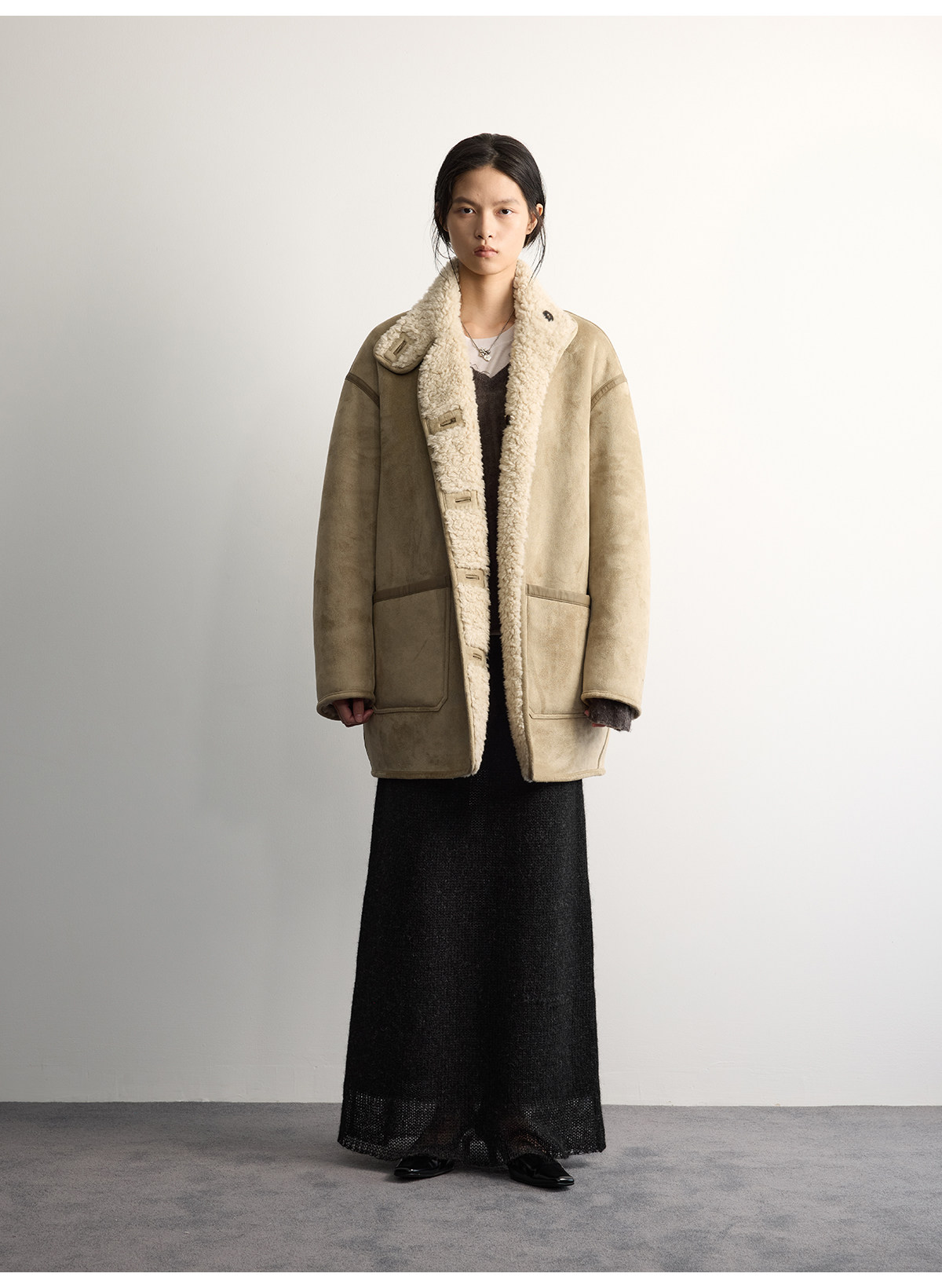 Randompiece25 Winter New Teddy Velvet Feel Reversible Loose Drop Shoulder Sleeve Stand Collar Faux Fur Jacket