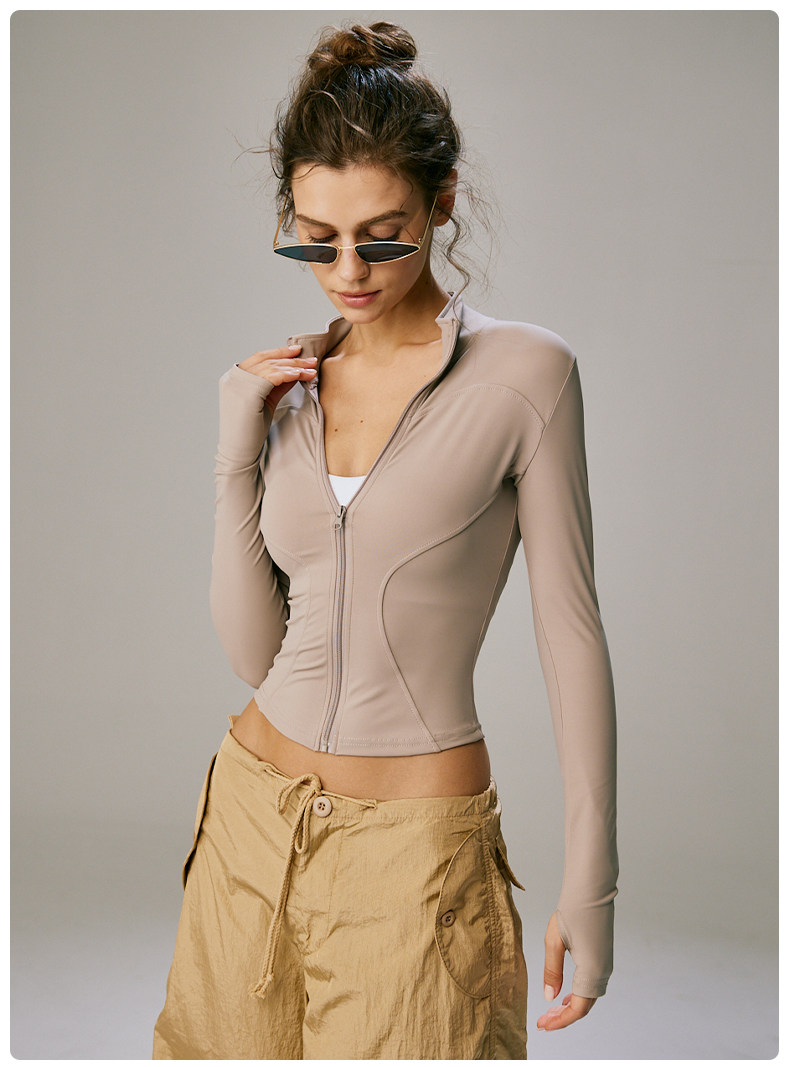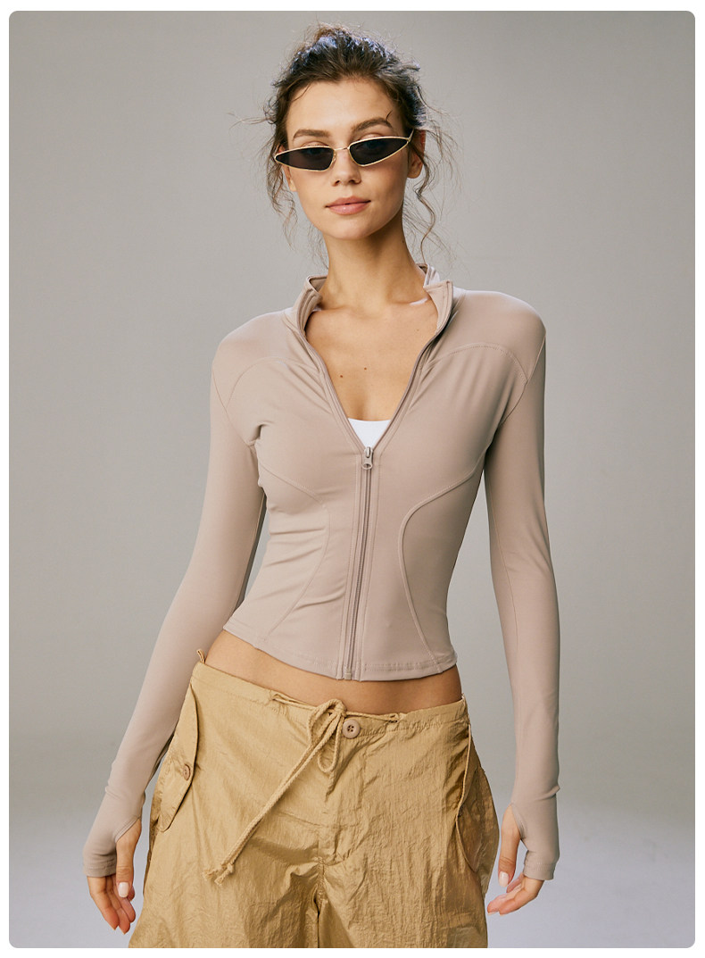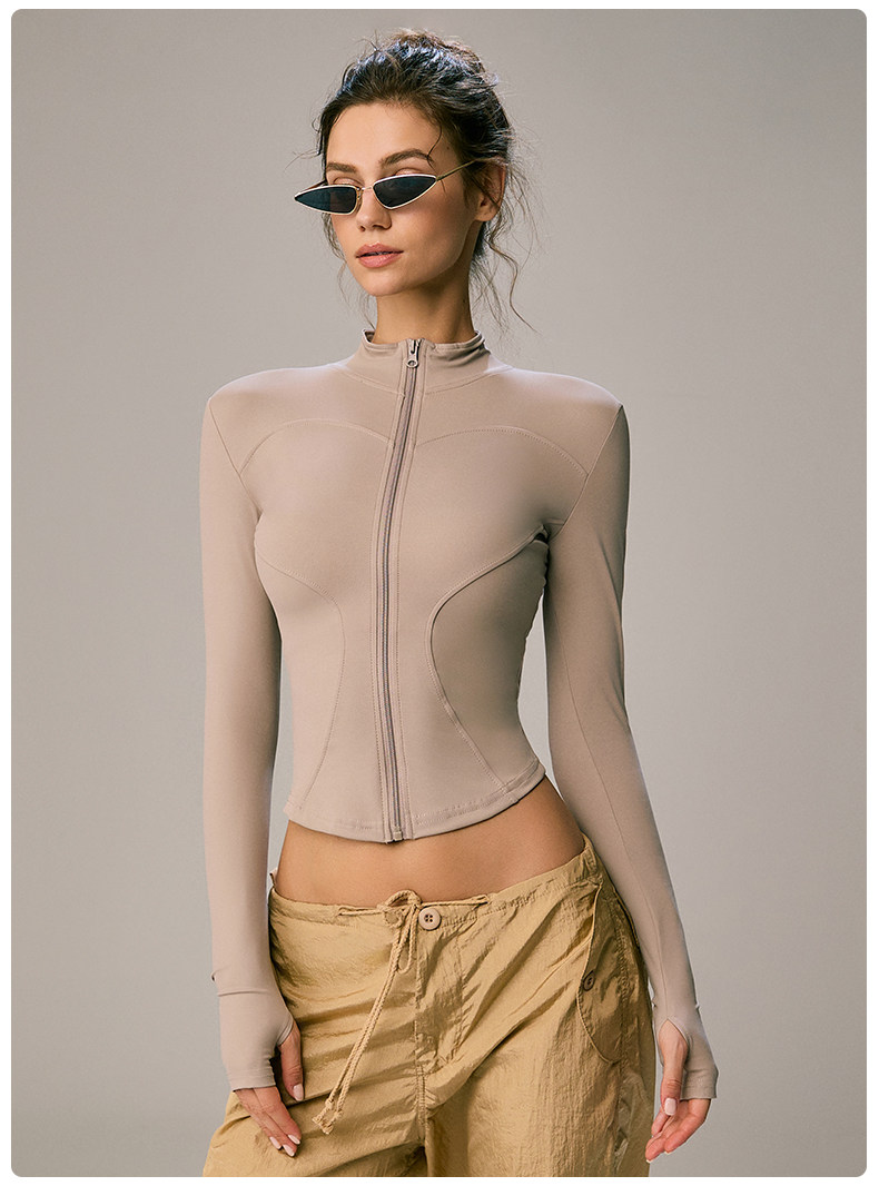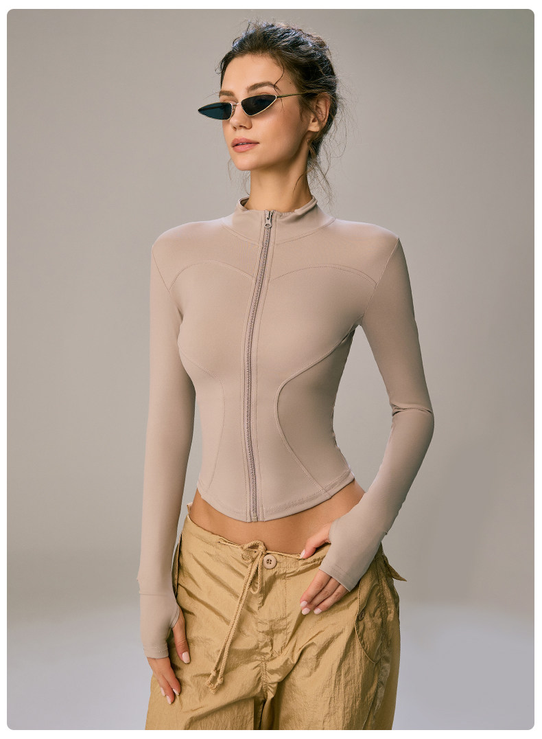 Mitaogirl Kendall Yoga Jacket Women's Running Stand-Up Collar Cardigan Sports Top Spring and Autum Short Fitness Wear
