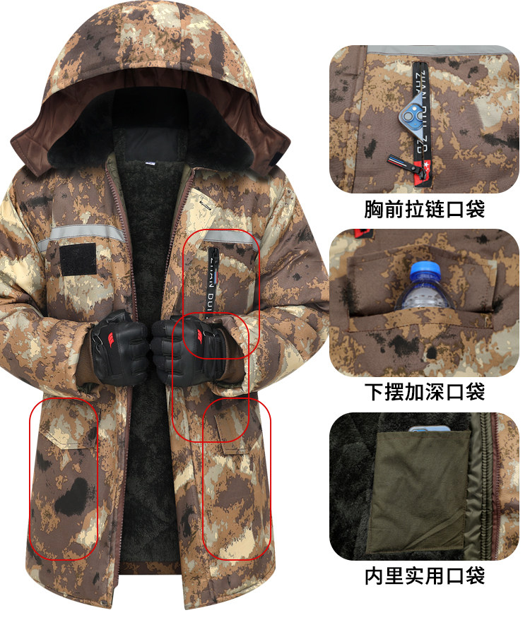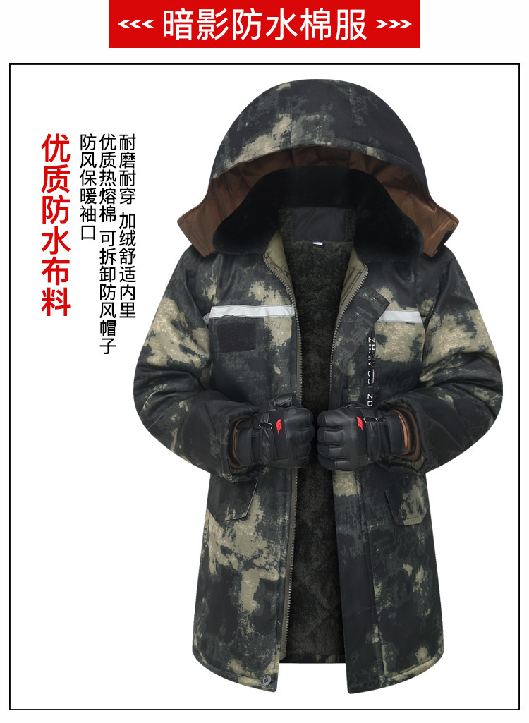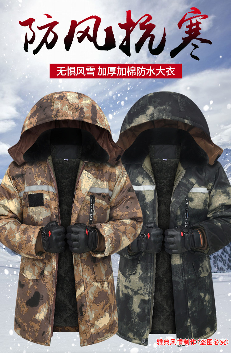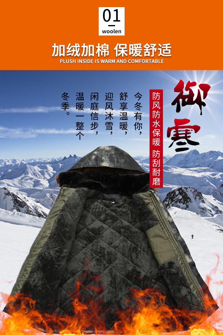 Men's Military-Style Winter Coat, Thickened with Fleece, Cotton-Padded Jacket, Cold-Resistant Workwear, Camouflage Outdoor Wear-Resistant Clothing