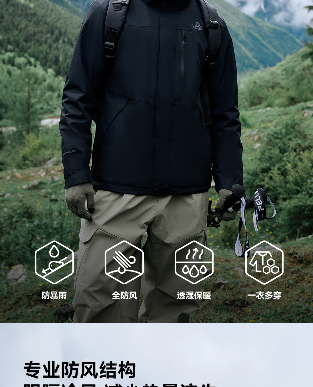 [Same Style as Cheng Yi] Pelliot Classic 2.0 Outdoor Jacket for Men, Three-In-One Windproof and Waterproof Jacket for Women