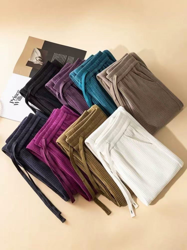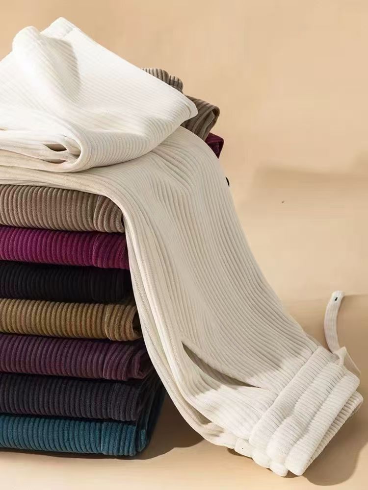 2025 New Corduroy Versatile Straight-Leg Pants, Spring and Autumn High-Waisted Pants, Slimming, Loose, Drapey, Narrow Wide-Leg Pants for Women