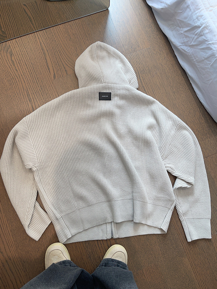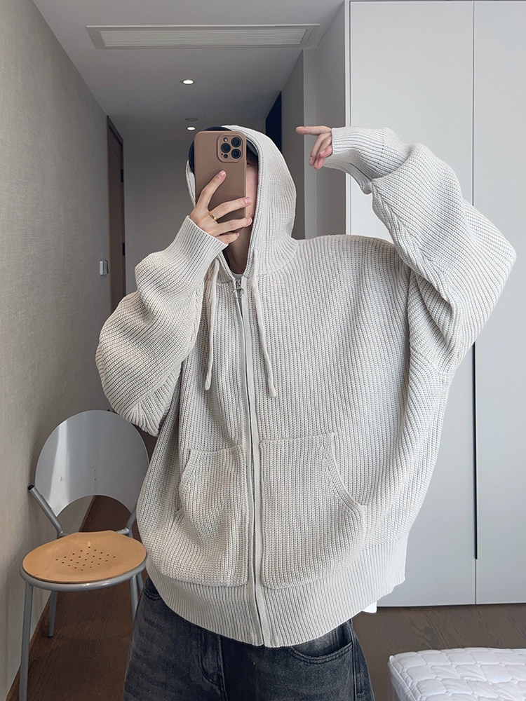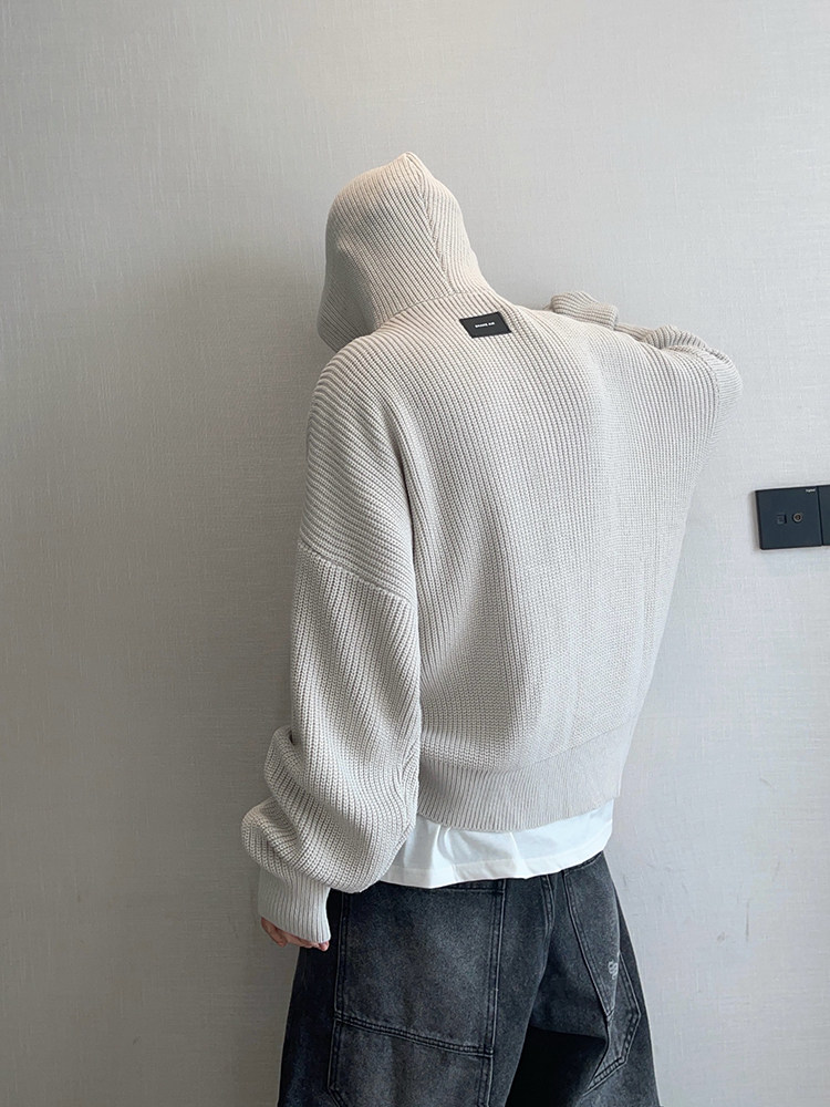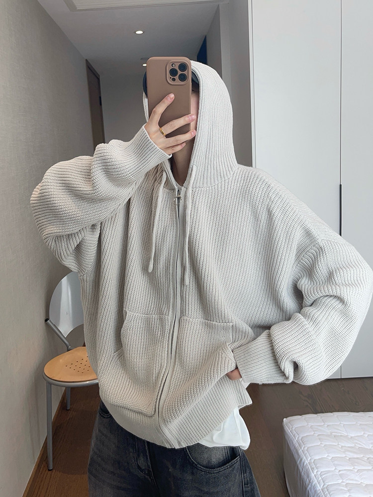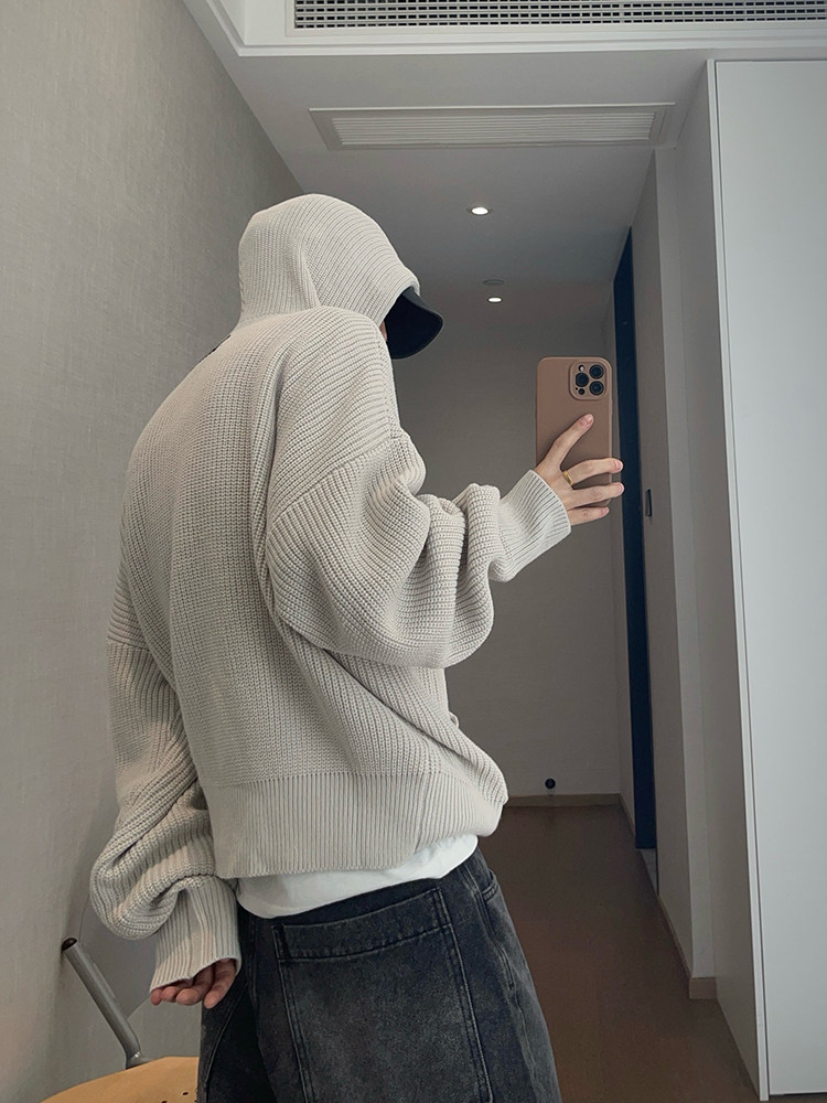 复古连帽拉链毛衣外套