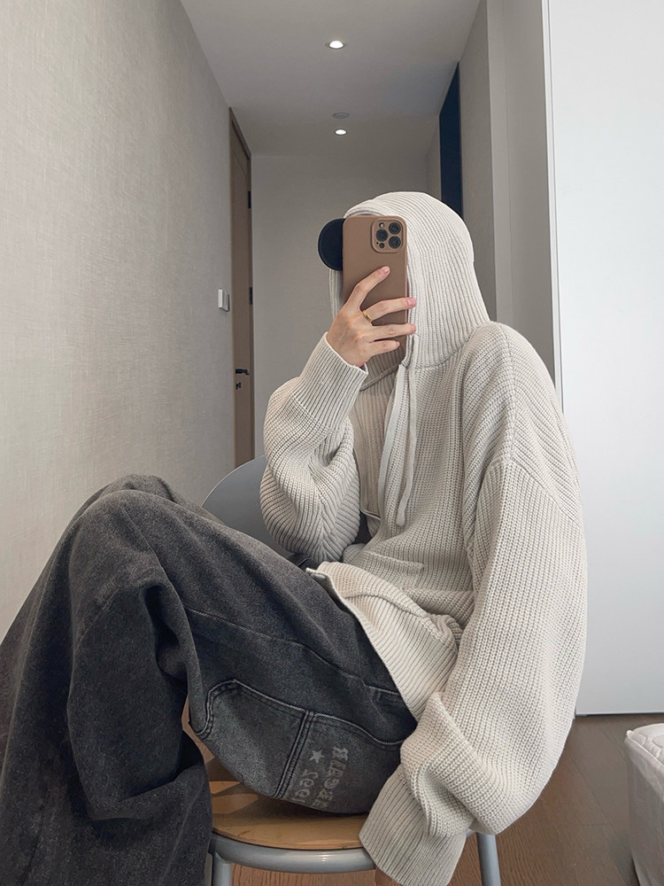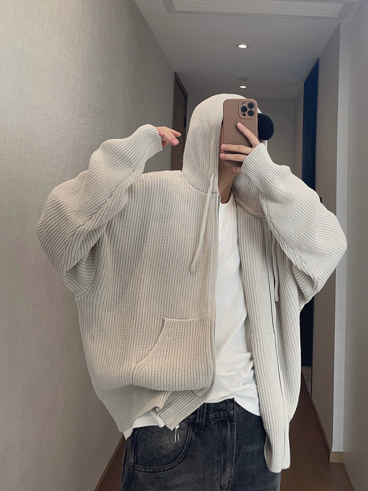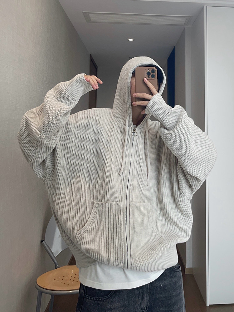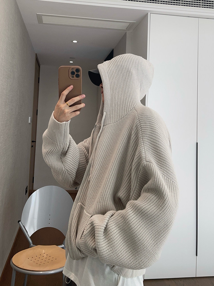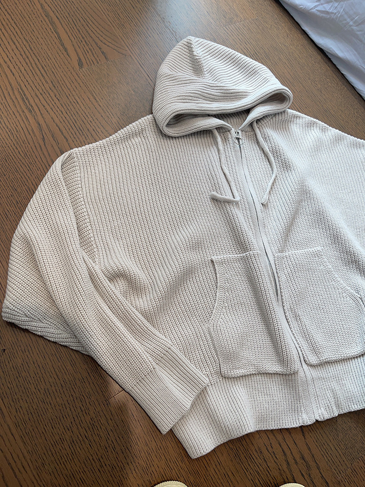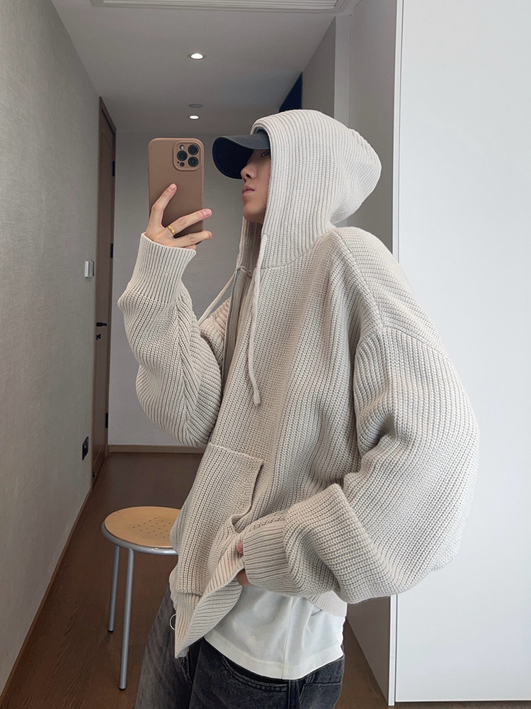 复古连帽拉链毛衣外套